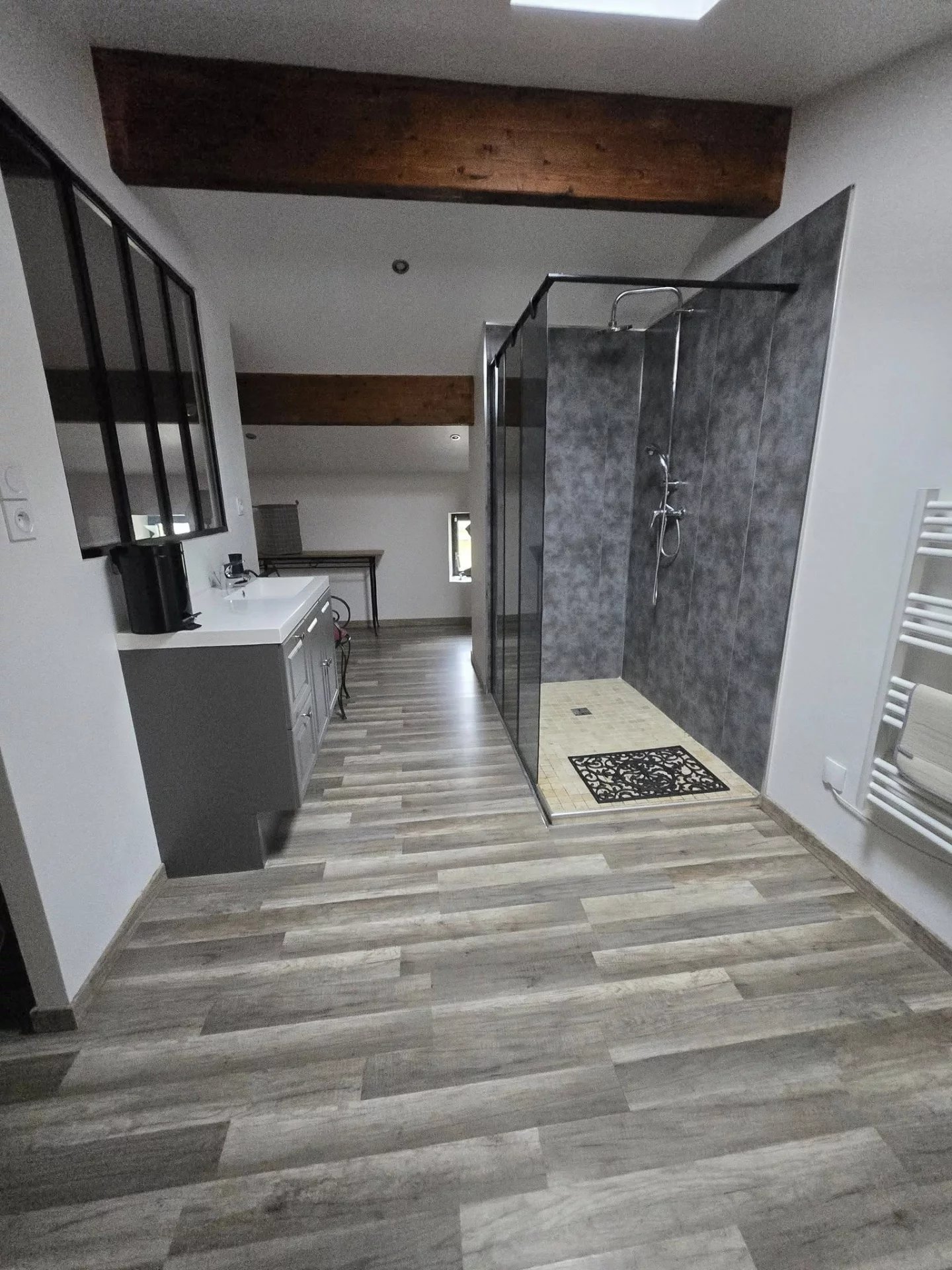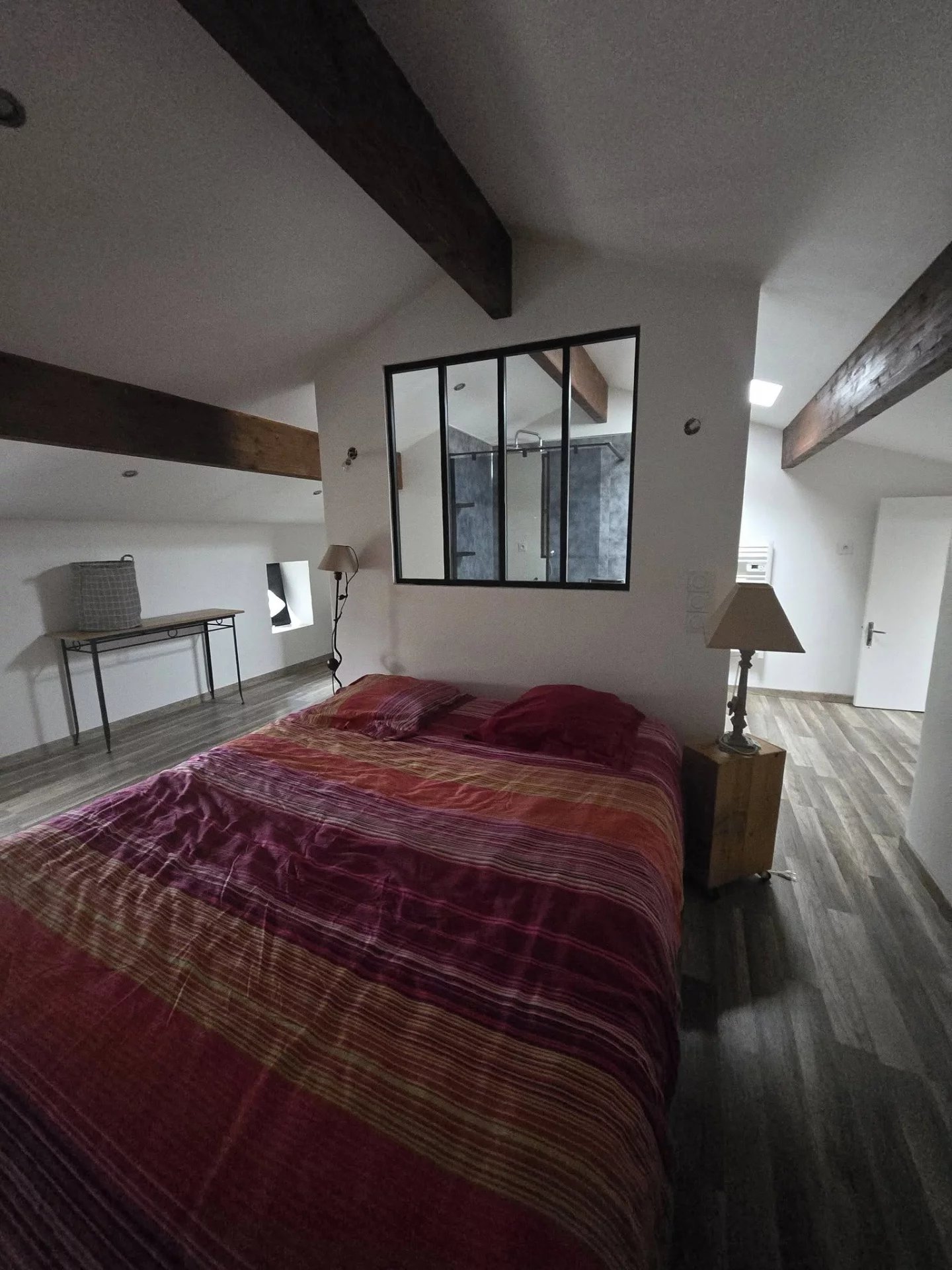 A louer à St Ciers sur Gironde maison comprenant en rez-de-chaussée magnifique pièce de vie avec poêle a granulés, cuisine aménagée et équipée avec son cellier attenant, 1 chambre avec son dressing, salle d'eau et son w-c privatif. A l étage 1 très grande chambre avec son dressing, salle d eau et son w-c. Devant la maison se trouve une magnifique et grande terrasse privative. DPE : D GES : A L eau est comprise dans le prix du loyer. Loyer mensuel : 750€ Charge 20€ Caution : 750€ Frais d'agence : 500€. Garanties demandées.