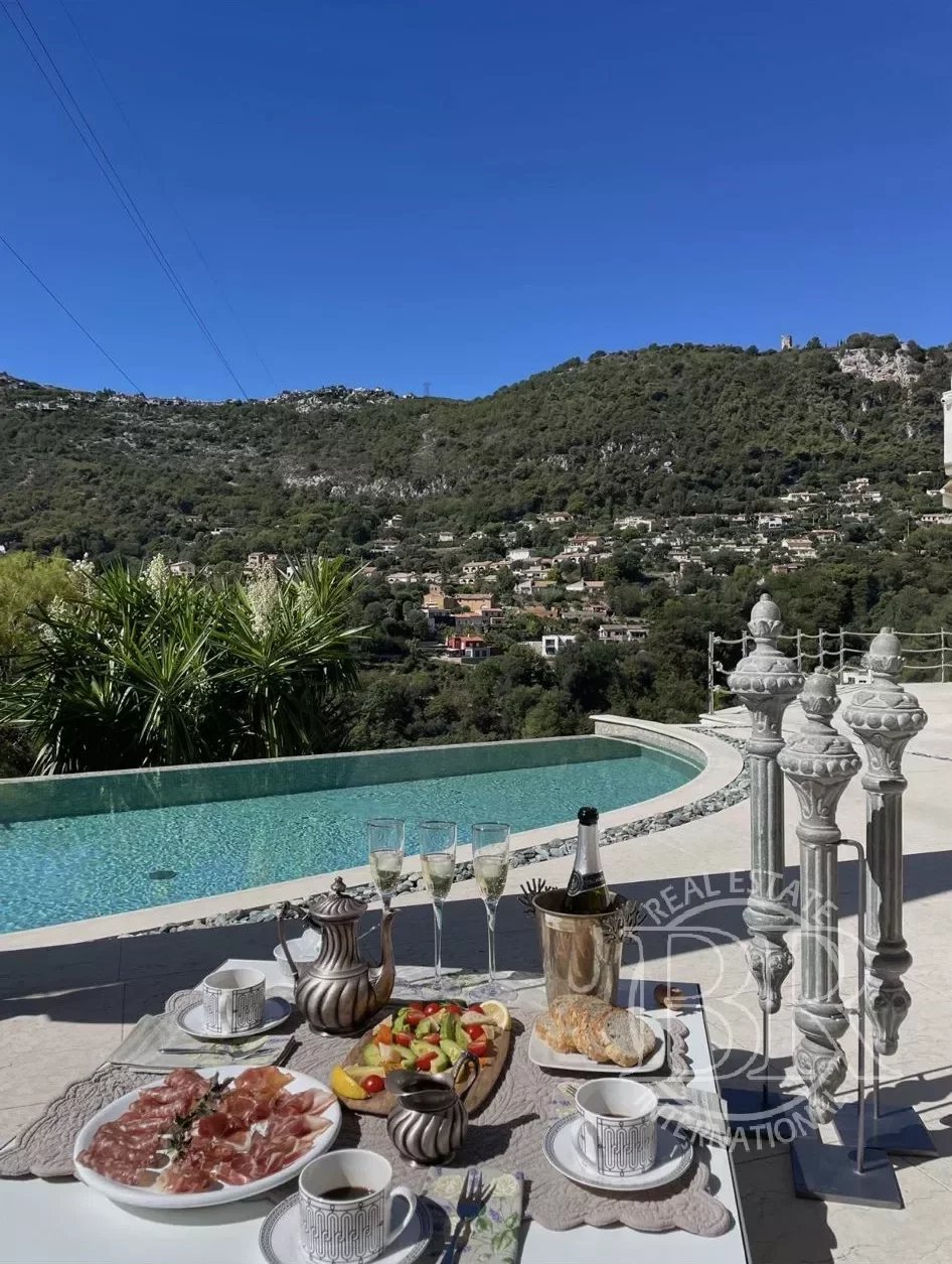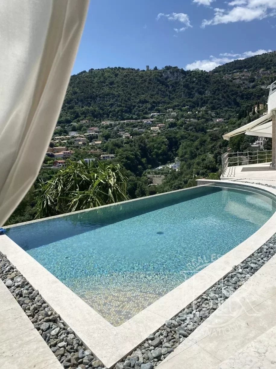 Belle villa panoramique avec piscine, située sur les collines du nord avec vue sur la Principauté de Monaco, sur la route entre Monte Carlo et Nice. Le terrain a une superficie totale d’environ 1000 m 2. Il dispose de deux maisons indépendantes adjacentes, l’une de 200 m2 et l’autre d’environ 55 m 2. La magnifique villa principale dispose de deux grandes chambres doubles de style empire, deux salles de bains et une belle cuisine ouverte sur une terrasse qui mène à la piscine, d’où vous pourrez admirer le centre-ville de Monte Carlo et la mer. La terrasse avec piscine et pergolas en marbre beige foncé donne à la maison une élégance particulière. Les matériaux utilisés dans la rénovation de 2013 sont extrêmement précieux et le mobilier à l’intérieur de la maison a été conçu et réalisé par des designers renommés et des entreprises de luxe. Sans aucun doute, cette propriété représente un excellent investissement pour l’avenir, étant donné le quartier exclusif dans lequel elle se trouve, l’une des localités les plus chères et les plus recherchées au monde, à seulement 1,6 km du Casino de Monte-Carlo.
