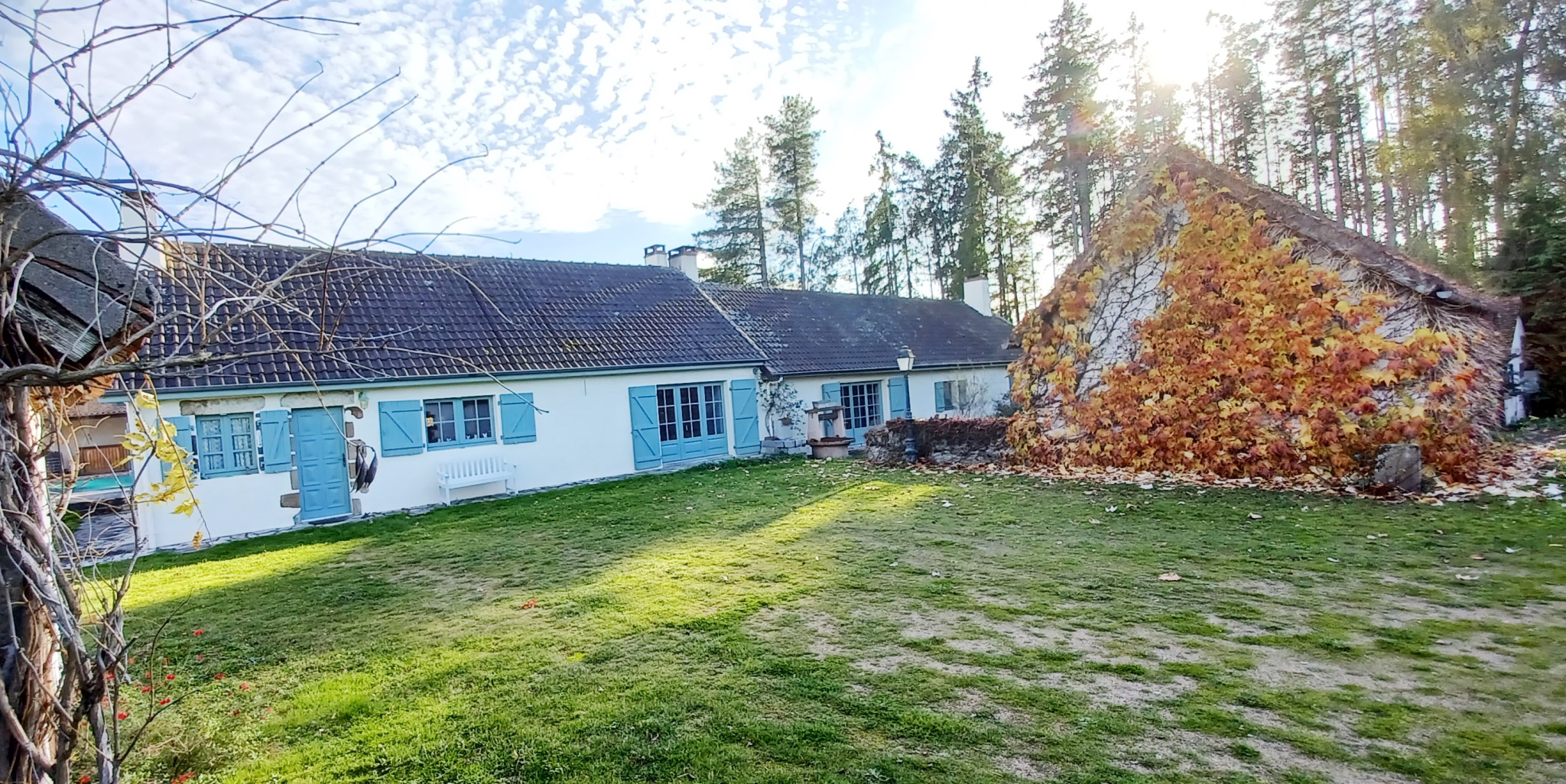 Grande longère bourbonnaise comprenant de plain-pied, séjour traversant avec insert et four à pizza, ouvrant sur cuisine aménagée, salon avec cheminée, buanderie , wc et salle de bains. Couloir façon hacienda desservant partie nuit indépendante composée de 2 chambres et salle d'eau neuve avec gde douche italienne et wc. (chambres d'hôtes). Au-dessus du séjour cathédrale, bureau en mezzanine et une chambre. Terrasse dallée, piscine 11.4x5.4 (à remettre en état) bordée par un pool-house, préau, douche et sanitaires, aucun vis à vis sur l'espace jardin joliment aboré et fleuri et une pinède.