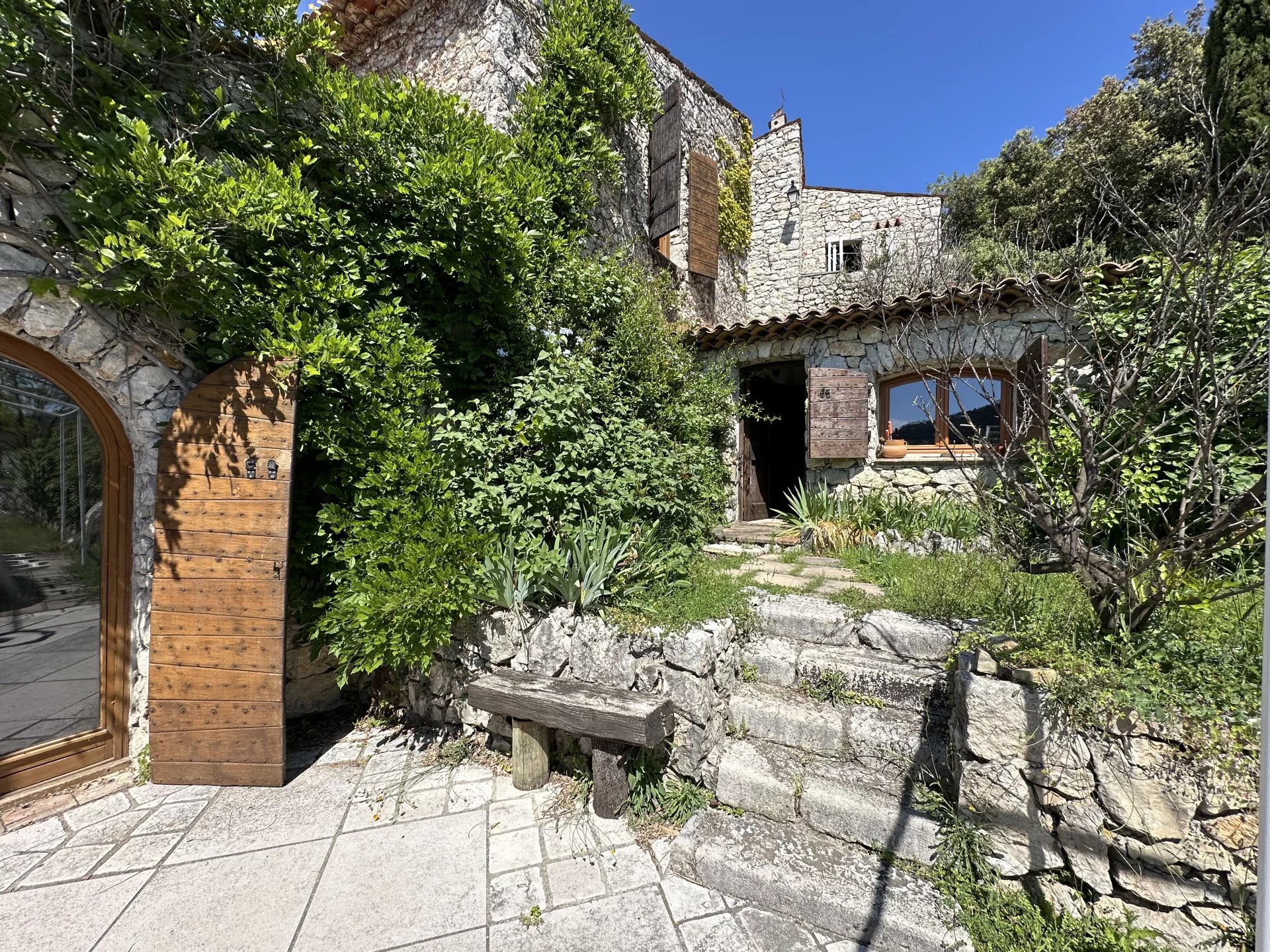 En plein cœur de la l'arrière pays Niçois, dans un lieu somptueux et particulièrement au calme, aux aspects chaleureux et authentiques à seulement 30 minutes de Nice. Sans vis-à-vis, ce lieu atypique, au cœur de la nature, magnifique bergerie en pierre restaurée de 360m2 d'habitations comprenant 6 à 7 chambres, édifiée sur une propriété de plus 14,5 ha, complantée de plus de 200 oliviers, 350 pieds de vignes et 20 arbres fruitiers, ainsi que des bois comprenant chênes et pins. La partie principale d habitation comporte une pièce voutée de la bergerie d'une surface de 90m2, classée au patrimoine historique. Un domaine unique, avec son Mazet indépendant de 52m² saura parfaitement s'adapter à vos besoins. Un jardin plat et gazonné entoure la bergerie et mène à la piscine avec un panorama exceptionnel sur la vallée. La propriété jouit d'un ensoleillement maximal. Un bassin de 170m3 par système autonome d'eau potable et d'arrosage. Garage, abris, dépendance. De nombreux stationnements. Idéal pour les amoureux de la nature ou un projet de chambres d'hôtes. Les informations sur les risques auxquels ce bien est exposé sont disponibles sur le site Géorisques: georisques.gouv.fr
