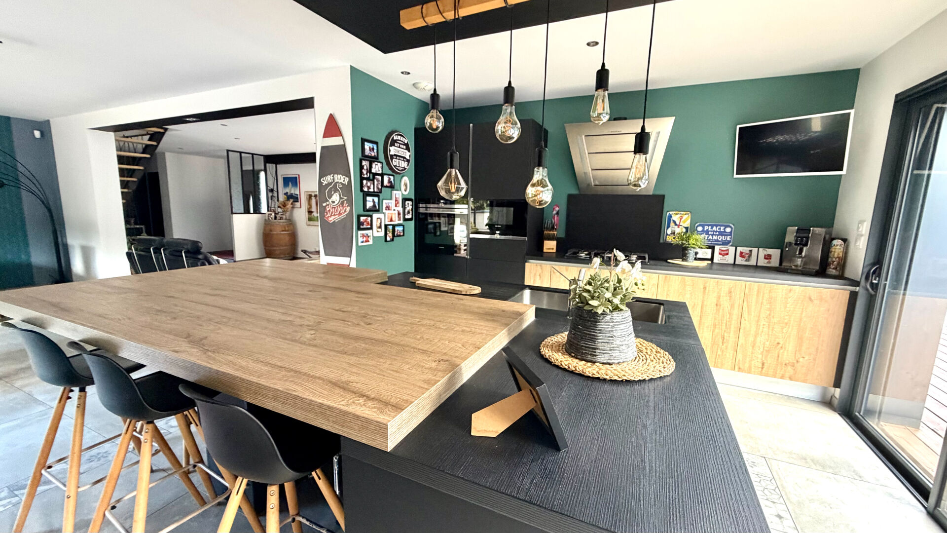Villa contemporaine de 2019 à La Teste-de-Buch (175 m²) Découvrez cette magnifique maison contemporaine de 2019, idéalement située à La Teste-de-Buch, alliant confort moderne, et élégance. Dès l'entrée, vous serez séduit par les volumes généreux de la grande pièce de vie d'environ 70 m², comprenant un salon spacieux et une cuisine ouverte entièrement équipée, parfaite pour recevoir famille et amis. Le rez-de-chaussée offre également une suite parentale avec salle d'eau privative et dressing, une grande buanderie, ainsi qu'un WC indépendant. A l'étage, vous trouverez trois belles chambres avec placards, dont une avec un grand dressing, une salle d'eau moderne et un second WC. Les prestations sont à la hauteur de vos attentes : -Chauffage au sol par pompe à chaleur réversible pour un confort optimal toute l'année -Domotique intégrée, portail électrique et système d'alarme -Toit plat et architecture moderne offrant un style résolument contemporain - Allée en pavés A l'extérieur, vous profiterez d'un terrain de 755 m² entièrement aménagé avec une superbe piscine de 7 x 3,45 m, sécurisée par un volet immergé. Cette propriété récente, fonctionnelle et élégante, offre un cadre de vie idéal, à proximité des commodités, des plages et du bassin d'Arcachon. Pour plus d'informations ou pour organiser une visite, n'hésitez pas à nous contacter dès aujourd'hui au 05 57 63 34 98 La présente annonce immobilière a été rédigée sous la responsabilité éditoriale de Mme Caroline BODEREAU - agent commercial immatriculé au RSAC de Bordeaux sous le numéro 837 855 915 00018. (4.00 % honoraires TTC à la charge de l'acquéreur.)