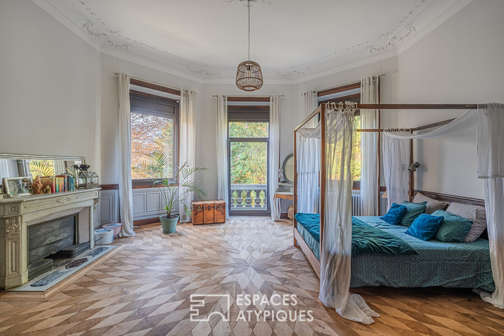 A Gières, au coeur d'un environnement verdoyant et préservé, ce manoir d'exception de 1717 déploie près de 980 m² habitables au sein d'un parc arboré de plus de 11 300 m². Classé pour la singularité de son architecture, il conjugue le charme d'une demeure historique et le confort d'une rénovation complète réalisée en 2012. L'ensemble, organisé sur plusieurs niveaux, comprend vingt pièces dont deux salons d'apparat, dix chambres et neuf salles de bains, ainsi qu'un appartement indépendant d'environ 50 m² au deuxième étage. Le rez-de-jardin accueille un espace de restauration et d'accueil, idéal pour une activité de réception, de chambres d'hôtes ou d'événements professionnels. Le dernier niveau sous les toits, avec sa charpente Eiffel, offre un espace au charme incomparable pour y inventer un appartement d'exception. Les intérieurs se distinguent par leurs volumes généreux, la hauteur sous plafond et la noblesse des matériaux. Le travail de rénovation et l'organisation intérieure ont permis de préserver le cachet d'origine tout en intégrant des prestations contemporaines adaptées à un usage privé ou mixte. Chaque espace offre une atmosphère unique, entre authenticité et confort moderne. A l'extérieur, la terrasse s'ouvre sur un vaste parc paysager aux essences classées, véritable écrin de nature en centre-ville, à deux pas des commerces, des écoles et de la gare. Une piscine couverte complète l'ensemble, offrant un espace de détente privilégié en toutes saisons. Une petite parcelle reste constructible, permettant d'imaginer un projet complémentaire selon les besoins. Ce manoir au caractère de petit château illustre parfaitement l'esprit des biens atypiques : alliance rare entre patrimoine, élégance et potentiel. Un lieu chargé d'histoire où chaque détail témoigne d'un art de vivre unique. Taxe foncière : 10 791 euros Classe énergie : C / Classe climat : C Montant moyen estimé des dépenses annuelles d'énergie pour un usage standard, établi à partir des prix de l'énergie de l'année 2021 : entre 7.670 euros et 10.430 euros. Les informations sur les risques auxquels ce bien est exposé sont disponibles sur le site Géorisques : www.georisques.gouv.fr Contact : Marie-Laure MAVIC (EI) - 06 84 97 46 73 Agent commercial indépendant RSAC Grenoble n° 890 478 670 Marie-Laure MAVIC (EI) Agent Commercial - Numéro RSAC : 890478670 - GRENOBLE.