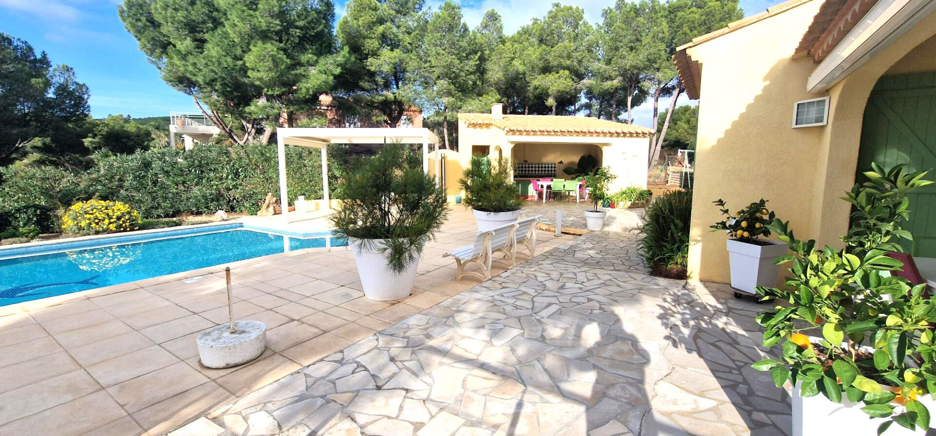 Nichée dans un cadre paisible au coeur de la commune de Narbonne, cette maison de plain pied d'inspiration provençale séduit dès le premier regard par son harmonie et son authenticité. Edifiée sur une parcelle généreuse de 1 337m², elle offre un panorama exceptionnel sur le village de Bages et les paysages environnants. L'espace intérieur, lumineux et soigneusement agencé, se compose de trois chambres confortables et d'un séjour avec vue imprenable invitant à la détente et à la convivialité. Chaque détail a été pensé pour conjuguer esthétique, confort et modernité. A l'extérieur, la piscine 5 X 10 mètres s'intègre harmonieusement dans le jardin paysager. De vastes espaces de repos complètent ce lieu de vie privilégié. Alliance parfaite entre charme méditerranéen et architecture contemporaine, cette propriété rare offre un art de vivre authentique sous le soleil du sud .