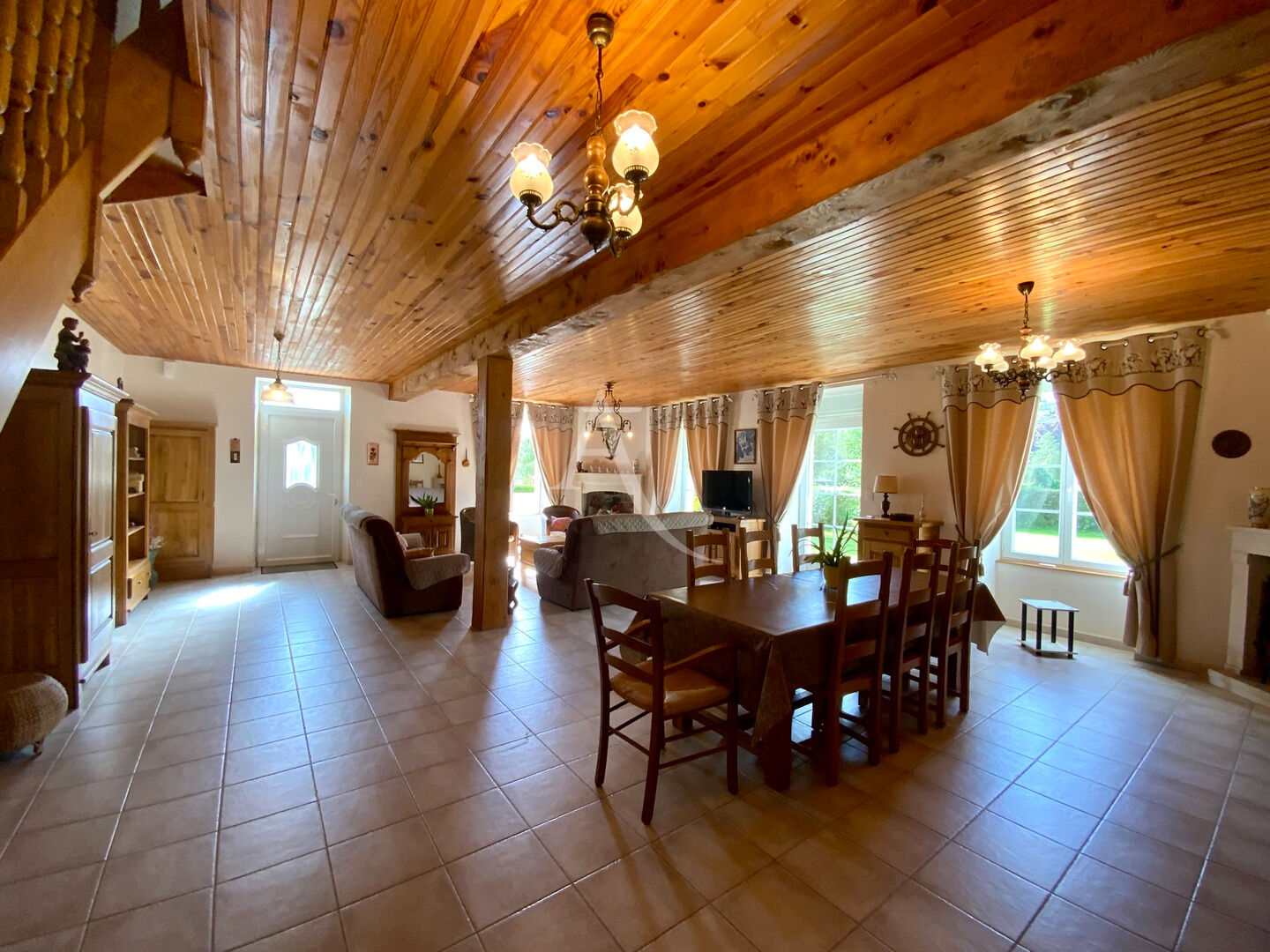 Un vrai havre de paix composé de 2 maisons charentaises, sans vis-à-vis, au calme. Maison principale avec au rez-de-chaussée, une pièce de vie de 65m², pierres, poutres, 2 cheminées, cuisine de 15m², véranda isolée ouvrant sur une superbe piscine couverte et chauffée. A l'étage : 3 grandes chambres, un grand pallier pouvant servir de bureau, une salle de bains à moderniser. Rare pour ce type de bien un DPE B, grâce à un chauffage au sol, pompe à chaleur, panneaux solaires pour la production d'eau chaude La deuxième maison (110m² environ) offre deux chambres, deux pièces de vie lumineuses (salon et salle à manger/cuisine), grand cellier, garage, salle d'eau. Le tout sur un parc arboré près de 3000m², entretenu comme un jardin d'exception. Portail auto, double vitrage, assainissement conforme. Possibilité de relier les deux maisons. Idéal maison familiale ou projet locatif. En habitant cette maison, vous aurez l'impression être vacances toute l'année ! Alors, on viste ? (4.53 % honoraires TTC à la charge de l'acquéreur.) Cédric BOUSSELY (EI) Agent Commercial - Numéro RSAC : 931760326 - SAINTES.