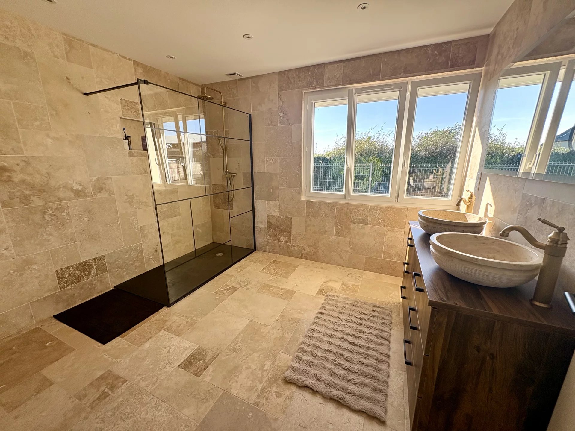 La partie nuit propose une suite parentale spacieuse et raffinée, composée d’une belle chambre, d’un dressing sur mesure et d’une salle d’eau contemporaine avec douche à l’italienne. Un bureau complète ce niveau, parfait pour le télétravail ou une activité indépendante, ainsi qu’un WC indépendant.