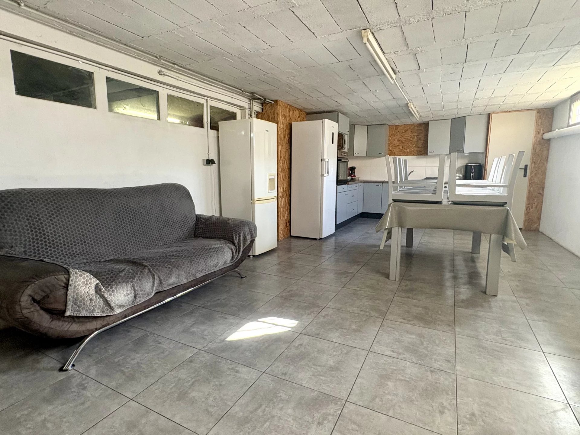 > Le sous-sol total constitue un véritable atout : vous y découvrirez une pièce de vie conviviale avec cuisine et coin repas, parfaite pour recevoir famille et amis ou créer un espace indépendant. S’ajoutent également un atelier, une buanderie, une cave saine ainsi qu’un grand garage.