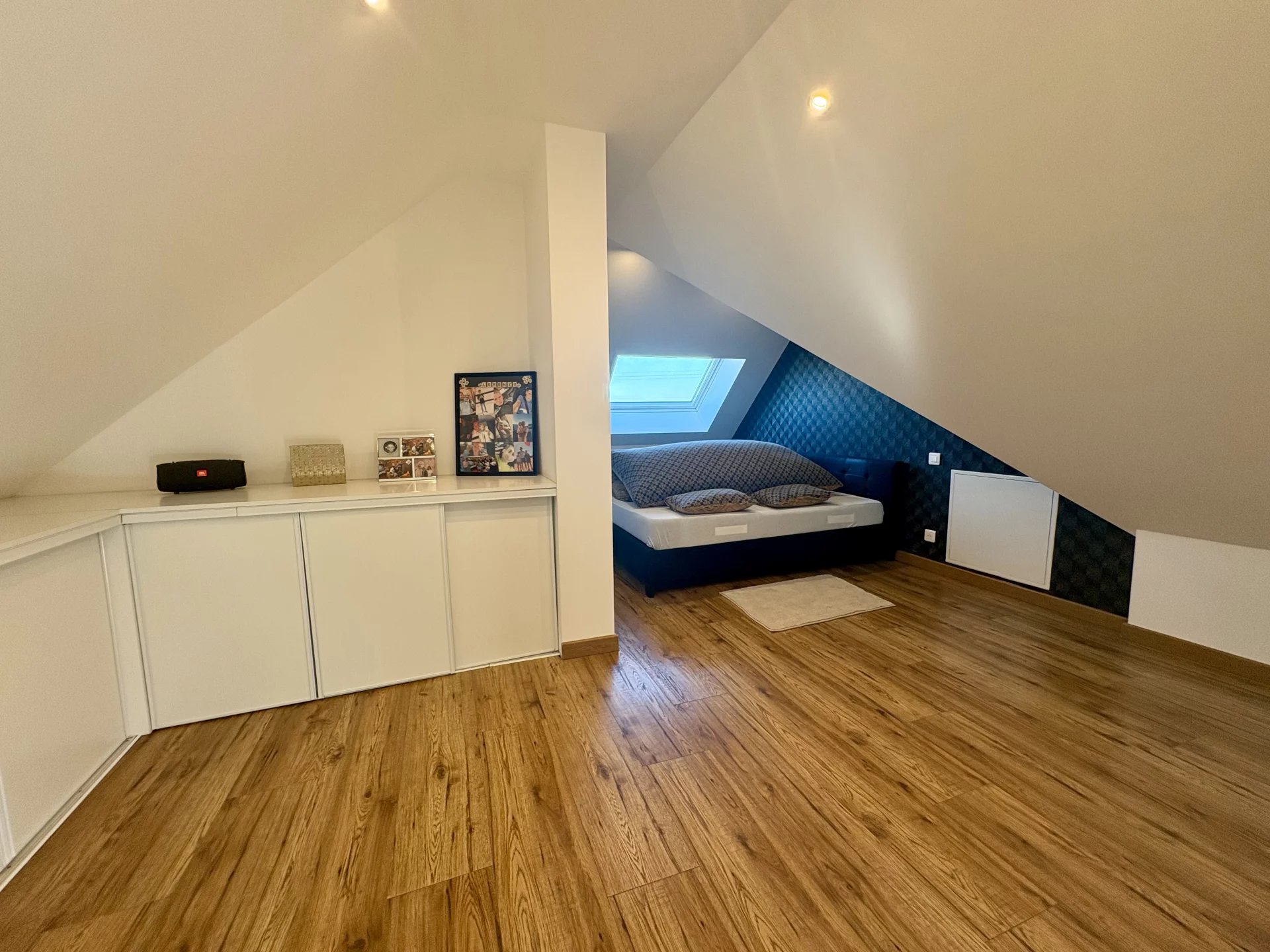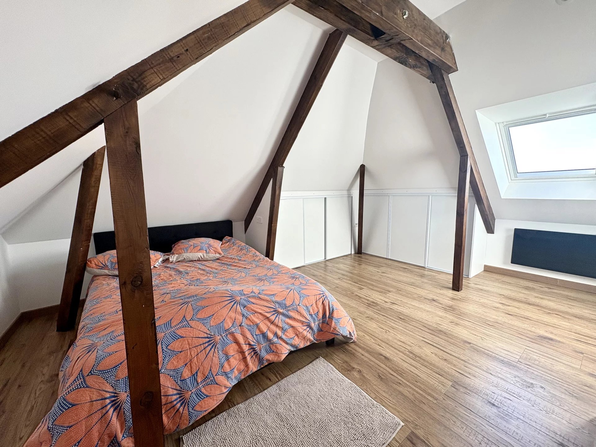 > À l’étage, un charmant coin bureau offre un espace supplémentaire, idéal pour les enfants ou les loisirs. Deux grandes chambres sous pente apportent charme et intimité, tandis qu’une salle d’eau élégante et un WC séparé garantissent confort et praticité.