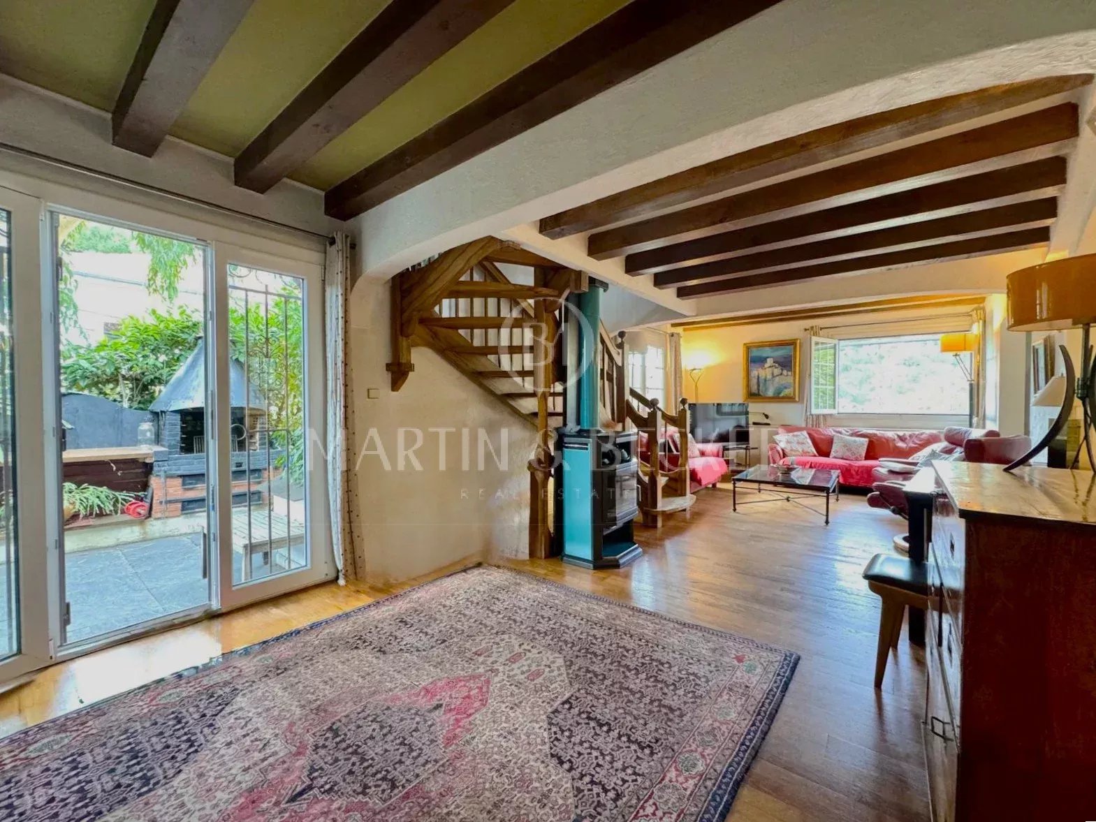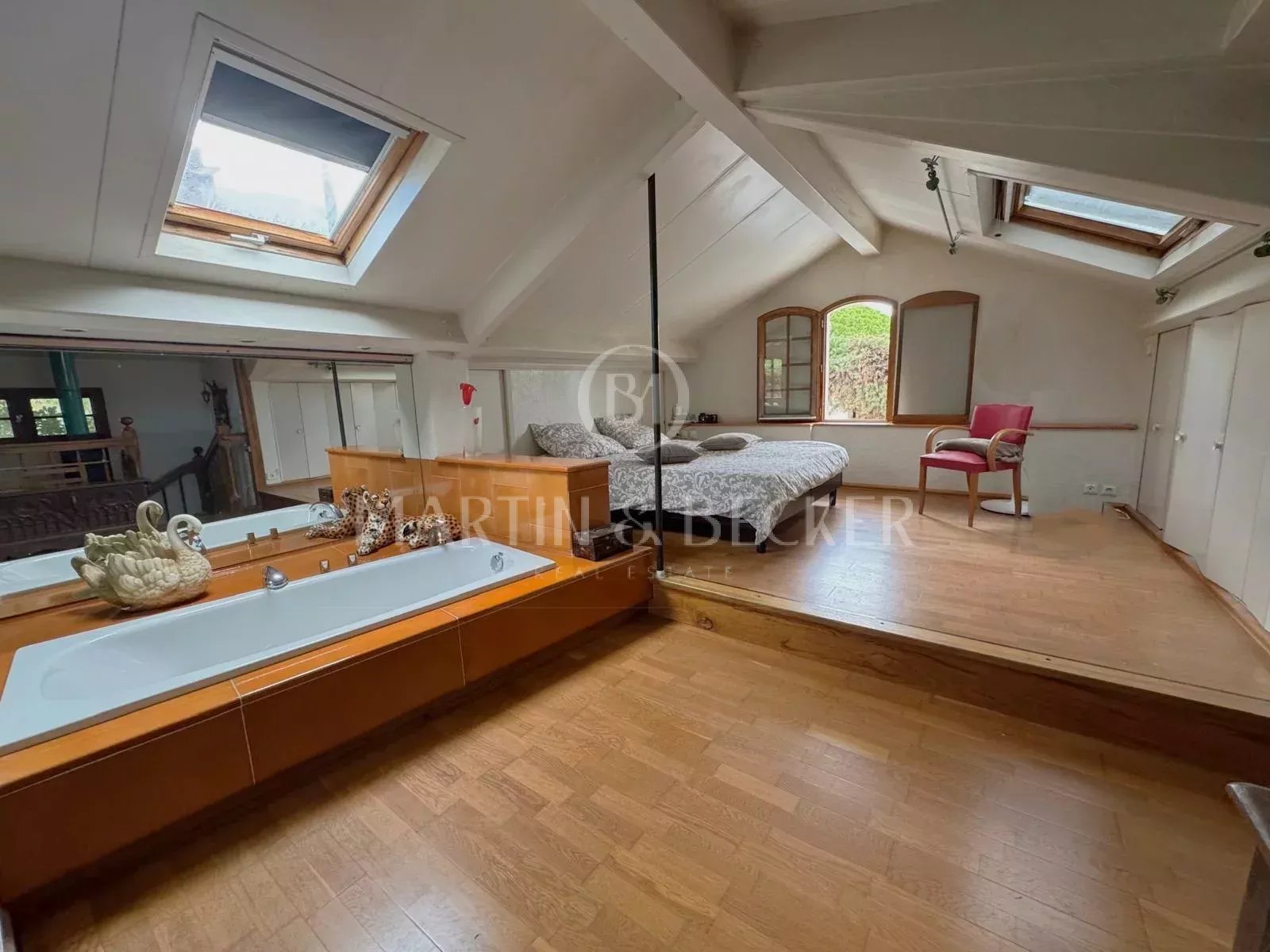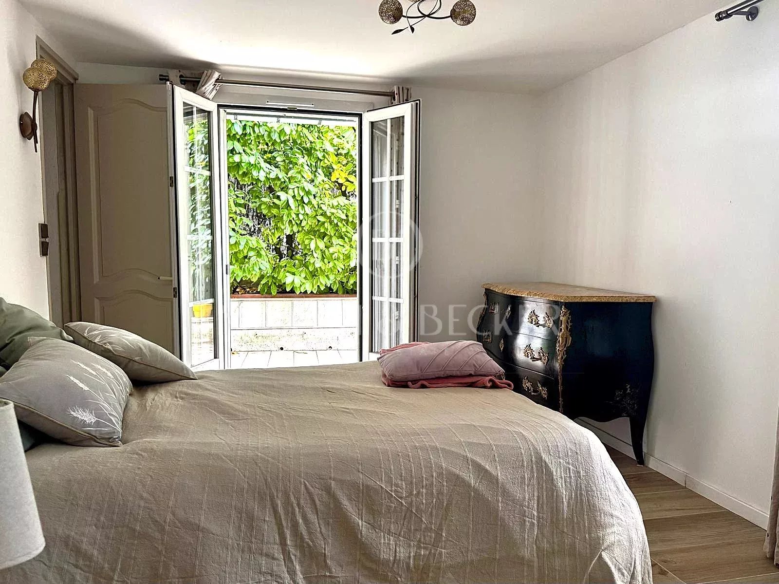 RARE SUR LE MARCHE - Au bout d’une impasse, dans un environnement calme et résidentiel de villas, à proximité immédiate de l’hôpital Simone Veil et des écoles, cette charmante villa de 138 m² offre un cadre de vie paisible et verdoyant, entourée de belles maisons bourgeoises. Le rez-de-chaussée accueille un vaste et chaleureux espace de réception avec salon et salle à manger, une cuisine indépendante, ainsi qu’un bureau et une salle de bains, le tout ouvrant sur de belles terrasses ensoleillées et un jardin paysagé. À l’étage, la suite parentale profite d’une spacieuse salle de bains aménagée dans les combles, créant un cocon chaleureux et intime. En rez-de-jardin, vous trouverez une chambre avec salon privatif pouvant facilement être transformé en troisième chambre, une salle de douches supplémentaire, une buanderie, ainsi qu’un garage actuellement aménagé en atelier. Un lieu de vie idéal pour une famille recherchant le calme, la proximité des commodités et le charme d’une maison de caractère.