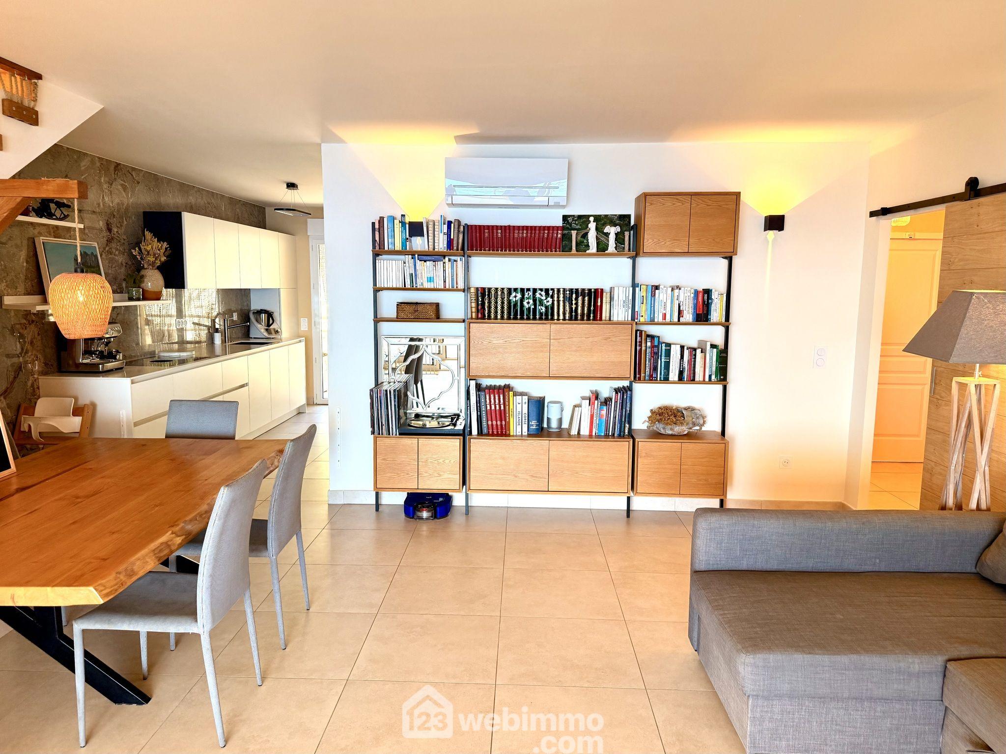 Dominant la célèbre plage Marinella, là où Tino Rossi aimait chanter face aux flots azur, ce duplex de 144 m² (126,5 m² Carrez) incarne un art de vivre insulaire rare.