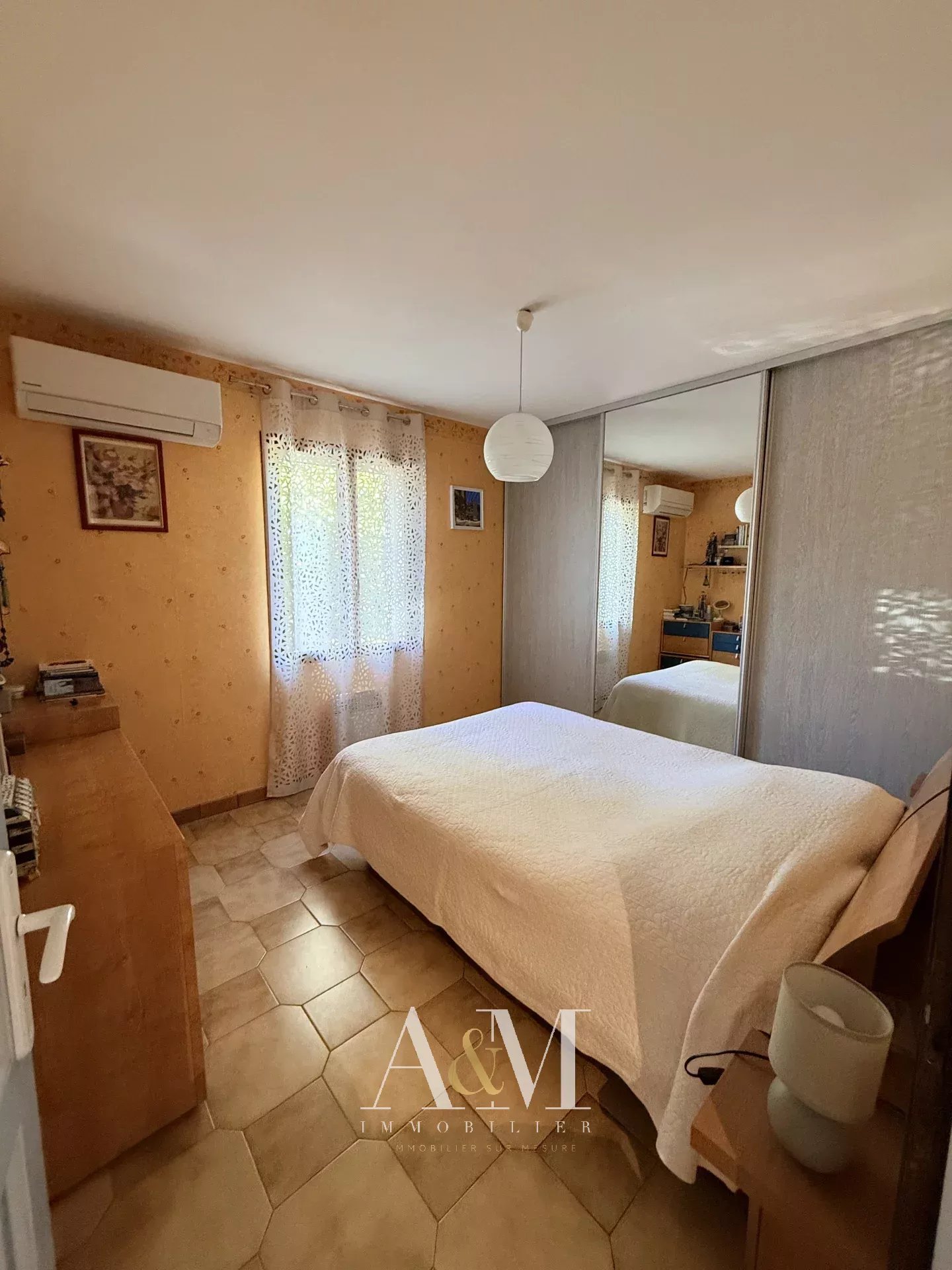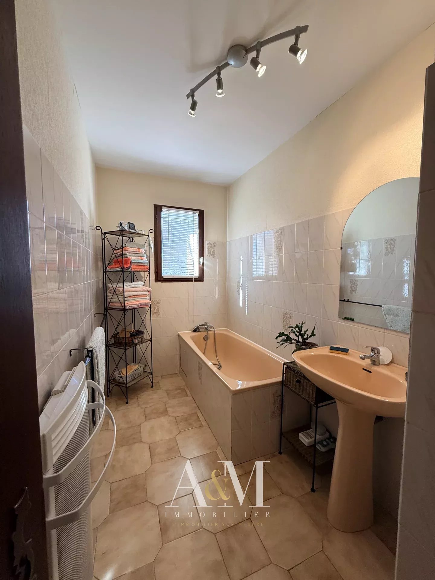 MONTBAZIN - EXCLUSIVITÉ - Située au bout d'une impasse, cette villa T4 de 120 m² habitables présente 4 faces et dispose d'un double garage de 36 m². Double vitrage, volets bois, climatisation réversible, poêle à bois, cuisine aménagée. Au rez-de-chaussée, vous trouverez une chambre et une salle d'eau, et à l'étage, deux chambres accompagnées d'une salle de bains. Terrain arboré de plantes méditerranéennes, olivier, magnolia, yucca, espaces verts et un côté jardin. Piscine avec revêtement neuf, terrasses 18 m² et 30 m², forage, abris à vélos, abris bois... Sur un terrain de 1374 m². En excellent état, une proposition unique et uniquement disponible chez A&M Immobilier ! Dpe 2026 179kWh/m²/an Classe énergétique C