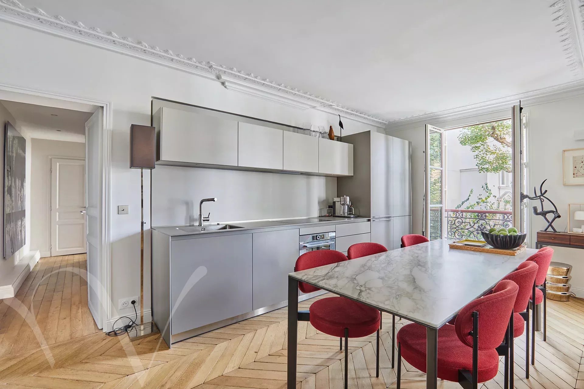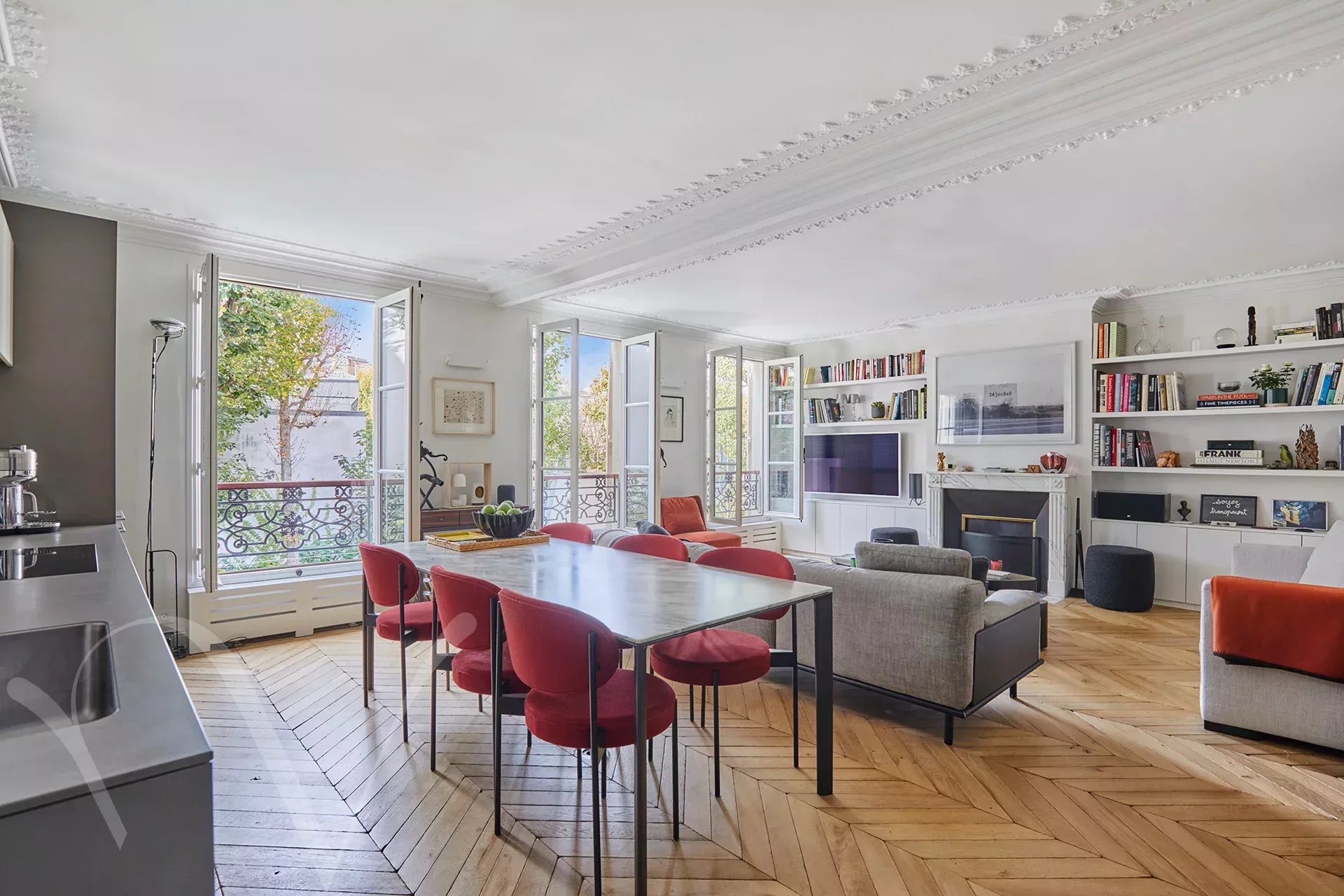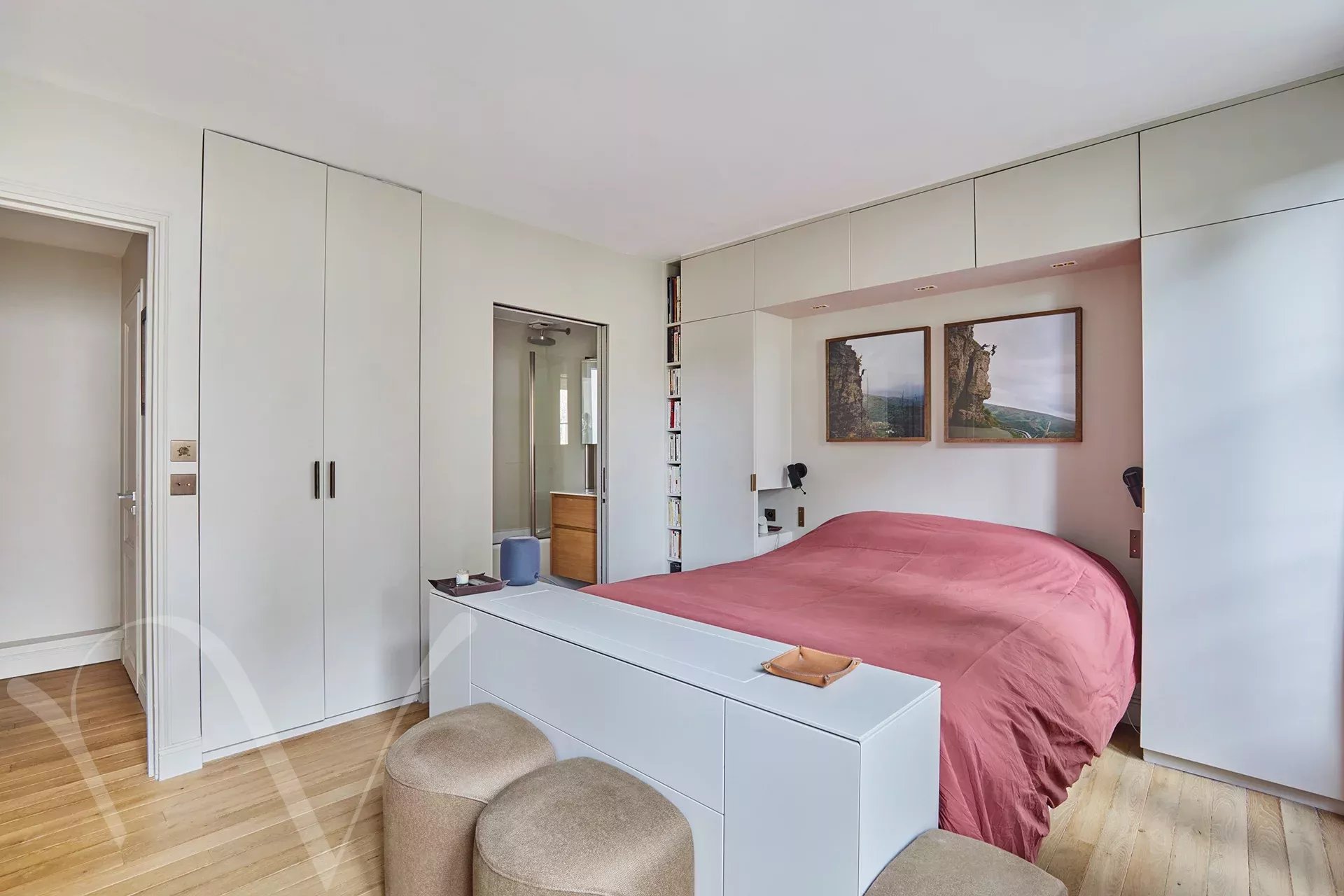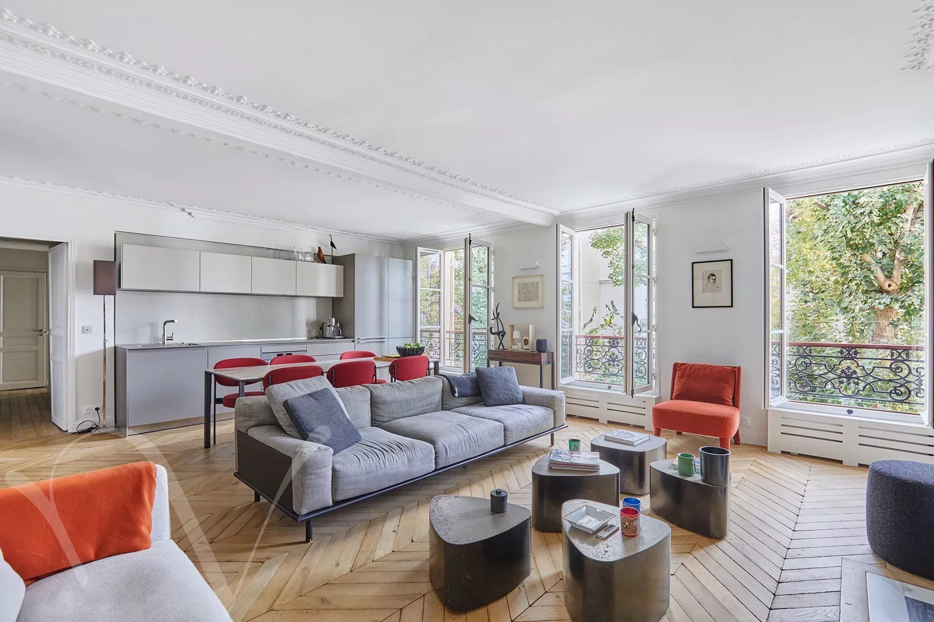 Au cœur de Saint-Germain-des-Prés, dans la jolie rue du Pré-aux-Clercs, au deuxième étage avec ascenseur d'un bel immeuble construit en 1900, un appartement de 89 m² loi Carrez composé d'une entrée avec un vestiaire, une belle pièce de réception de 38 m² avec salon, salle à manger et cuisine de la marque Bulthaup, une chambre avec sa salle de douche avec toilettes et coin buanderie, une deuxième chambre avec grand dressing et sa salle de bains, toilettes séparées. L'appartement a été rénové avec des matériaux haut de gamme. Il donne entièrement sur des jardins, à l'ouest, et bénéficie du calme absolu.