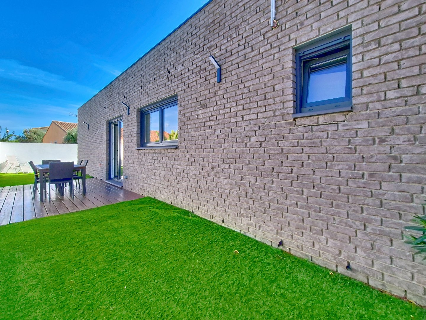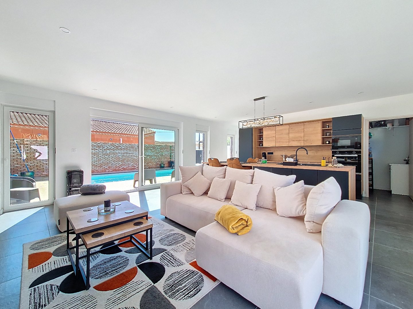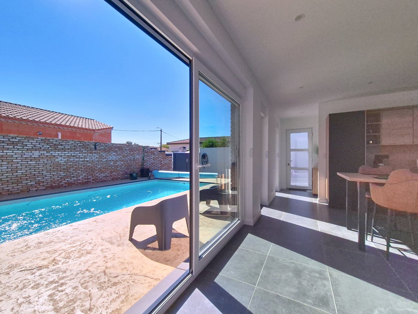 A Cazouls les Béziers, dans un quartier calme, cette villa de plain-pied, construite en 2022, se distingue par son architecture moderne et son style chic et épuré. Sa façade en parement de briques grises lui confère une véritable identité, tout en bénéficiant d'une excellente isolation intérieure garantissant confort thermique et acoustique. Édifiée sur une parcelle entièrement clôturée de 431 m², la maison offre une belle pièce de vie lumineuse ouverte sur l'extérieur grâce à ses grandes baies vitrées, créant une continuité naturelle avec la terrasse et la piscine. La cuisine ouverte est élégante et fonctionnelle. Une buanderie et un toilette indépendant complètent l'espace jour. Le coin nuit comprend 2 chambres avec placards intégrés ainsi qu'une salle d'eau contemporaine avec WC. Les extérieurs sont parfaitement aménagés : piscine chauffée avec plage en béton imprimé, pool house traversant équipé de volets/stores électriques permettant d'en profiter en toute saison, et atelier. La maison est équipée d'une installation photovoltaïque en auto-consommation, avec la possibilité de recharger un véhicule électrique. Une villa élégante, moderne, prête à vivre, offrant confort, sobriété et qualité de vie. Un bien rare, conçu avec soin, qui se distingue nettement des constructions standards. DPE en cours Ce bien vous est présenté par Emilie Calmel chez GC Immobilier.