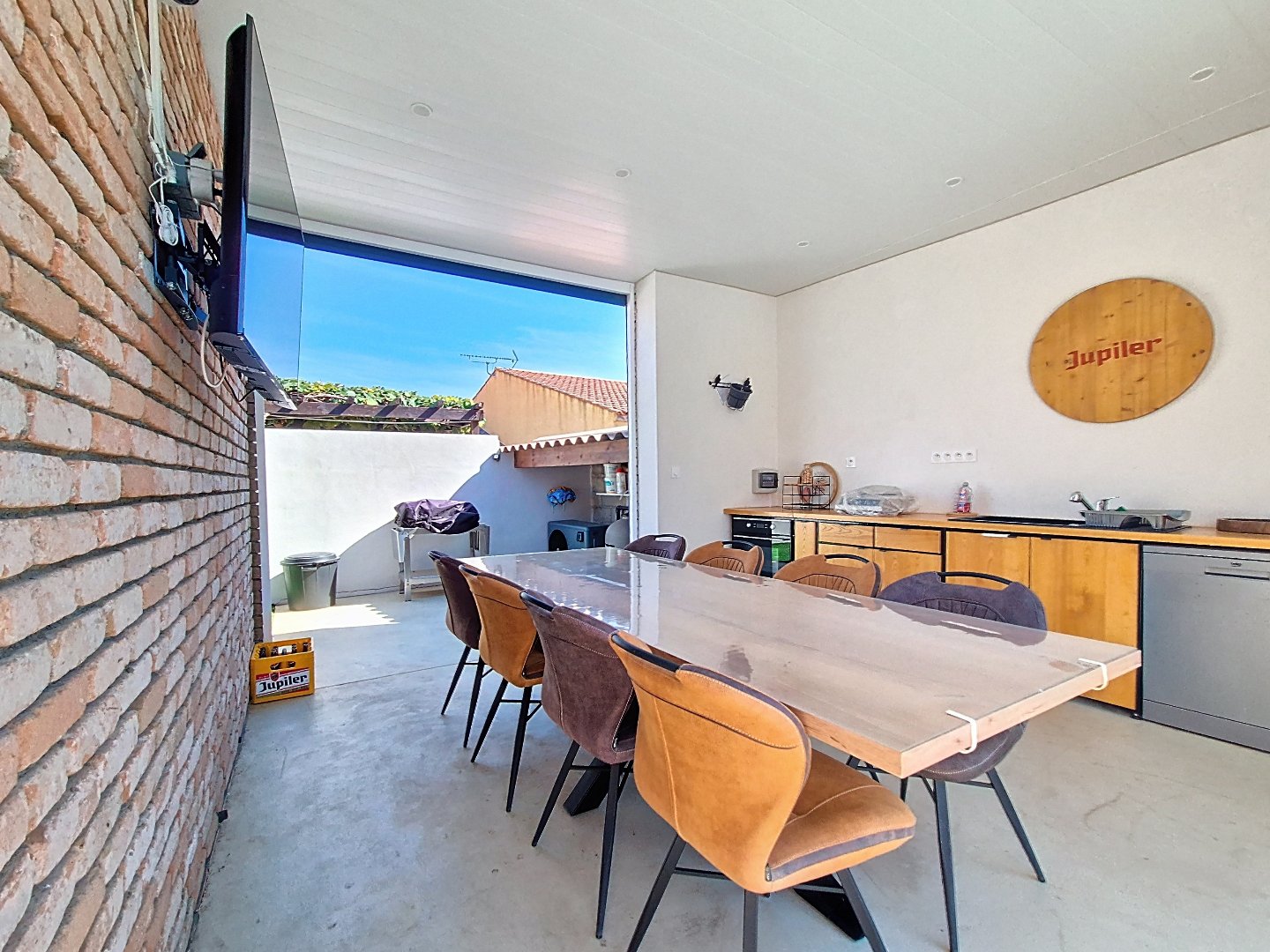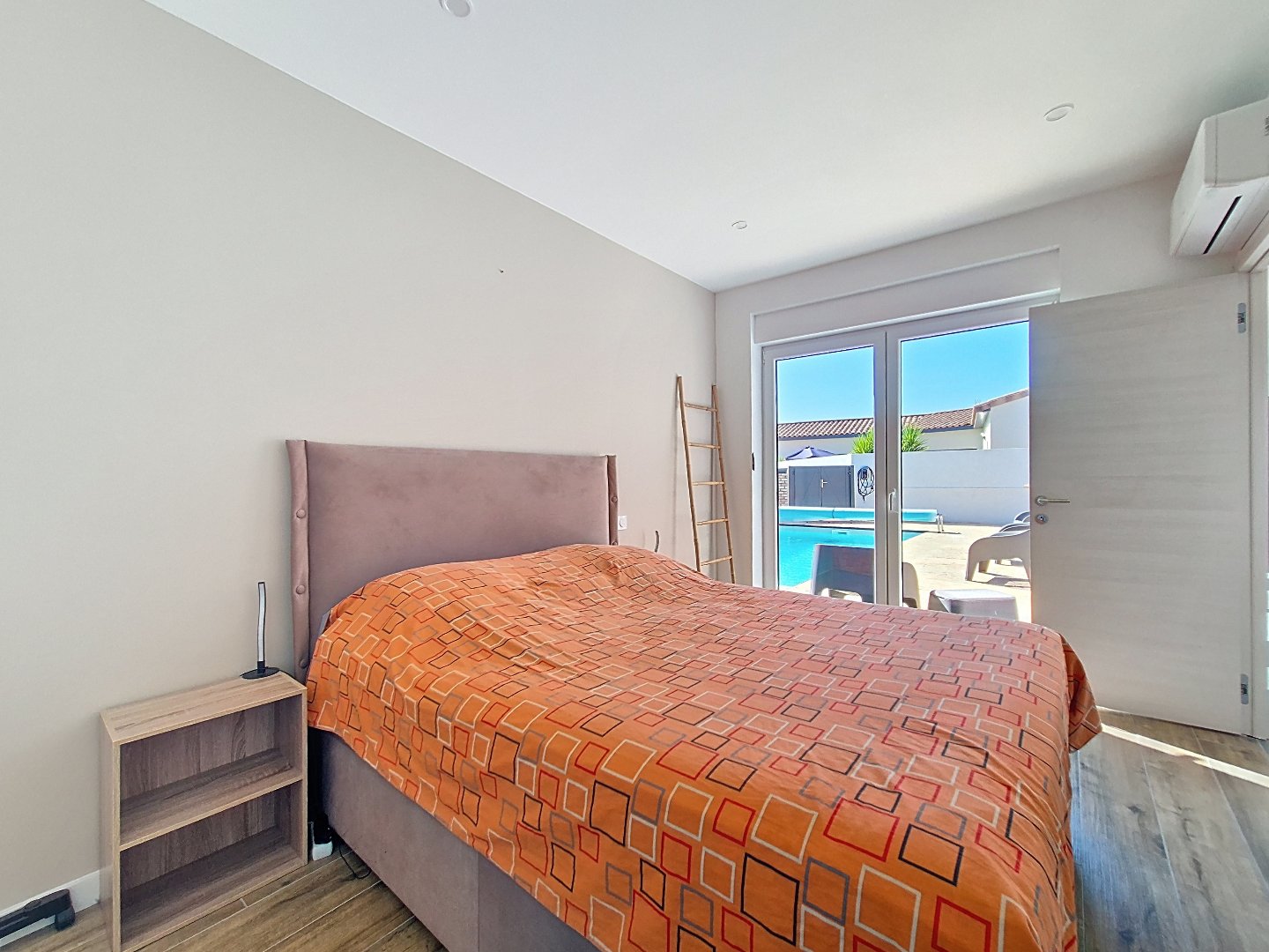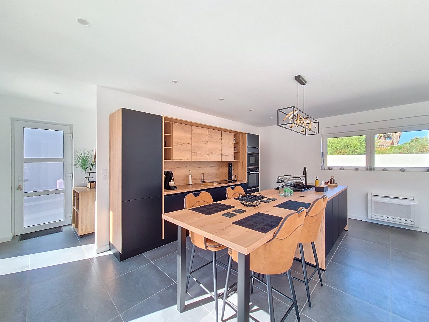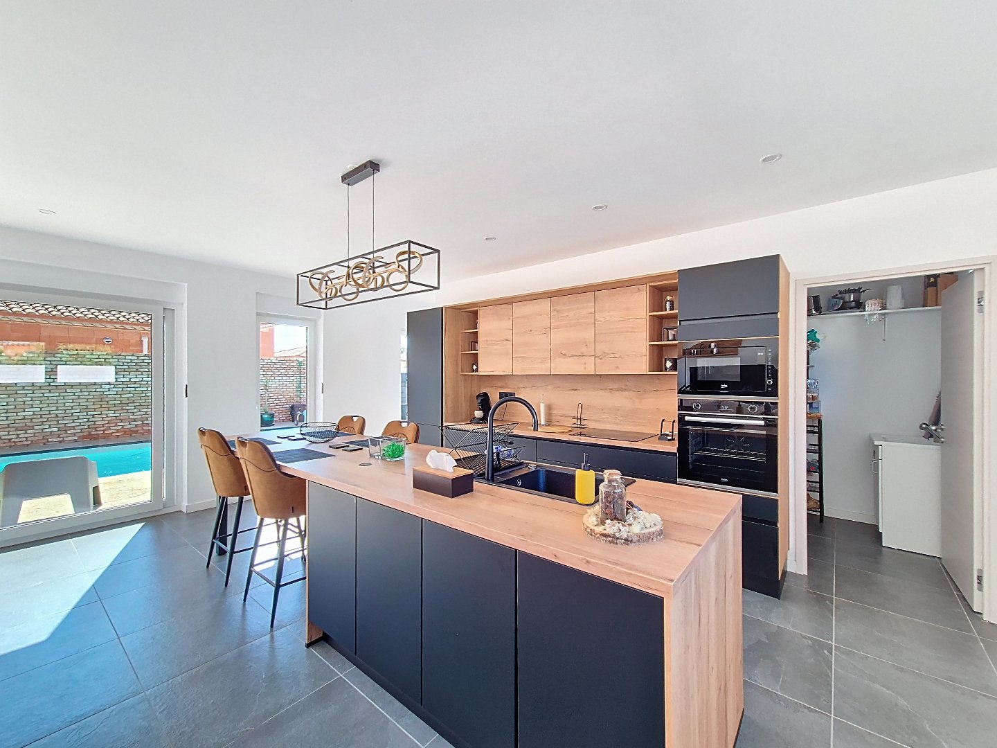 A Cazouls les Béziers, dans un quartier calme, cette villa de plain-pied, construite en 2022, se distingue par son architecture moderne et son style chic et épuré. Sa façade en parement de briques grises lui confère une véritable identité, tout en bénéficiant d'une excellente isolation intérieure garantissant confort thermique et acoustique. Édifiée sur une parcelle entièrement clôturée de 431 m², la maison offre une belle pièce de vie lumineuse ouverte sur l'extérieur grâce à ses grandes baies vitrées, créant une continuité naturelle avec la terrasse et la piscine. La cuisine ouverte est élégante et fonctionnelle. Une buanderie et un toilette indépendant complètent l'espace jour. Le coin nuit comprend 2 chambres avec placards intégrés ainsi qu'une salle d'eau contemporaine avec WC. Les extérieurs sont parfaitement aménagés : piscine chauffée avec plage en béton imprimé, pool house traversant équipé de volets/stores électriques permettant d'en profiter en toute saison, et atelier. La maison est équipée d'une installation photovoltaïque en auto-consommation, avec la possibilité de recharger un véhicule électrique. Une villa élégante, moderne, prête à vivre, offrant confort, sobriété et qualité de vie. Un bien rare, conçu avec soin, qui se distingue nettement des constructions standards. DPE en cours Ce bien vous est présenté par Emilie Calmel chez GC Immobilier.