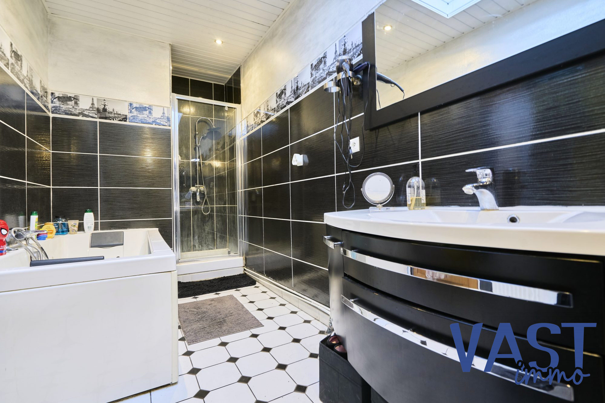 Au rez-de-chaussée : une belle cuisine américaine entièrement équipée, ouverte sur une pièce de vie lumineuse de plus de 45 m², créant un cadre convivial et chaleureux. Une grande salle de bain avec douche, baignoire, espace buanderie et WC indépendant complète ce niveau.