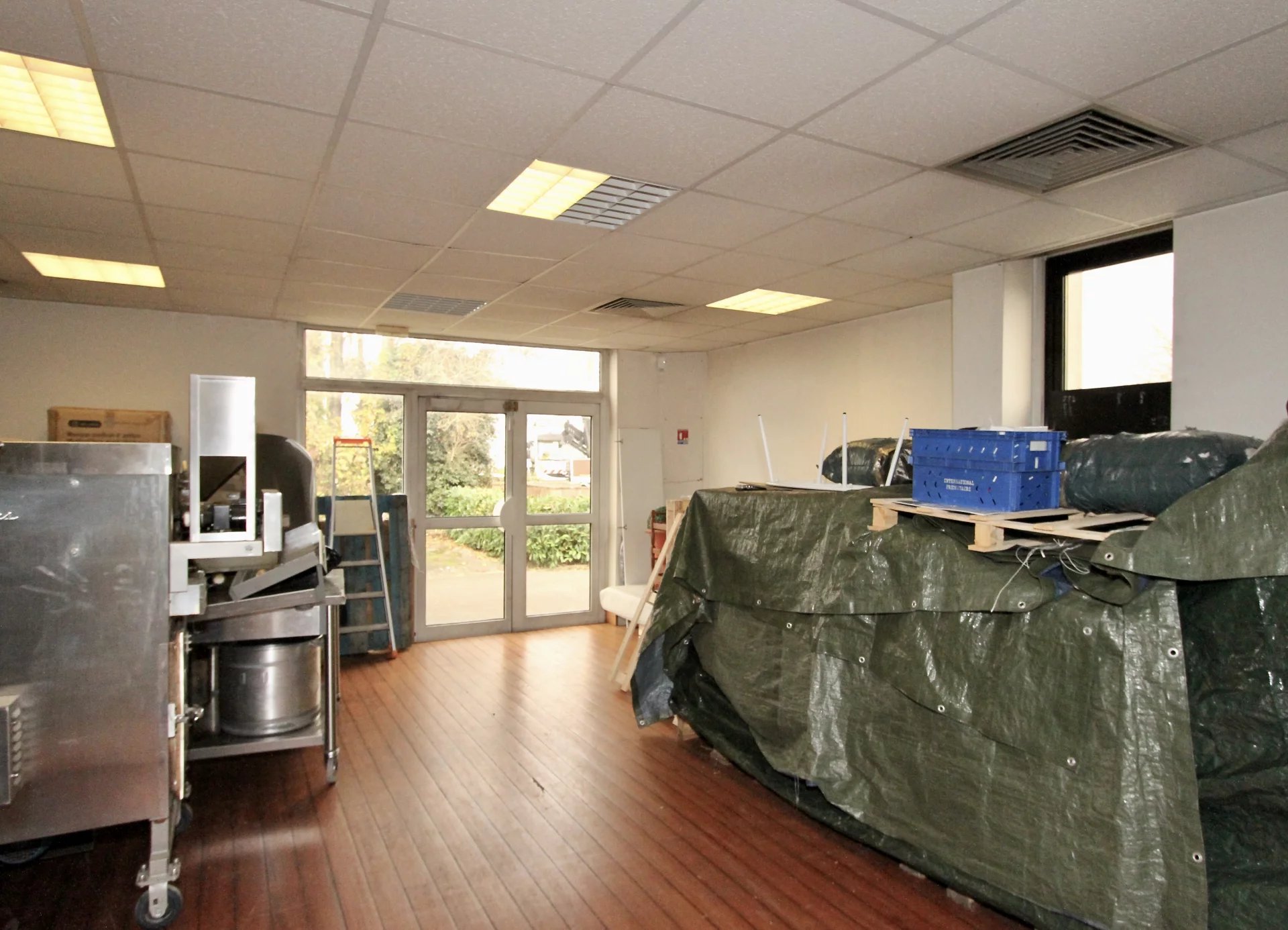 L’ensemble dispose en RDC : d’un accueil, de 6/7 bureaux, 350 m² env d’espace de stockage petits matériels avec porte sectionnelle, sanitaires, trois accès indépendant et 600 m² env d’espaces extérieur clos et sécurisés.