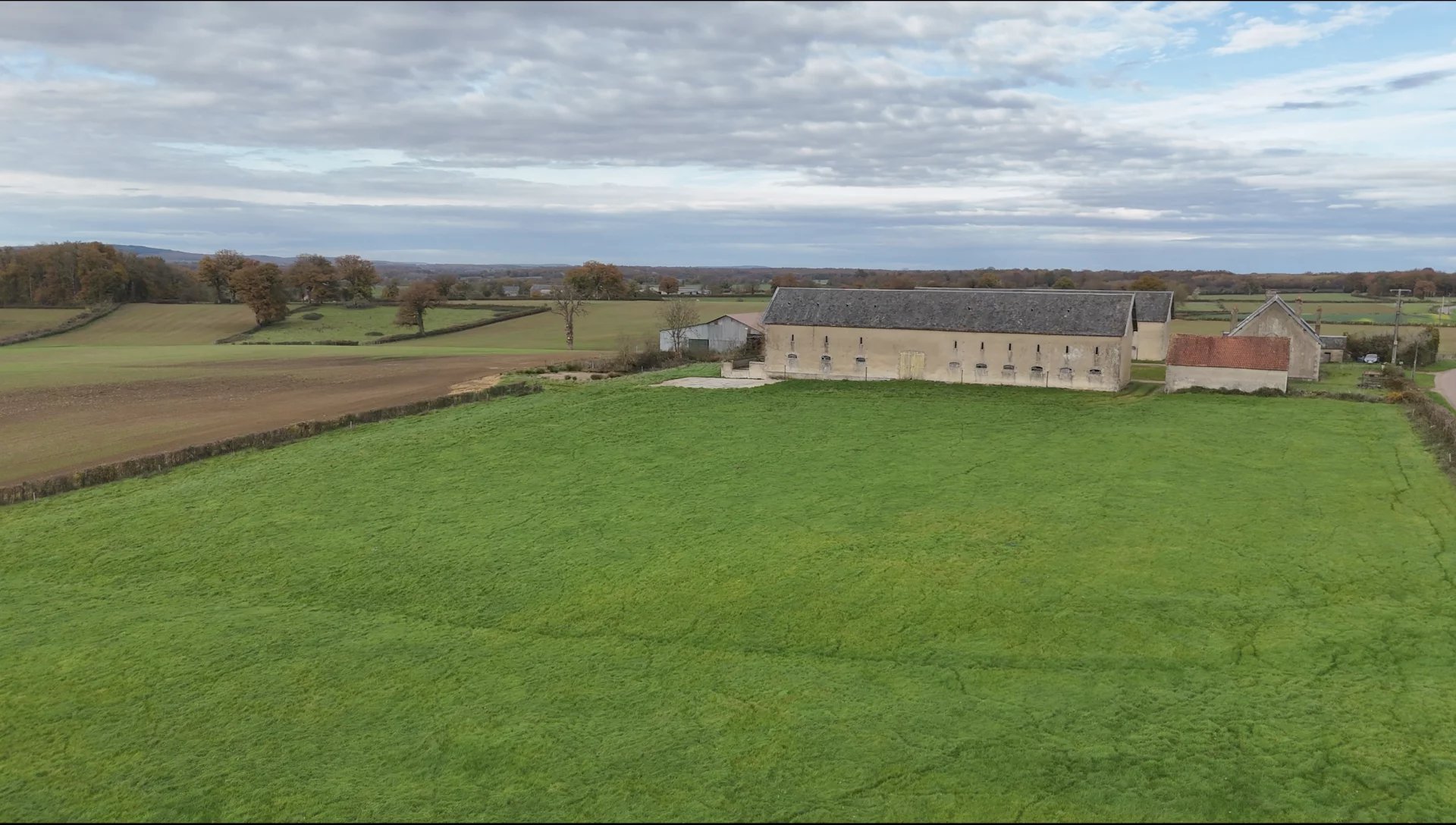 L’ensemble est implanté sur une vaste parcelle de plus de trois hectares libres d’occupation. Vous disposez également d’une jolie vue sur la campagne environnante.