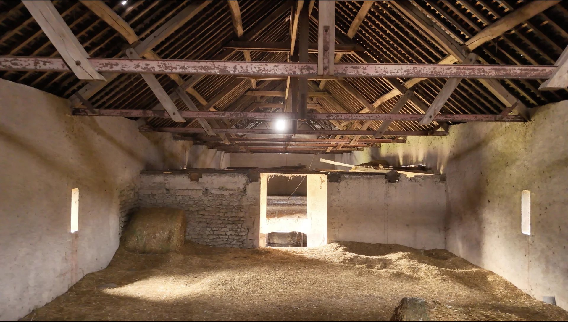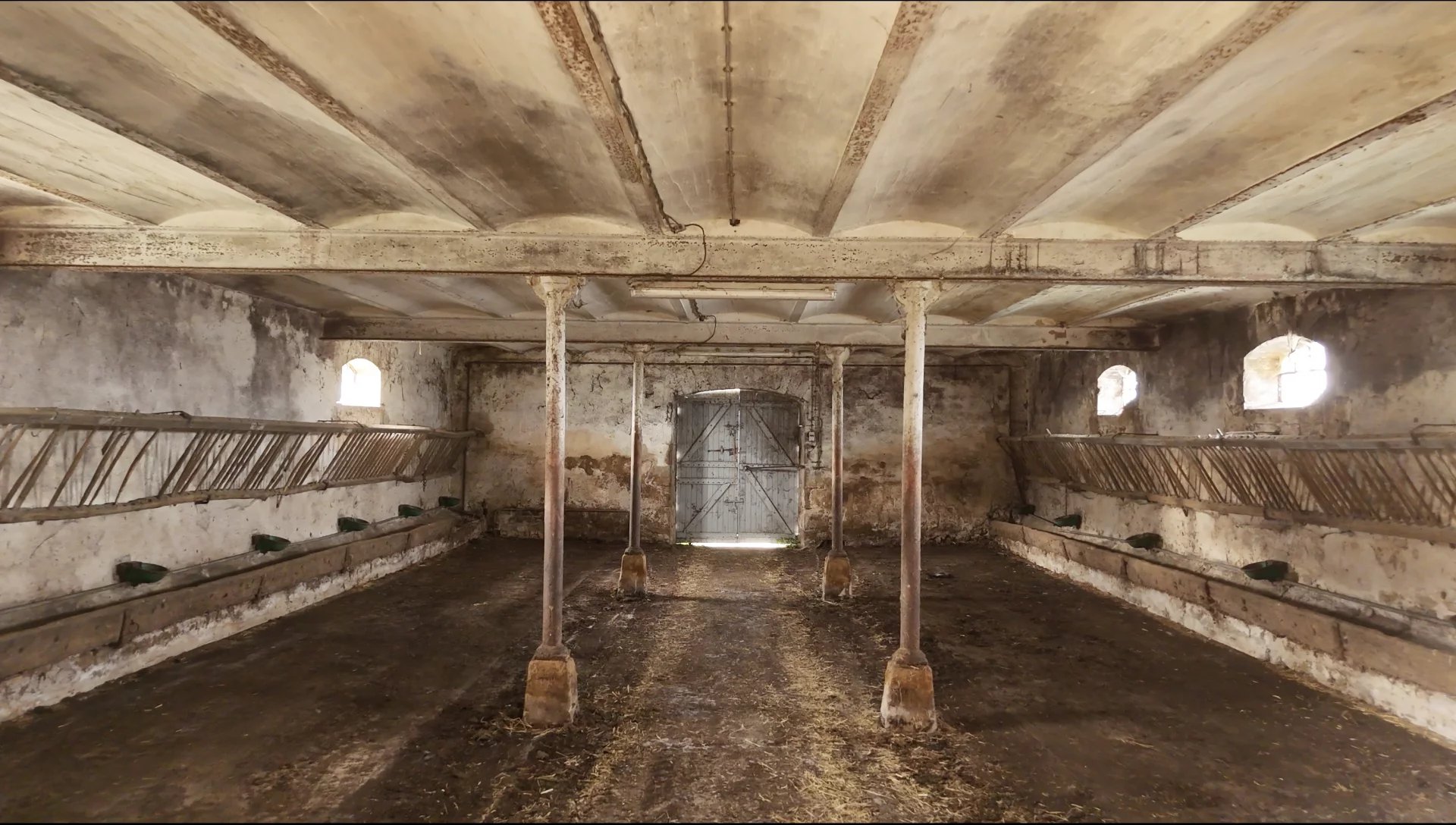Niveau dépendances, vous trouverez deux bâtiments de 365m2 chacunes avec grange et étables, suivi d’un ancien pigeonnier ainsi qu’un hangar.