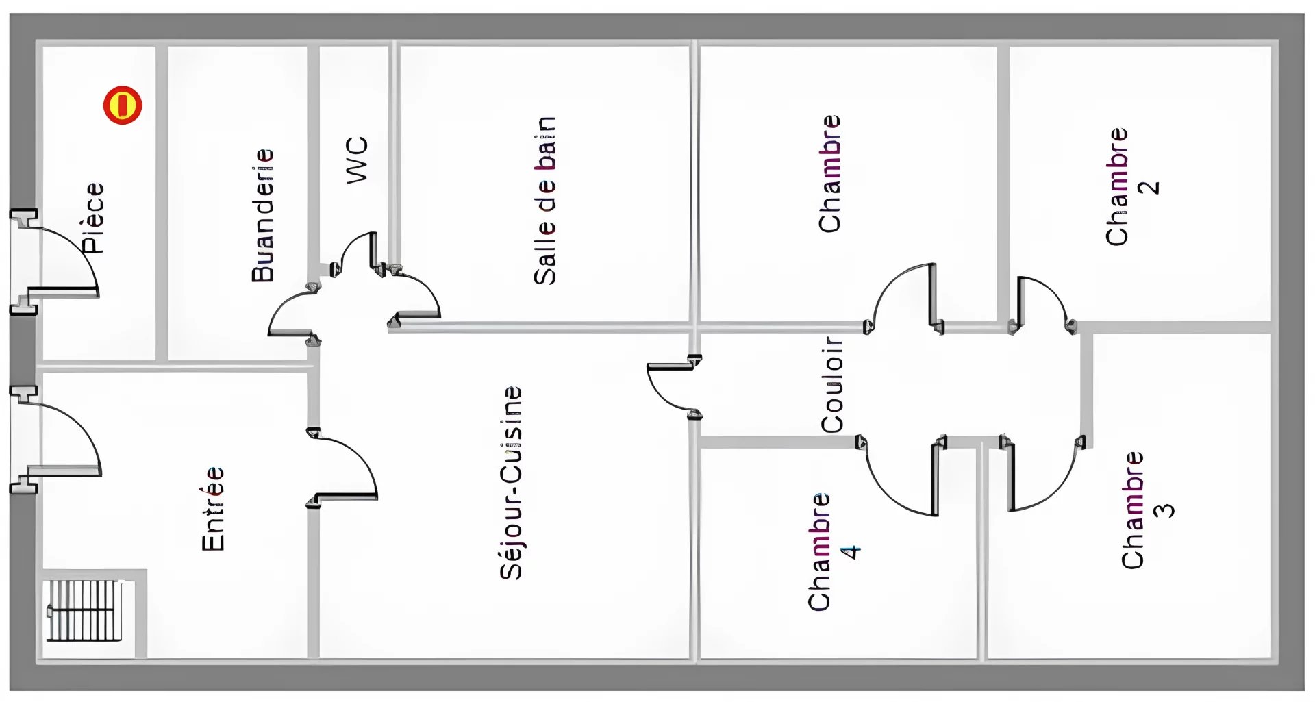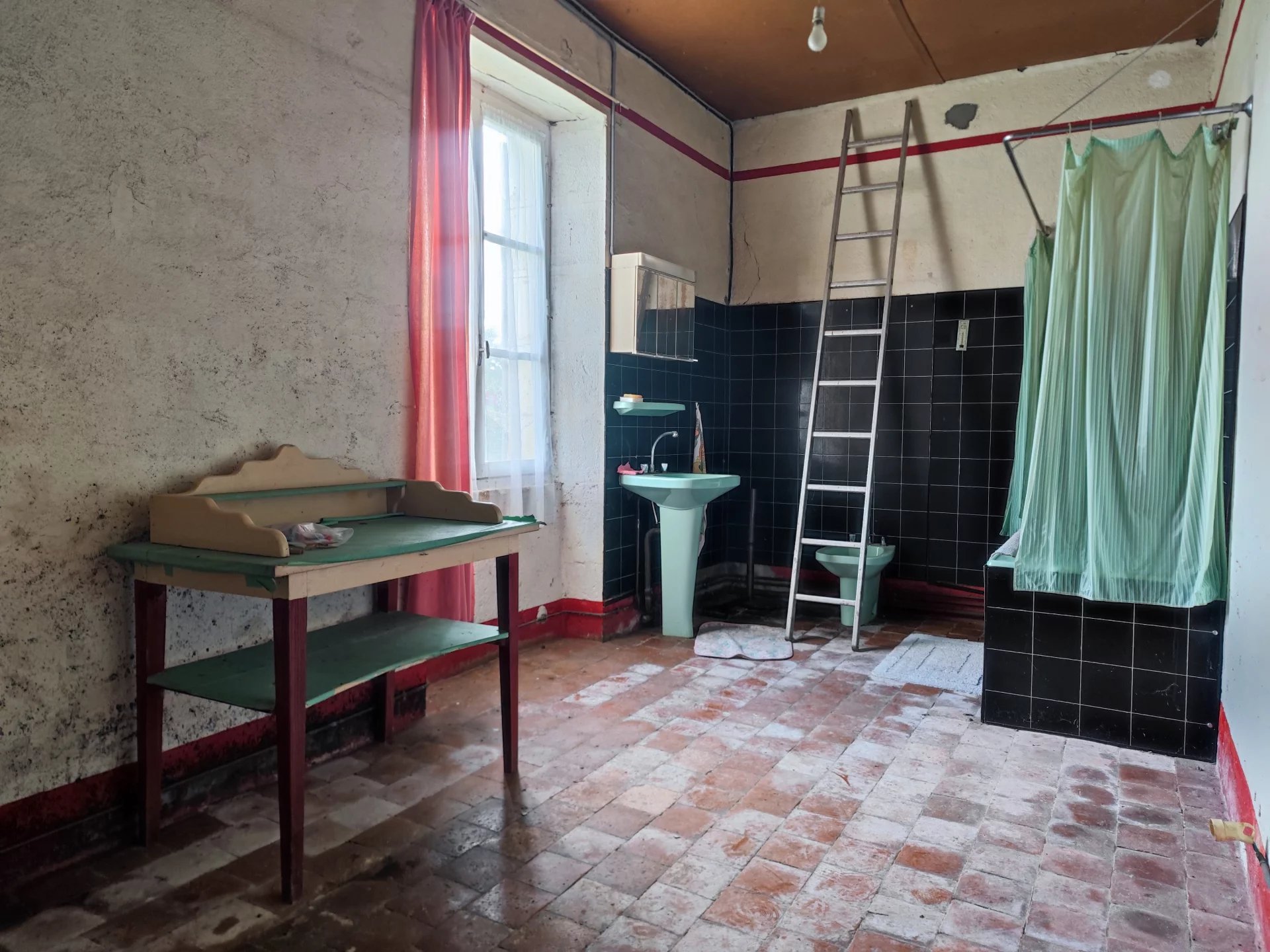 L’habitation est composée au rez-de-chaussée d’une belle entrée desservant une pièce de vie de 38m2, suivie de quatre grandes chambres de 16,5m2 chacunes, une salle de bain, un WC et une buanderie. A l’étage, un vaste grenier aménageable de 200m2 est présent. Deux caves voûtées sont également accessibles directement depuis l’intérieur de la maison.