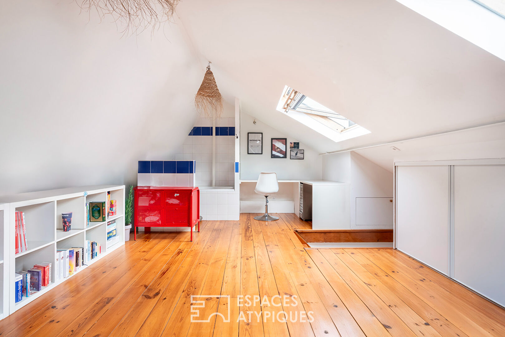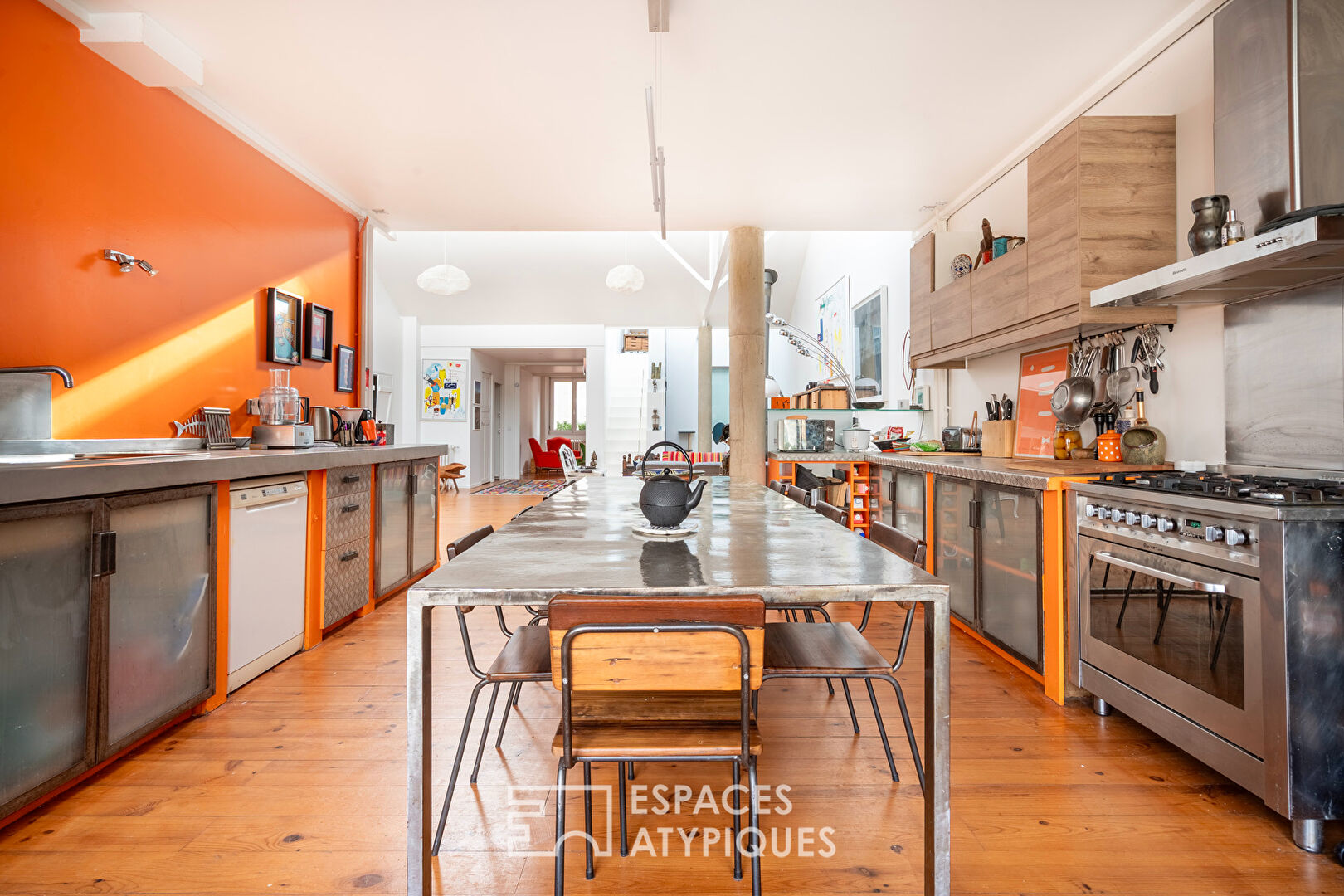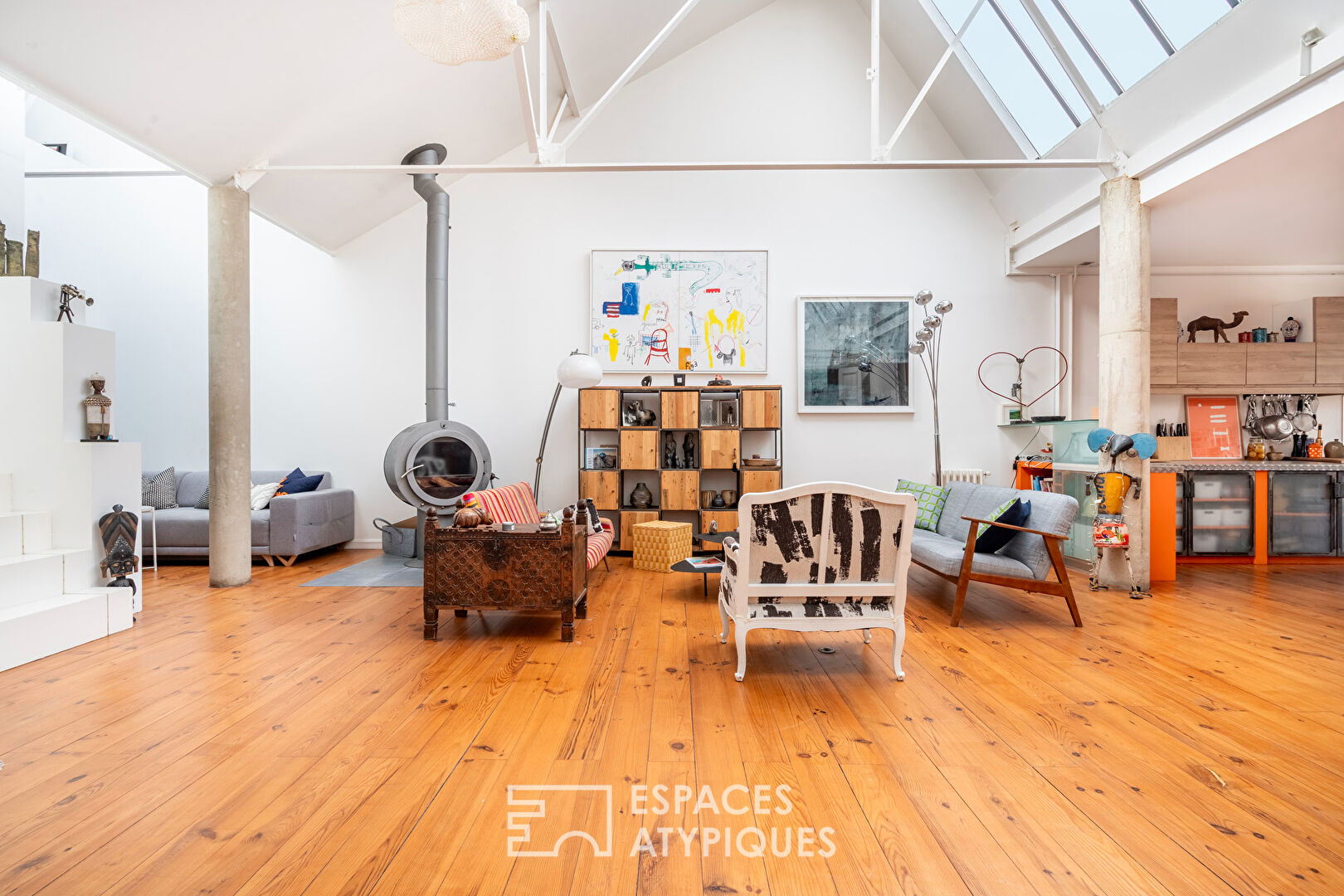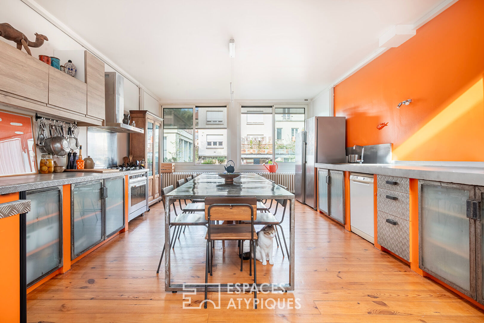 Situé à la limite de Montreuil, dans le quartier des Coutures, ce loft traversant en duplex de 253,40 m² au sol (201,80 m² Carrez), pensé pour conjuguer vie personnelle et activité professionnelle, est issu de la transformation des anciens bureaux de la marque iconique de petit électroménager. Niché au premier et dernier étage, il déploie des volumes généreux et une lumière omniprésente qui accompagne chaque instant. Dès l'entrée, la pièce de vie de plus de 80 m² capte le regard : un espace spectaculaire sous une hauteur vertigineuse, coiffé de poutres métallique témoignant du passé industriel des lieux. Baigné de lumière par une verrière zénithale et rythmé par des fenêtres de toit, l'ensemble profite d'un salon chaleureux, un séjour convivial et une cuisine dinatoire pensée comme un lieu de partage. Bois, béton et métal composent une alliance subtile et élégante, affirmant une identité résolument contemporaine. Au centre, un poêle à bois, véritable sculpture fonctionnelle, impose sa présence et sublime l'ensemble. Face à l'espace télé, une bibliothèque discrètement intégrée accompagne l'escalier qui mène à la mezzanine, conçue comme un cocon créatif avec deux espaces de travail. Côté nuit, depuis le séjour, se côtoient deux chambres de respectivement 20 m² et 22 m², une salle de bains équipée d'une baignoire, d'une douche et d'un WC ainsi qu'un dressing. L'entrée dessert également une buanderie, un WC indépendant et une troisième chambre de 23 m² dotée de sa propre salle d'eau. A l'étage, une quatrième chambre avec baignoire et coin bureau complète l'ensemble. En retrait de l'effervescence urbaine, au calme d'une cour, ce loft hors norme conjugue élégance, confort et fonctionnalité. Un bien d'expression, idéal pour ceux qui souhaitent donner sens à l'équilibre entre vie privée et activité professionnelle. Une place de stationnement et une cave complètent ce bien soumis au statut de la copropriété. Métro ligne 9 : Robespierre à 400 mètres CLASSE ENERGIE : D / CLASSE CLIMAT : D Montant moyen estimé des dépenses annuelles d'énergie pour un usage standard, établi à partir des prix de l'énergie de l'année 2021 : entre 2 070 euros et 2 860 euros Les informations sur les risques auxquels ce bien est exposé sont disponibles sur le site Géorisques : https://www.georisques.gouv.fr Contact : Daniel 06 64 01 30 43 EI - RSAC : 811 163 369 Bobigny Copropriété de 91 lots - dont 32 lots habitation. (Pas de procédure en cours). Charges annuelles : 4263 euros. Daniel Teran (EI) Agent Commercial - Numéro RSAC : 811 163 369 - Bobigny.