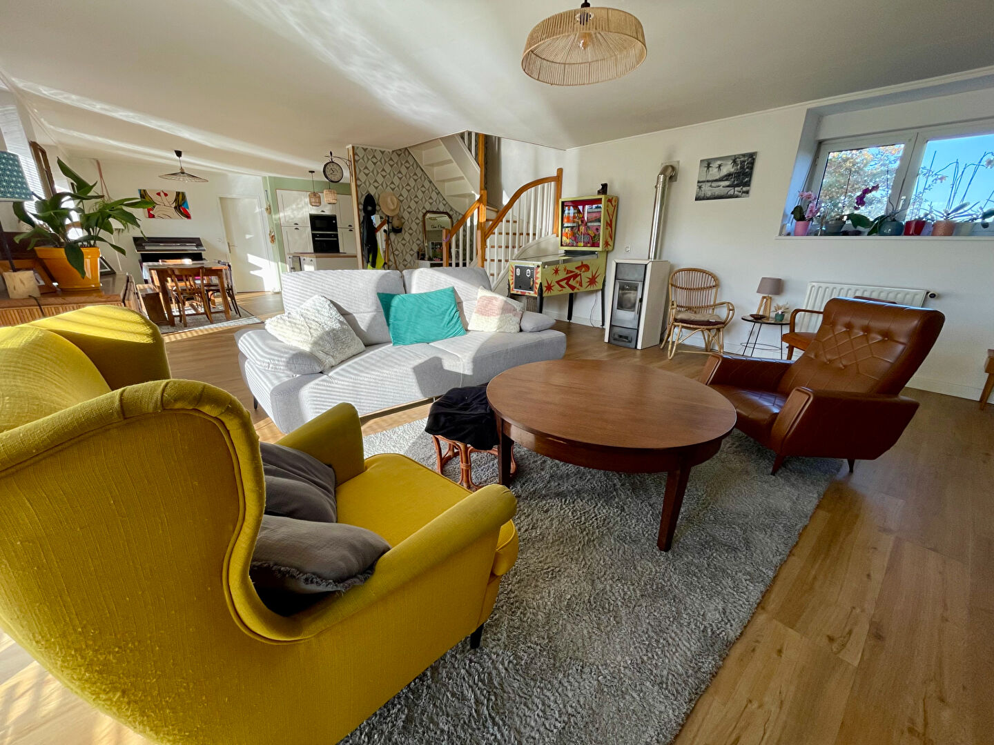EXCLUSIVITÉ : Un petit bijou à découvrir avant Noël ! Offrez-vous le charme d'une longère rénovée au coeur d'un environnement paisible. Son vaste séjour baigné de lumière, avec sa cuisine aménagée et équipée, est parfait pour accueillir famille et amis autour d'un bon repas. Au rez-de-chaussée, une chambre confortable, une buanderie et un grand bureau (avec accès indépendant possible) idéal pour télétravail ou une activité professionnelle complètent ce cocon. A l'étage, vous trouverez trois chambres, une salle de bains et une grande pièce conviviale, aujourd'hui utilisée en salle de jeux équipée d'une salle d'eau. A l'extérieur, laissez-vous séduire par le jardin sans vis-à-vis et offrant une belle exposition. Un garage vient compléter cet ensemble. Une maison pleine de charme où il fait bon vivre, été comme hiver ! (4.00 % honoraires TTC à la charge de l'acquéreur.)