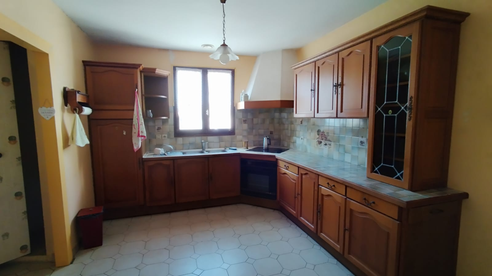Bleu Horizon Cabinet Immobilier vous propose au coeur du bourg, à proximité immédiate de toutes les commodités cette maison édifiée en 1987 composée comme suit : une entrée, un salon-séjour lumineux, une cuisine indépendante. La partie nuit dispose d'un couloir distribuant deux chambres, une salle de bains et WC séparés. Son garage d'environ 40 m2 présente un véritable potentiel d'agrandissement. Des travaux sont à prévoir afin de lui redonner une seconde jeunesse. (4.55 % honoraires TTC à la charge de l'acquéreur.)