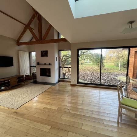 Magnifique Maison de campagne, spacieuse et lumineuse de 186 m2 habitables, sur un terrain clos et arboré de 2400 m2, à 25 mns de la Baie de Somme proche de l' A28.