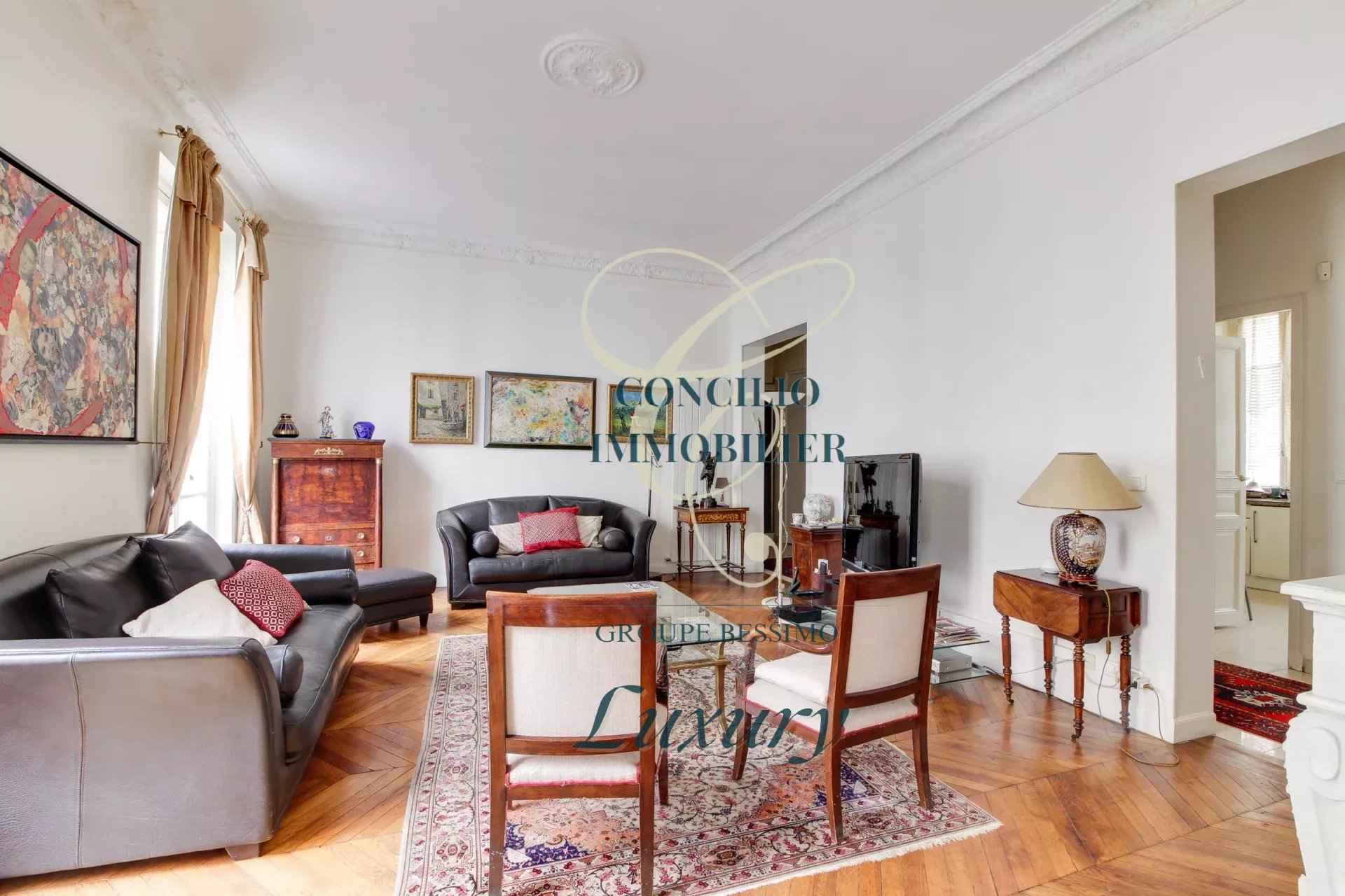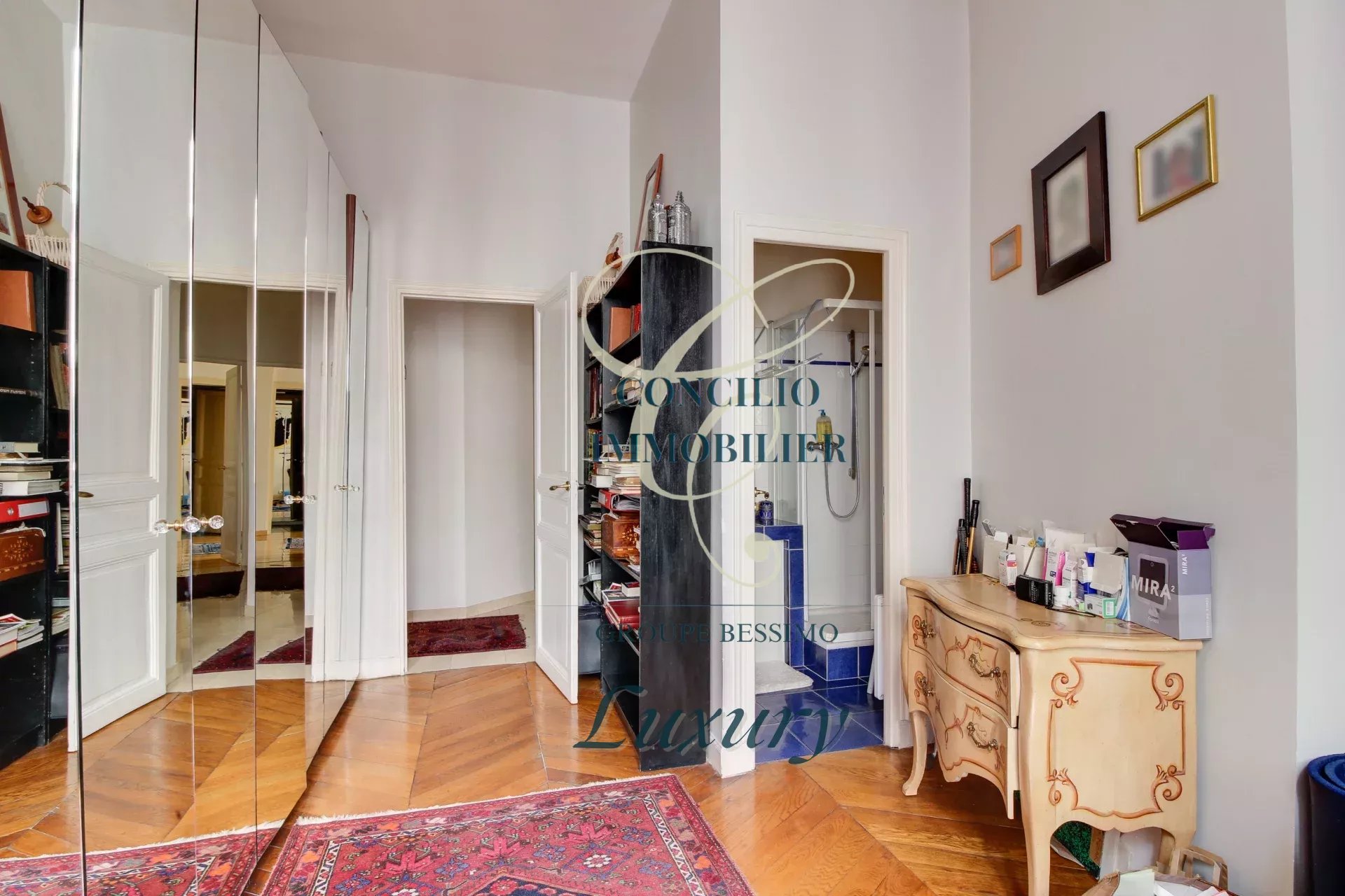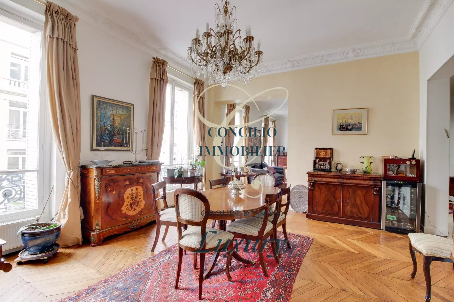 Au troisième étage avec ascenseur d’un très bel immeuble ancien récemment ravalé, appartement de 165 m² alliant élégance et authenticité. Une entrée dessert un double séjour aux volumes généreux, sublimé par un parquet en point de Hongrie, des moulures, des cheminées et une belle hauteur sous plafond. La partie nuit comprend trois chambres, dont une avec accès indépendant. Deux chambres disposent chacune de leur salle d’eau, complétées par une salle de bains et un dressing. Grande cuisine séparée entièrement aménagée. Une cave complète le bien. Possibilité de louer un parking à proximité immédiate. Un appartement lumineux, au charme haussmannien préservé, idéalement situé au cœur du 8ᵉ arrondissement.