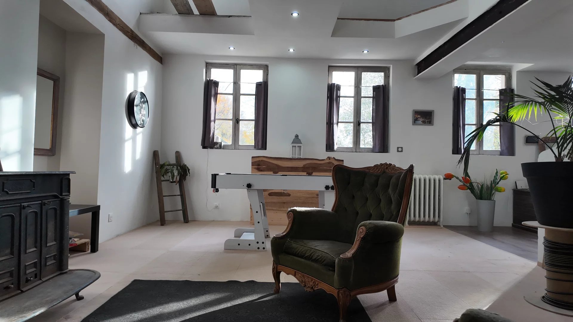 La rénovation respecte l’âme du lieu tout en y insufflant un esprit chaleureux et moderne. Dès l’entrée, la lumière naturelle sublime les matériaux nobles. La pièce de vie ouverte accueille une cuisine moderne, une salle à manger conviviale et un salon aux lignes authentiques, parfait pour recevoir ou se retrouver en famille.