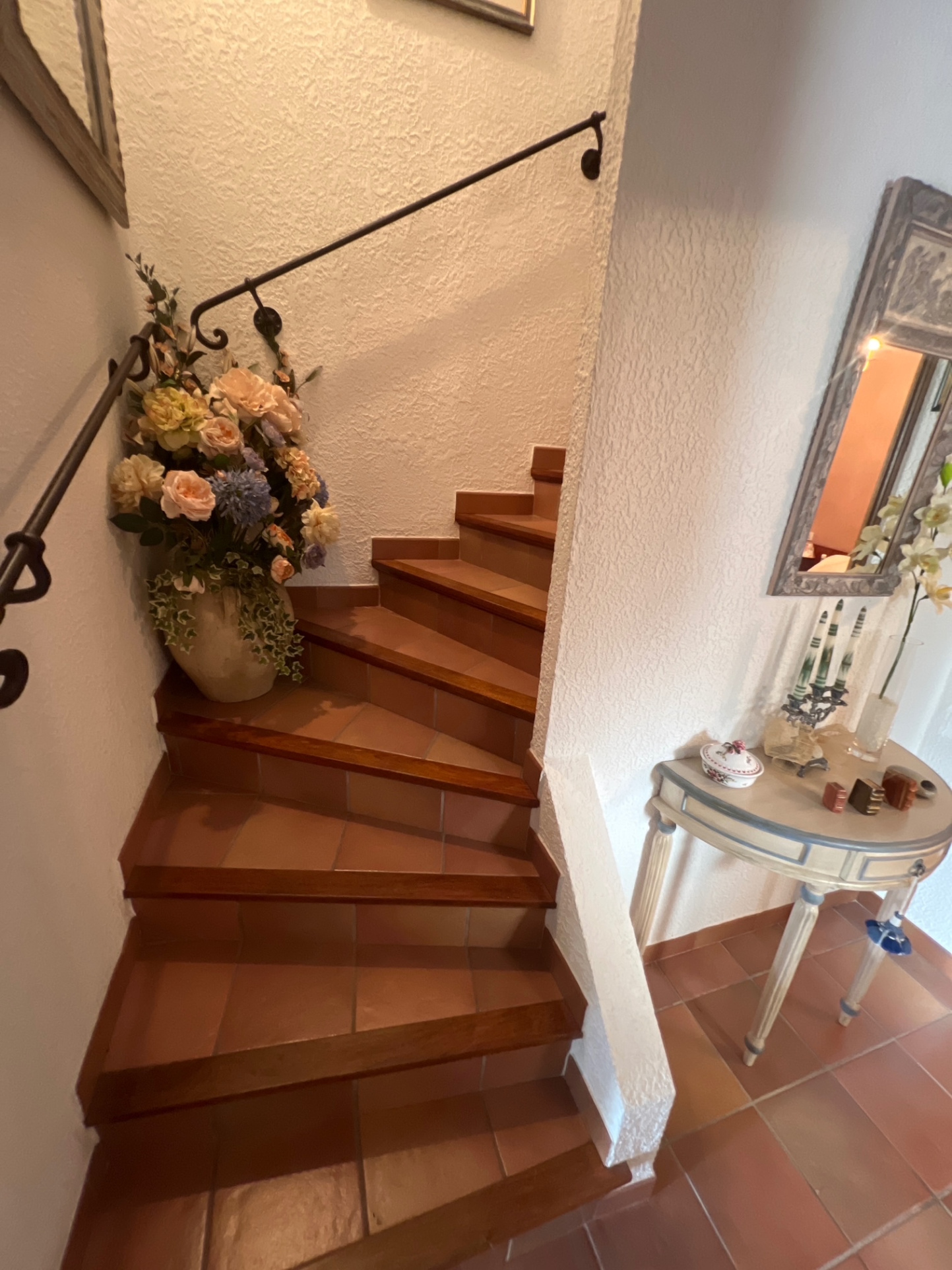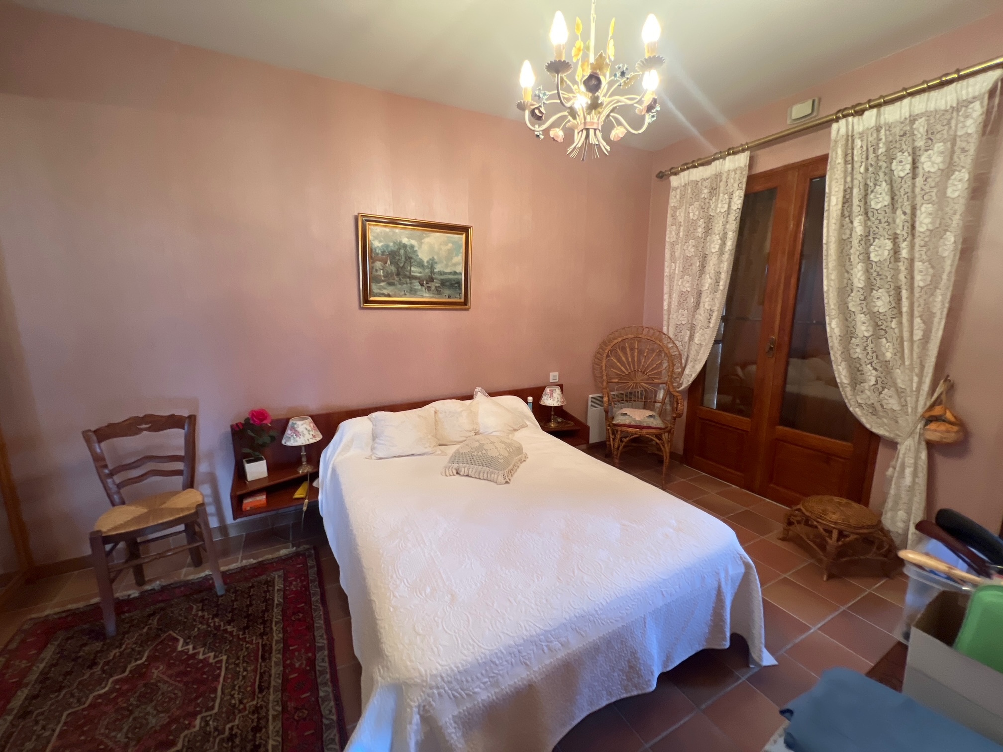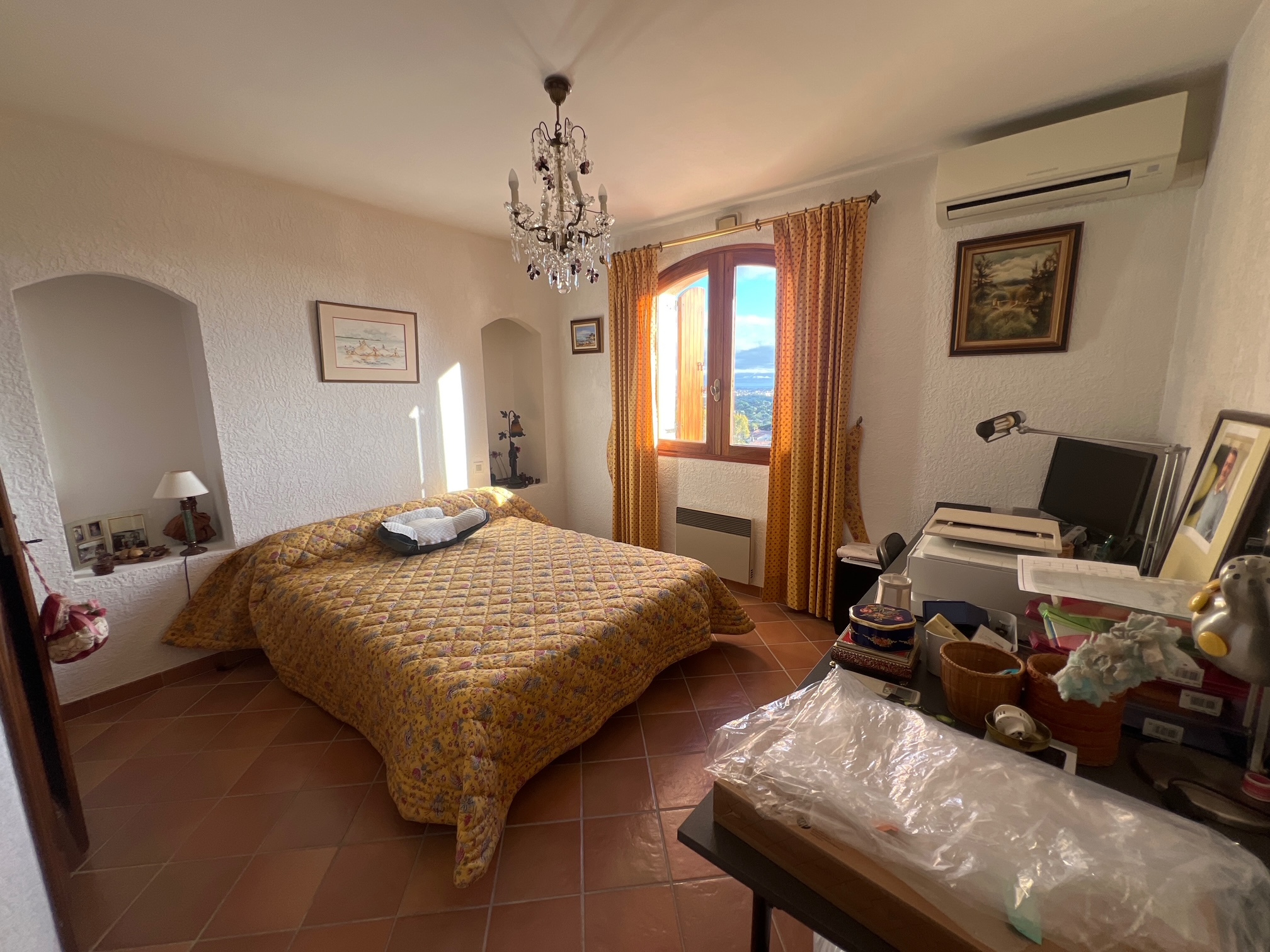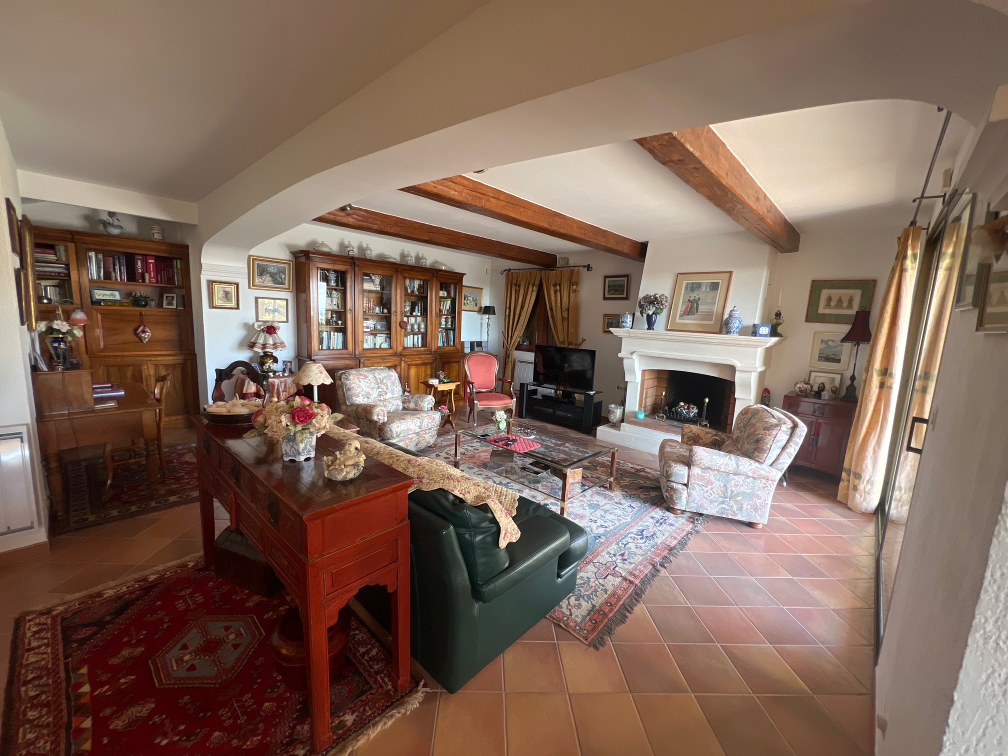 OLLIOULES- Située sur les hauteurs avec vue dominante et mer, belle villa construction traditionnelle avec prestations de qualité. On accède à cette maison par une entrée qui dessert salle à manger/salon avec cheminée de 49 m2, toilettes, cuisine aménagée, buanderie. En demi-étage suite parentale avec sa salle d'eau rénovée, wc, placards, au 1er étage deux chambres, salle d'eau, wc, placards- En rez de jardin une 4ème chambre avec sa terrasse est aussi équipée d'une salle d'eau avec wc, cellier- Grande cuisine d'été de 38 m2- Garage 34 m2- Cave- Terrasse- Piscine 9 X 4. Le tout sur un terrain paysagé de 1960 m2