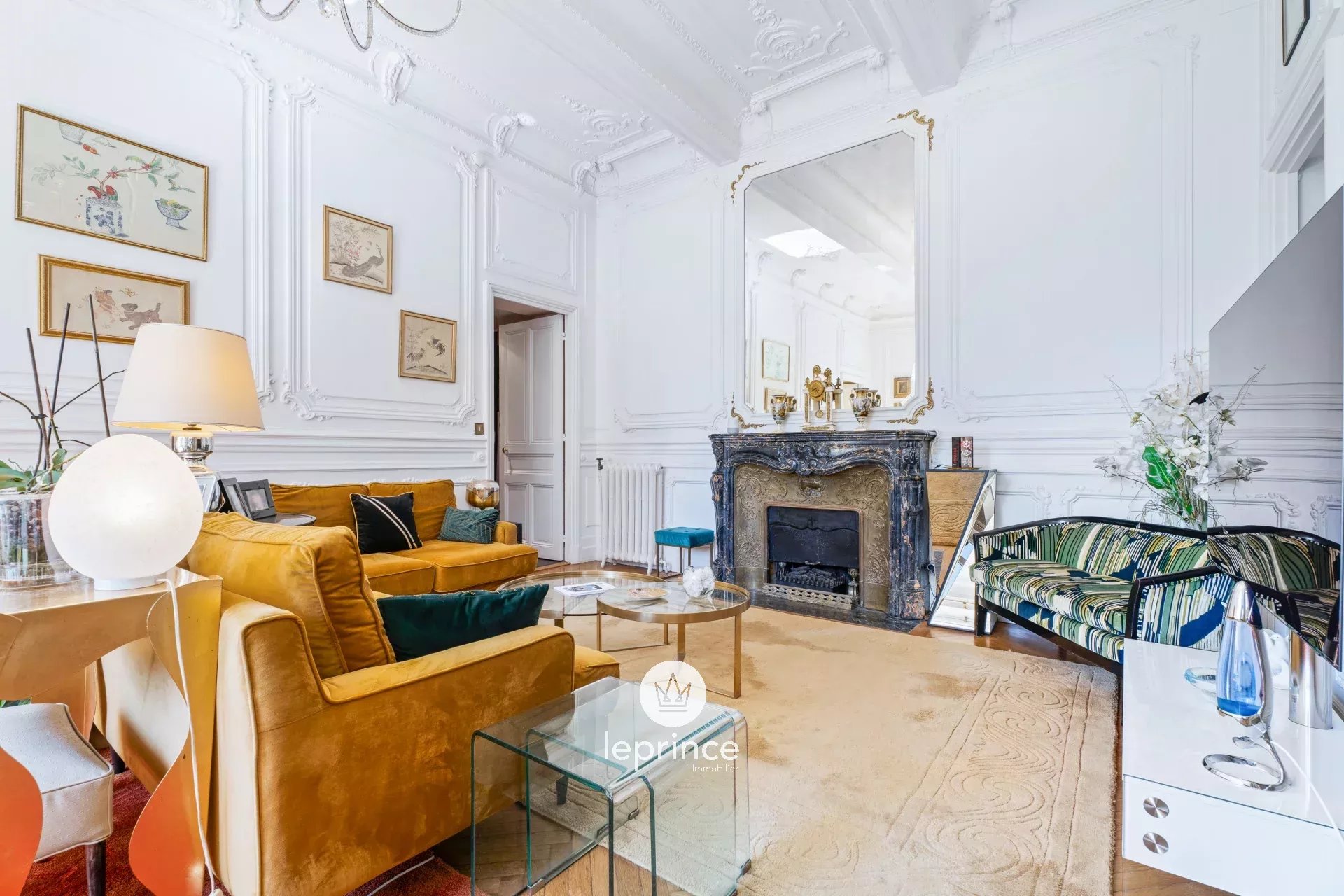 Fin dall’ingresso, il fascino si percepisce: luminoso soggiorno di 35 m² valorizzato da un’altezza del soffitto di oltre 4 metri, parquet antico, raffinate modanature, mensole d’epoca e un maestoso camino.