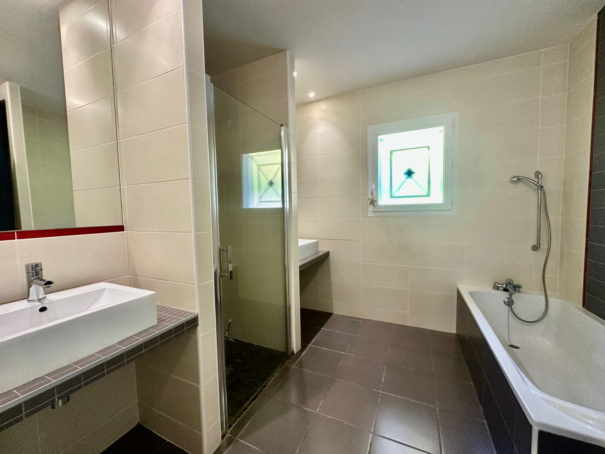 Elle se compose d'un espace de vie lumineux avec salon-séjour ouvert sur une cuisine équipée, un cellier, trois chambres, une salle de bain avec baignoire, douche italienne et double vasque et un chauffage par pompe à chaleur pour un confort optimal.