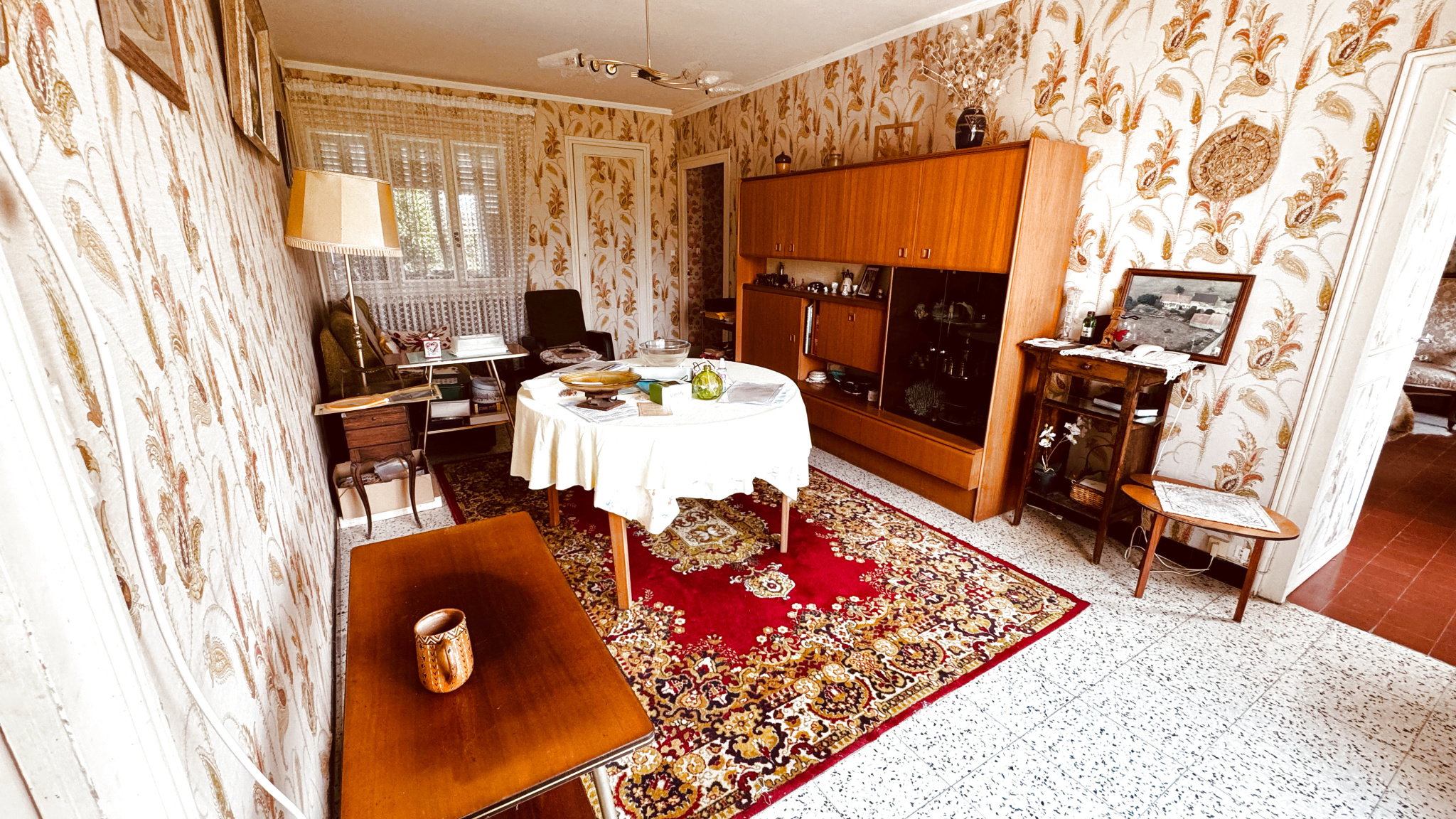 Les sols en tomettes et les poutres apparentes confèrent à l'ensemble une atmosphère chaleureuse et authentique.