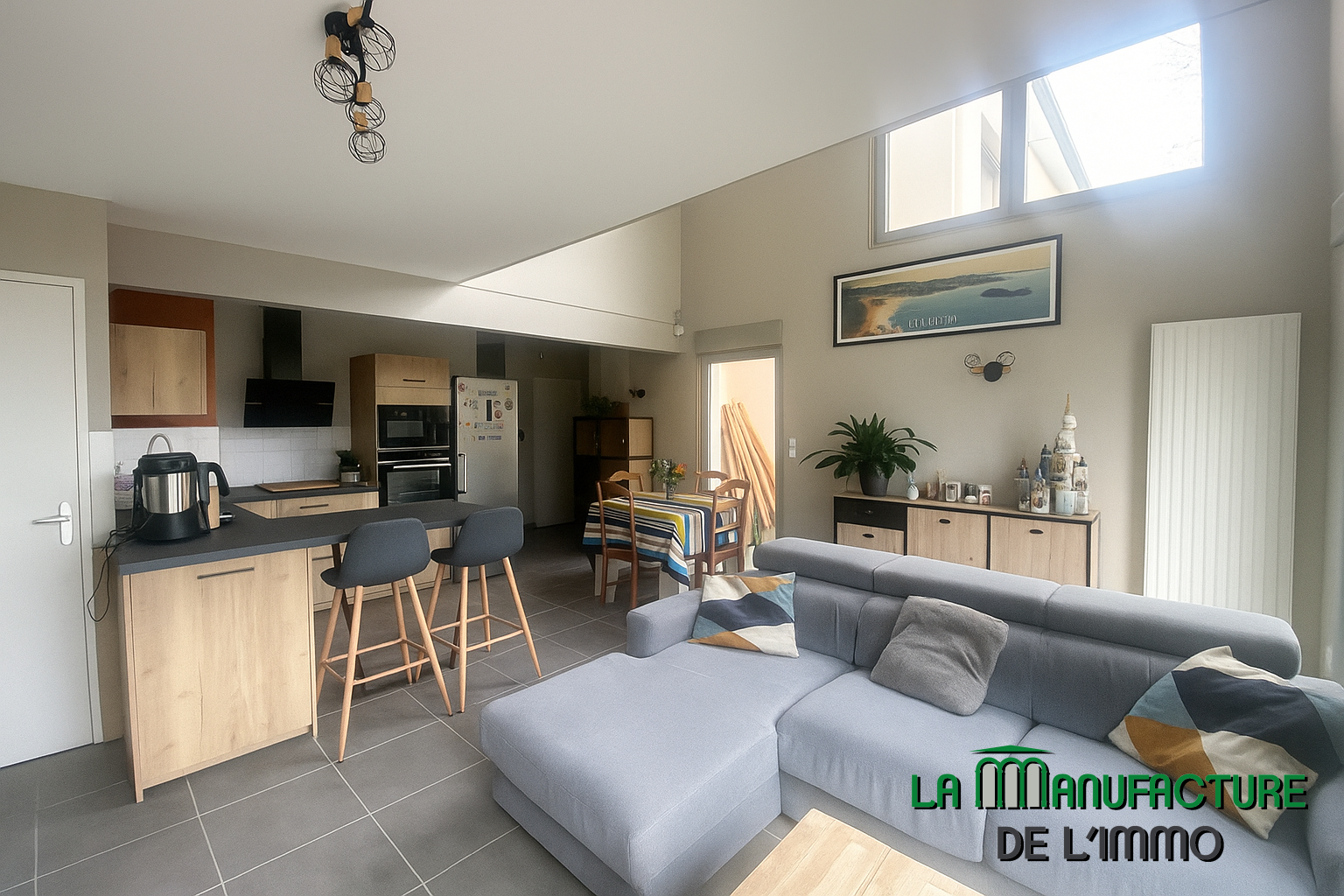 BELLE MAISON LUMINEUSE, MITOYENNE PAR UN COTE HORS LOTISSEMENT CONSTRUITE EN 2020 (normes RT2012) DE TYPE F4 DE 90,58M2 CARREZ.