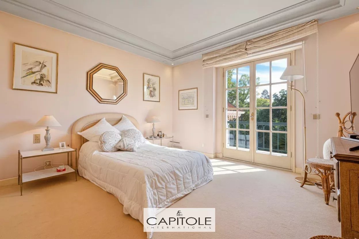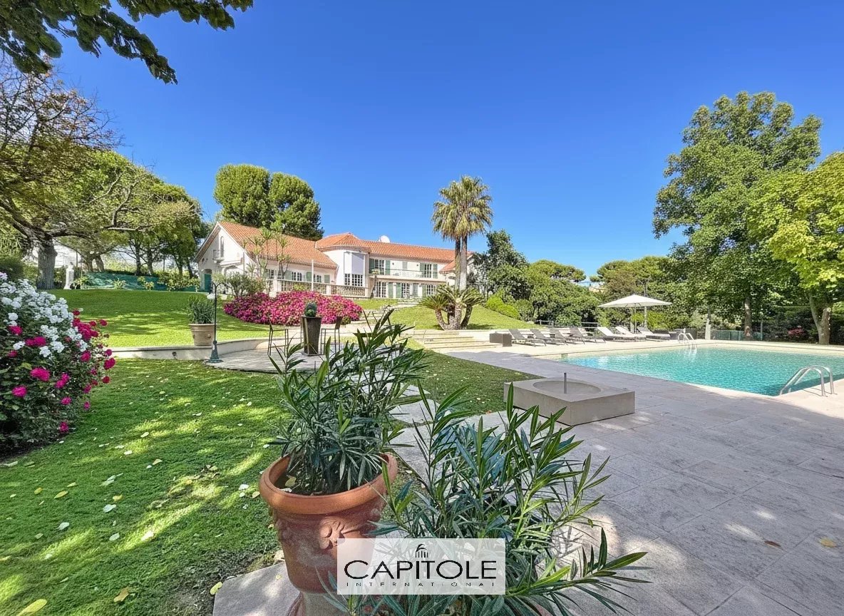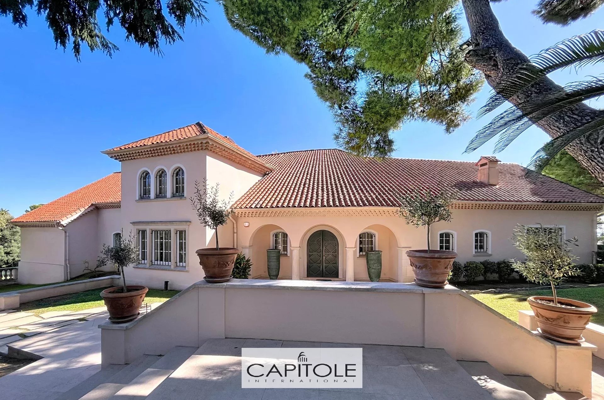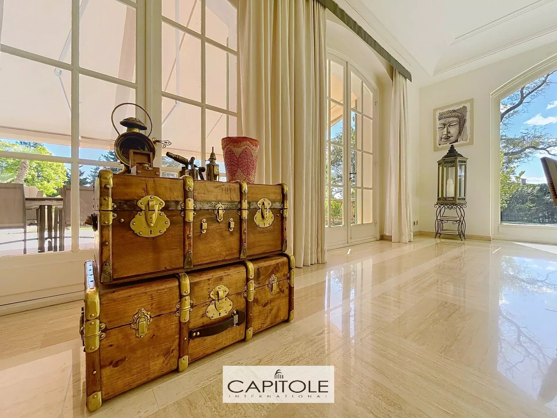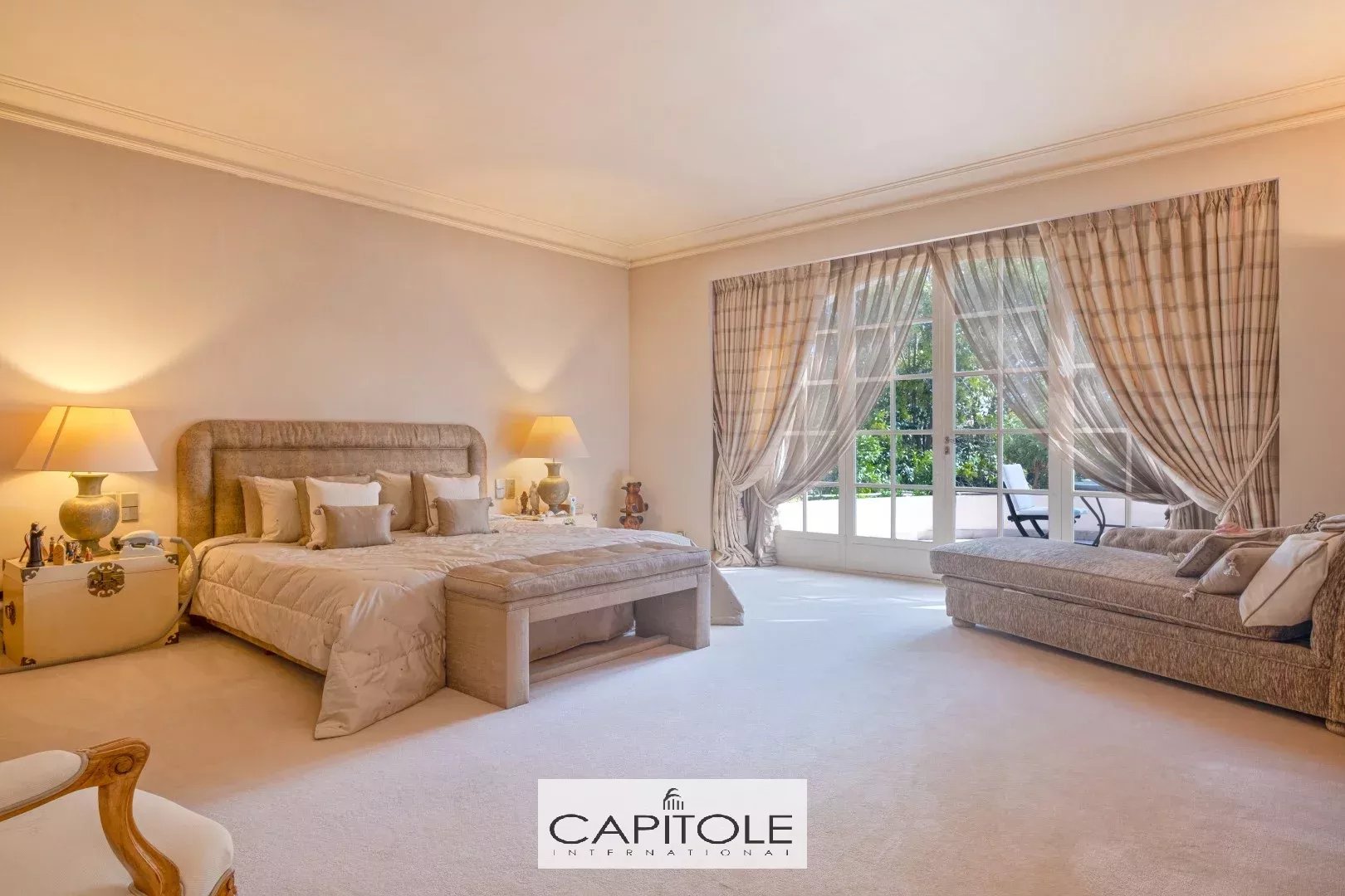 Nichée sur un terrain paysager de plus de 7 300 m², cette élégante propriété de 620 m² offre un cadre de vie d’exception. Pensée aussi bien pour une résidence principale que secondaire, elle séduit par ses volumes généreux, sa luminosité et son atmosphère raffinée. Au rez-de-chaussée, un vaste espace de réception avec hauts plafonds réunit hall d’entrée, salon, séjour et salle à manger, ouverts sur l’extérieur grâce à de larges baies vitrées laissant entrer la lumière naturelle et offrant un aperçu mer. La suite parentale, véritable appartement privé de près de 70 m², dispose de son propre salon, d’un bureau, d’un dressing et d’une terrasse. À l’étage, deux suites parentales avec salles de bains et dressings, deux chambres avec salle de bain commune et balcon vue mer, ainsi qu’une chambre d’appoint indépendante avec salle de douche privative accueillent famille et invités. En rez-de-jardin, la villa propose un appartement pour le gardien, un logement de service, plusieurs chambres pour le personnel, un bureau, une chambre froide et une buanderie. Un garage double et de nombreuses places de stationnement complètent l’ensemble. Le parc, pensé pour la détente et la convivialité, dévoile une piscine avec pool house, un bar lounge, ainsi qu’un terrain de tennis. Un véritable havre de paix au charme unique. Réf: MM1962VM Informations sur les risques disponibles sur le site Géorisques: https://georisques.gouv.fr