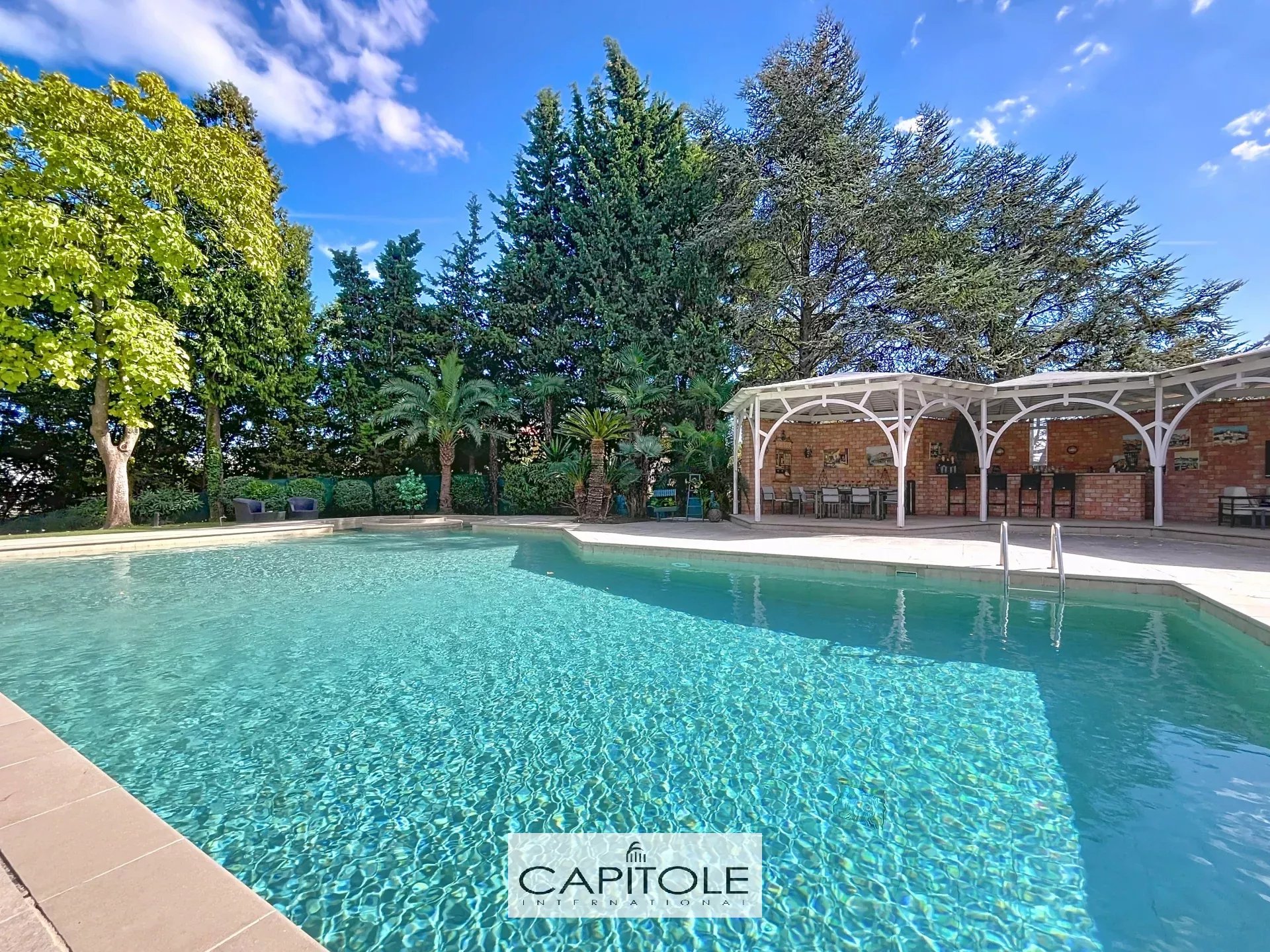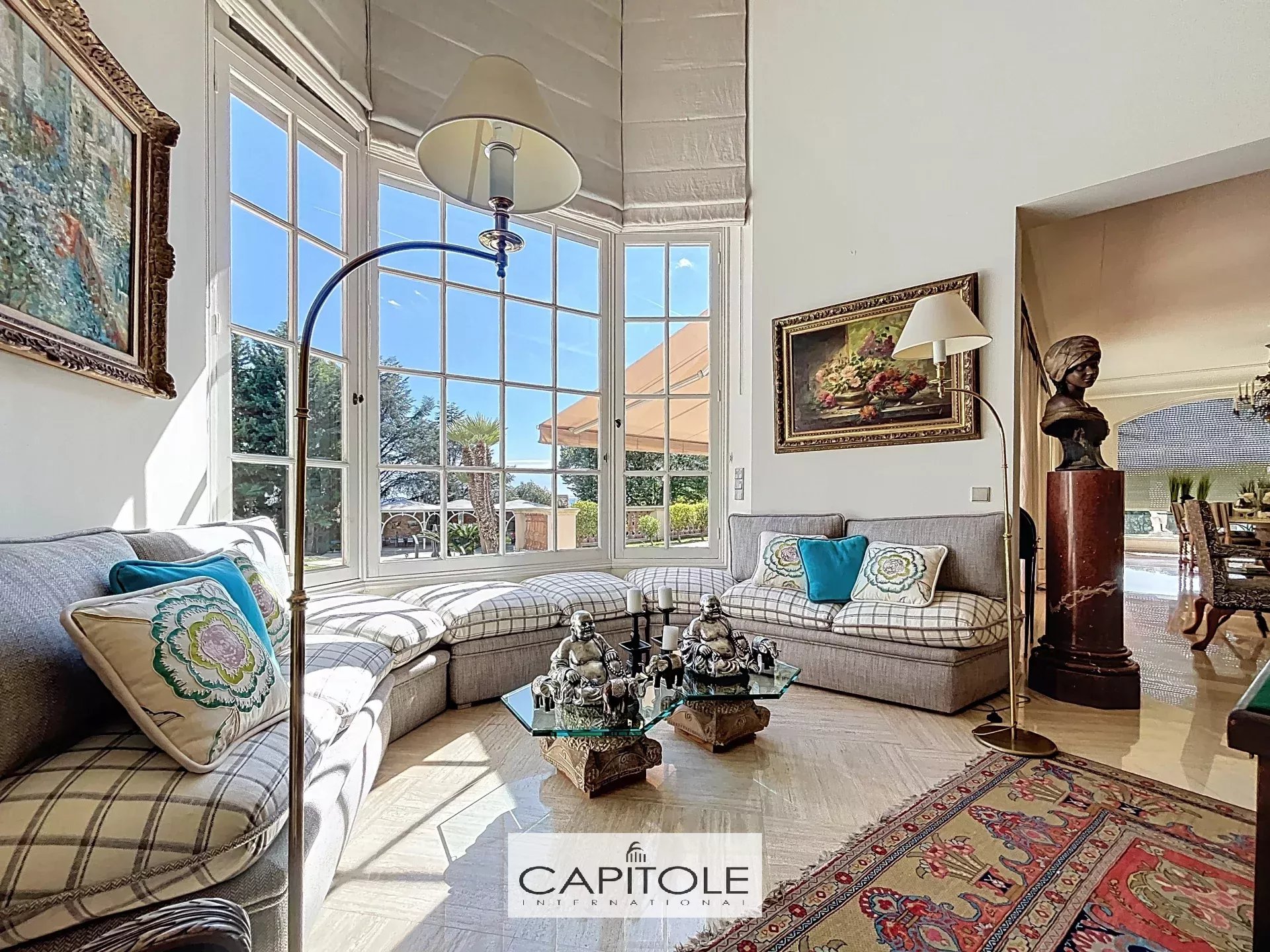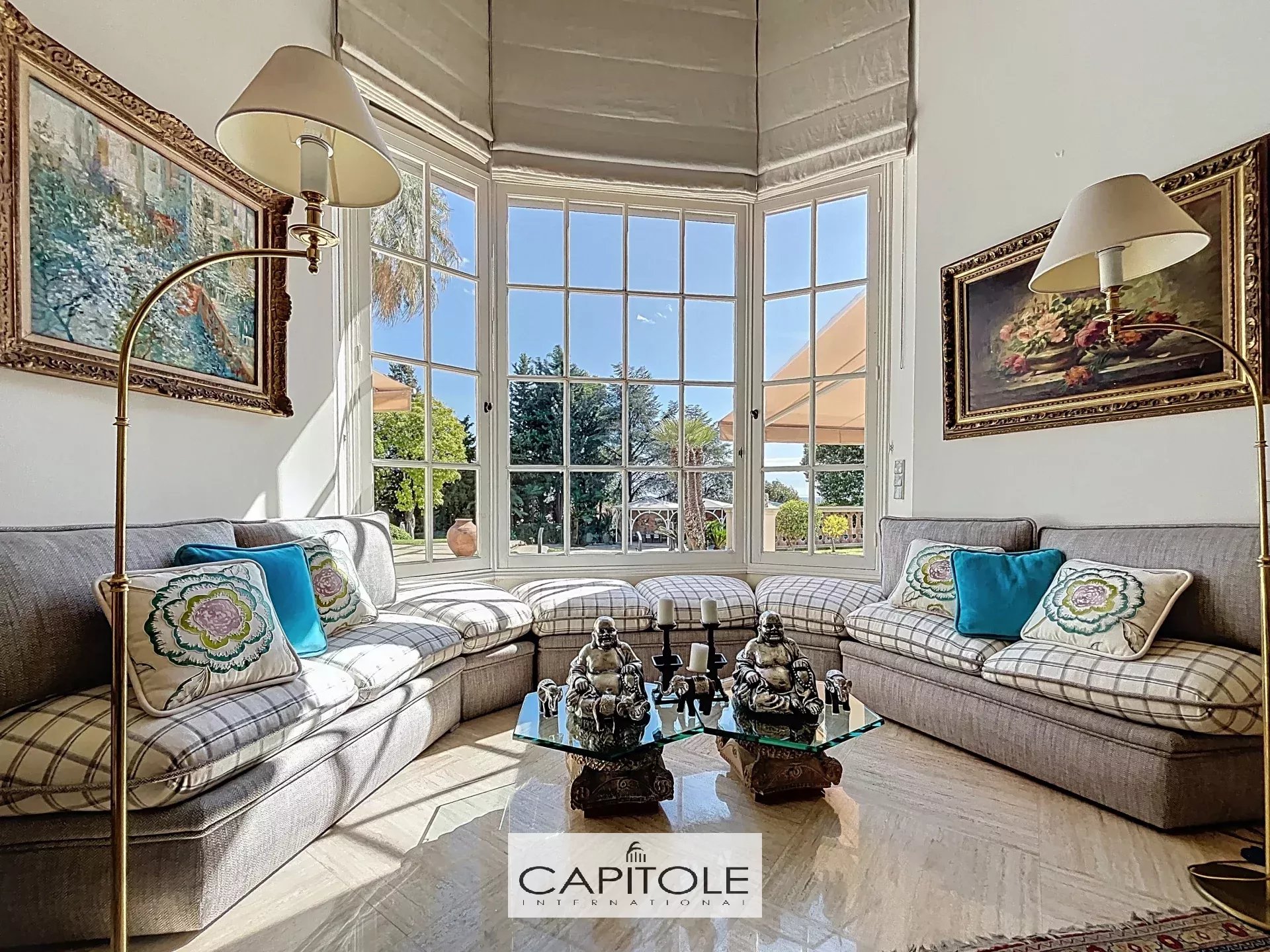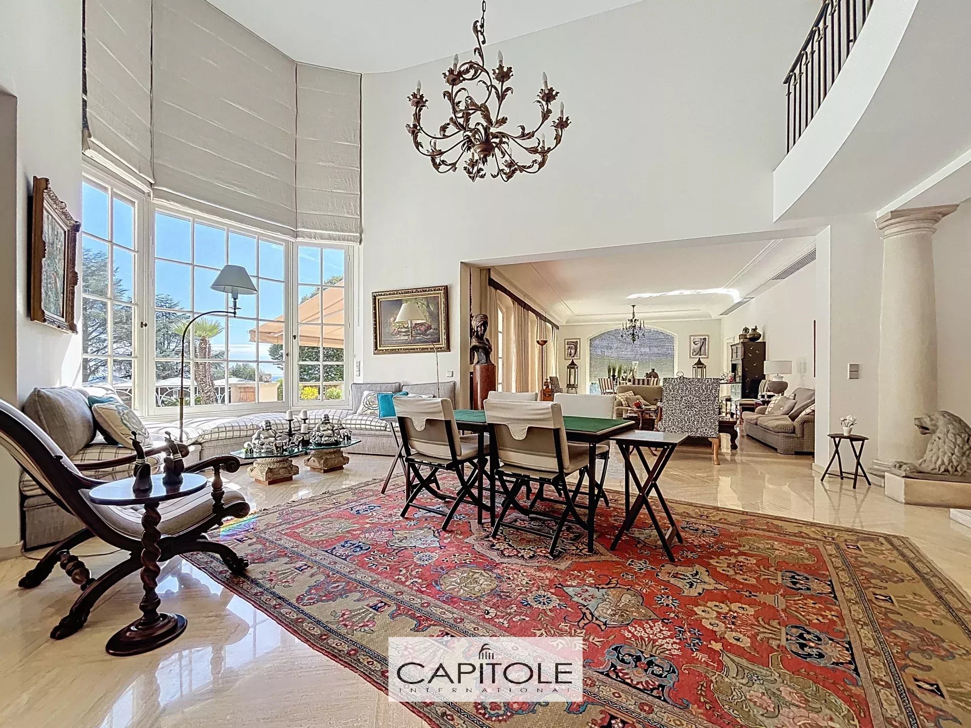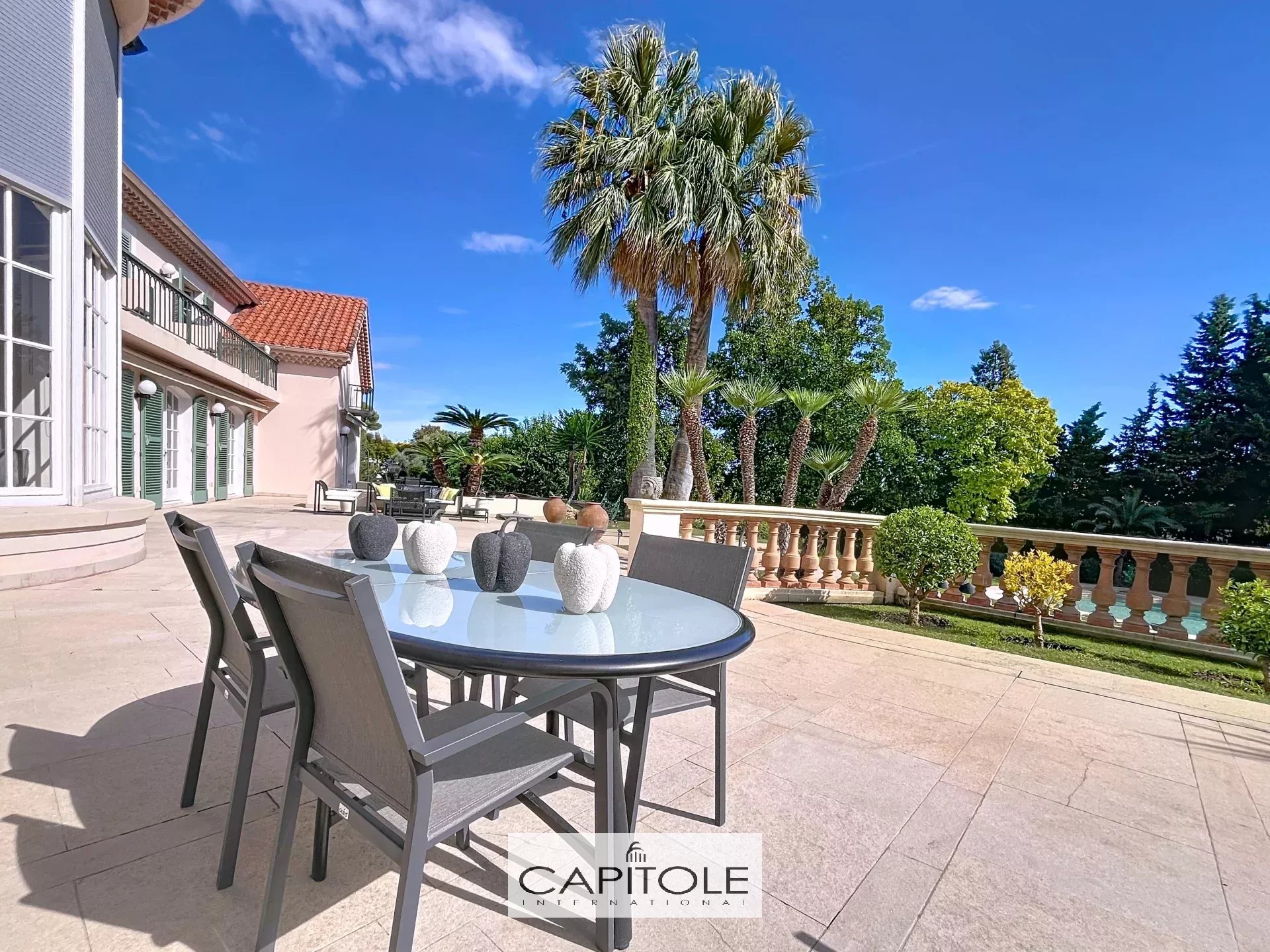 Nichée sur un terrain paysager de plus de 7 300 m², cette élégante propriété de 620 m² offre un cadre de vie d’exception. Pensée aussi bien pour une résidence principale que secondaire, elle séduit par ses volumes généreux, sa luminosité et son atmosphère raffinée. Au rez-de-chaussée, un vaste espace de réception avec hauts plafonds réunit hall d’entrée, salon, séjour et salle à manger, ouverts sur l’extérieur grâce à de larges baies vitrées laissant entrer la lumière naturelle et offrant un aperçu mer. La suite parentale, véritable appartement privé de près de 70 m², dispose de son propre salon, d’un bureau, d’un dressing et d’une terrasse. À l’étage, deux suites parentales avec salles de bains et dressings, deux chambres avec salle de bain commune et balcon vue mer, ainsi qu’une chambre d’appoint indépendante avec salle de douche privative accueillent famille et invités. En rez-de-jardin, la villa propose un appartement pour le gardien, un logement de service, plusieurs chambres pour le personnel, un bureau, une chambre froide et une buanderie. Un garage double et de nombreuses places de stationnement complètent l’ensemble. Le parc, pensé pour la détente et la convivialité, dévoile une piscine avec pool house, un bar lounge, ainsi qu’un terrain de tennis. Un véritable havre de paix au charme unique. Réf: MM1962VM Informations sur les risques disponibles sur le site Géorisques: https://georisques.gouv.fr