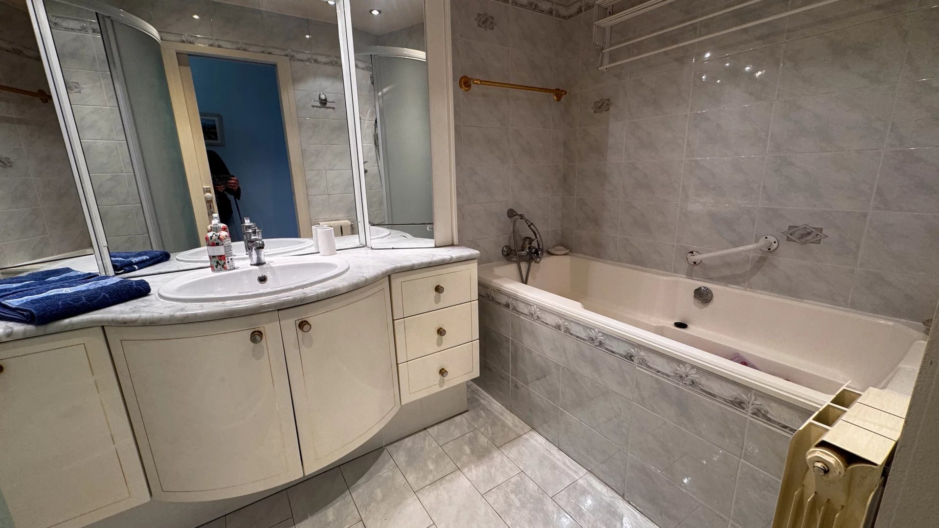 Trilocale di 66,73 m², situato in un contesto tranquillo e verdeggiante. È composto da un luminoso soggiorno, una spaziosa camera da letto e una cucina separata. Necessita di aggiornamento. Residenza sicura con citofono, piscina, campo da tennis e giardino condominiale. Un ambiente piacevole, vicino a tutti i servizi. Ampio parcheggio condominiale nel residence.