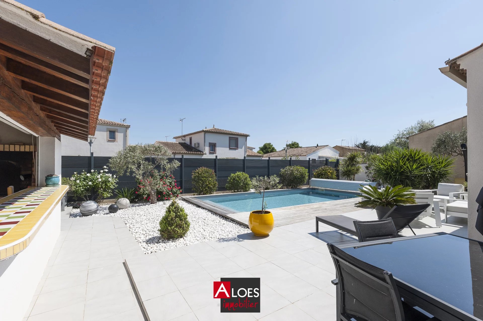 Découvrez cette magnifique maison de plain-pied située dans un secteur calme et recherché d'Aigues-Mortes. Entièrement aménagée avec goût et des matériaux de qualité, cette propriété ne nécessite aucun travaux.