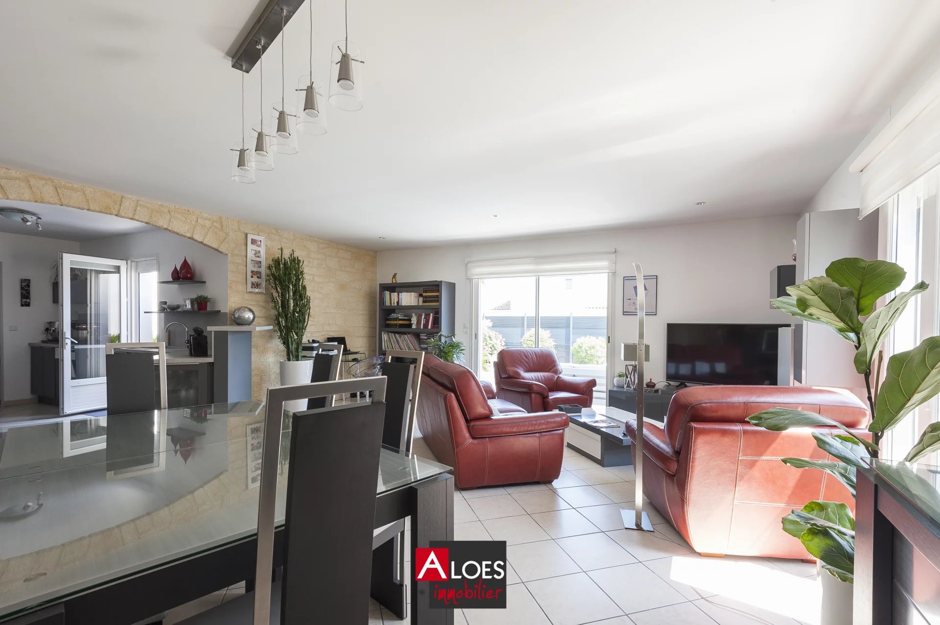 L'entrée vous mène à une vaste pièce de vie lumineuse, agrémentée d'une cuisine ouverte très bien équipée, idéale pour vos moments en famille ou entre amis.