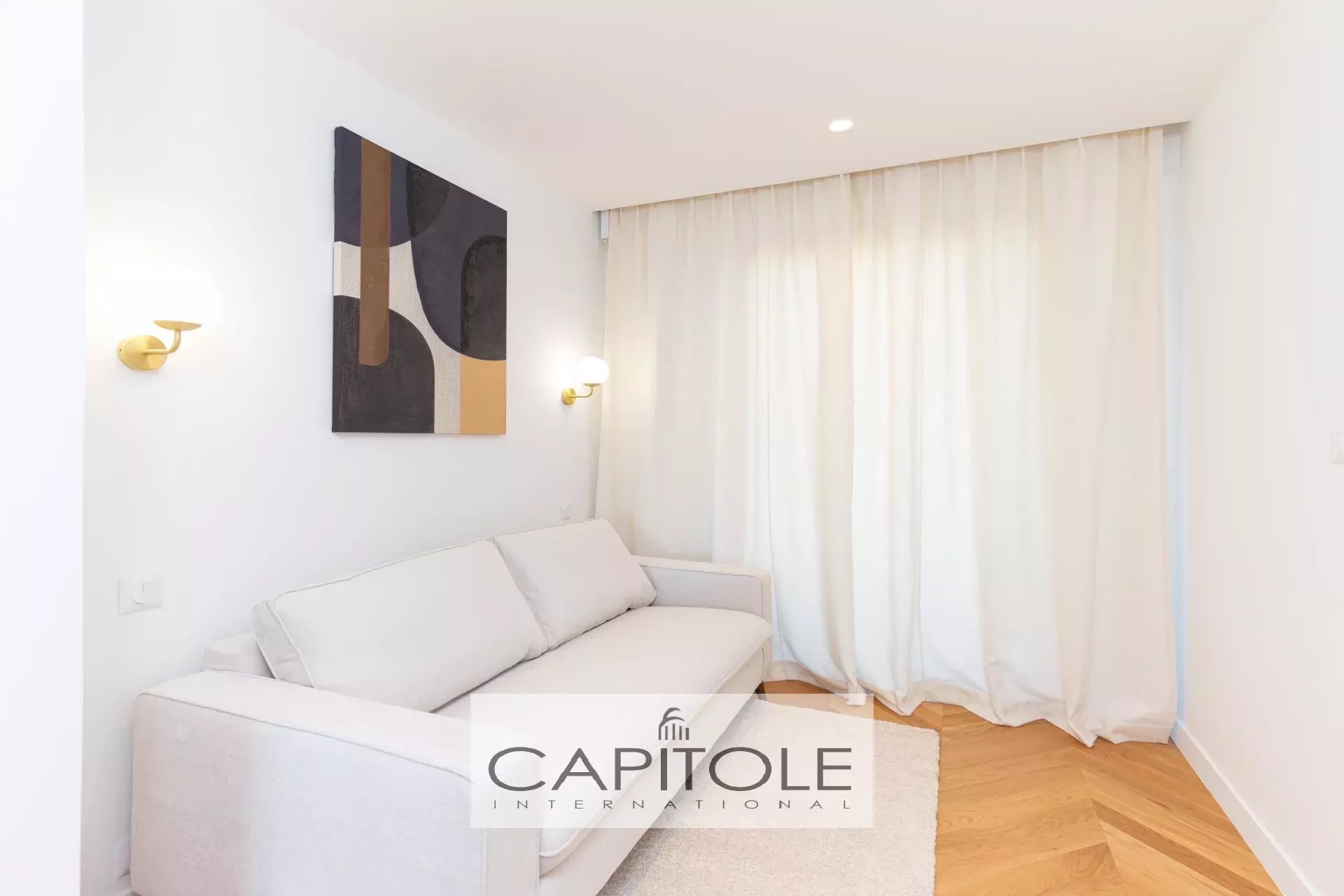 L'appartement se compose d'un hall d'entrée, d'un séjour avec cuisine équipée neuve, d'une vaste salle de bains avec wc, un wc indépendant, une chambre en suite avec grand dressing et salle d'eau et une 2ème chambre. Les deux espaces nuit sortent sur un balcon.