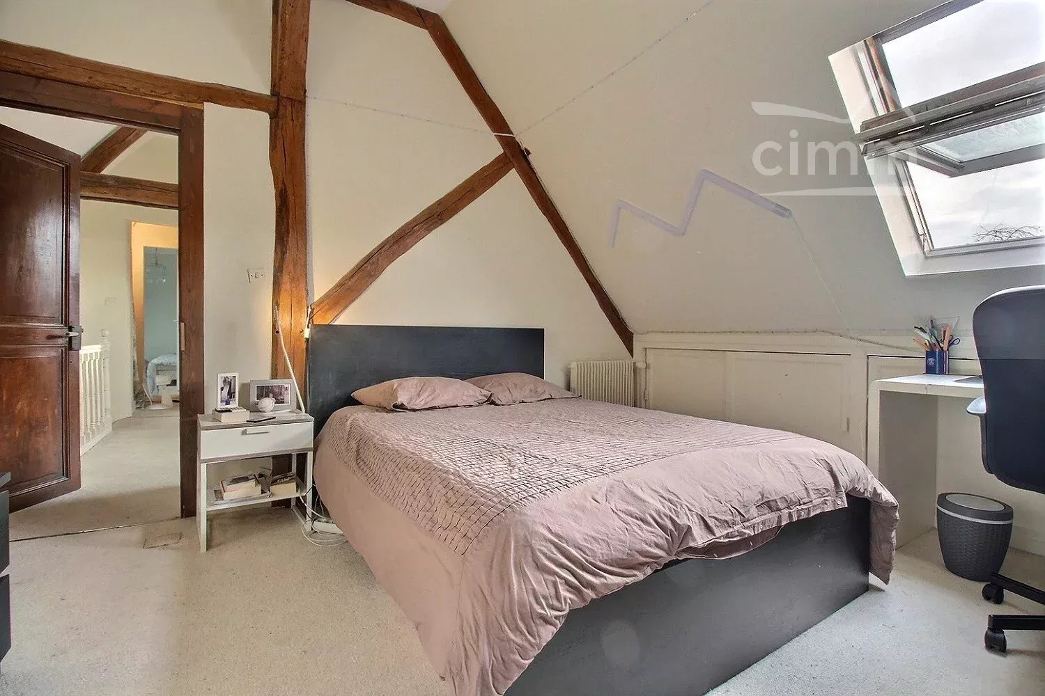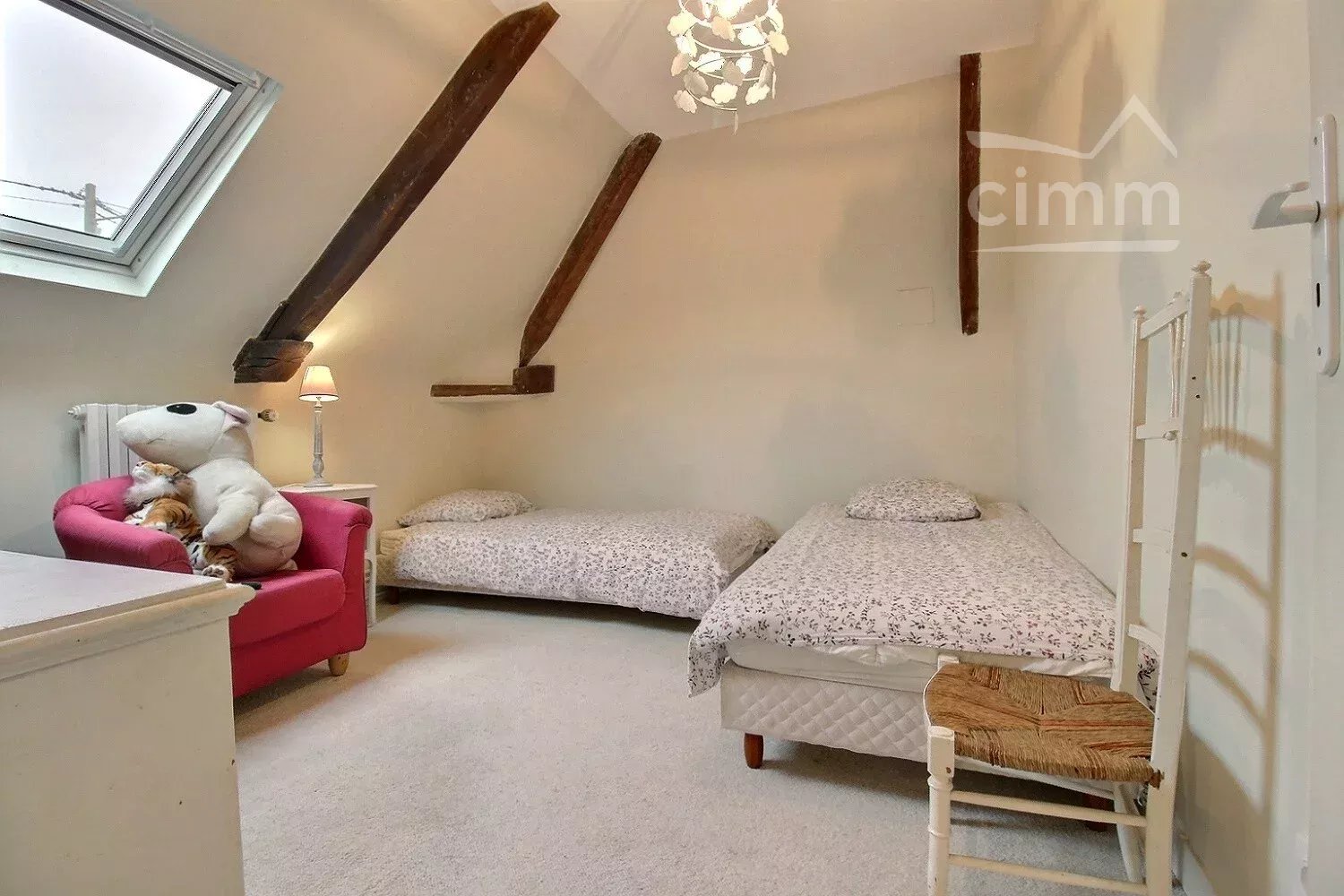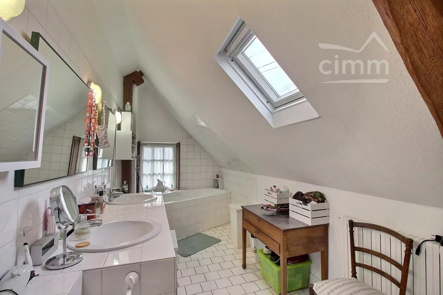 A l’étage une mezzanine d’accueil de 11.5m² dessert 3 chambres de respectivement 16m², 9.2m² et 12.3m² avec des espaces de sous-pentes supplémentaires et des rangements. L’étage possède également un dressing, une salle de bain et un WC.