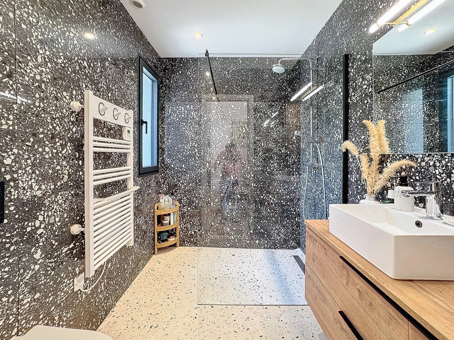 RARO - Casa completamente ristrutturata, Petit Juas, splendido giardino esposto a sud Nel ricercato quartiere di Petit Juas, a meno di 15 minuti a piedi dalle spiagge e dal Palais des Festivals, in assoluta tranquillità, siamo orgogliosi di offrirvi un'ESCLUSIVA casa di 115 m² su un terreno di 350 m² esposto a sud con piscina fuori terra. Questa proprietà unica incarna il perfetto connubio tra modernità e fascino provenzale. Ricostruita nel 2023 secondo uno standard molto elevato, offre caratteristiche di alta gamma (isolamento, doppi vetri in alluminio, aria condizionata), garantendo comfort e risparmio energetico. Vero e proprio "coup de coeur", si compone di un ampio e luminoso soggiorno-sala da pranzo che si apre su una terrazza esposta a sud, di una cucina a vista attrezzata che si estende su un patio, di uno studio e di una toilette separata. Al piano superiore si trovano una suite padronale con bagno con doccia, due ampie camere da letto, un bagno e una toilette separata. Parcheggio interrato disponibile in affitto nelle vicinanze. Ideale come pied-à-terre o per famiglie alla ricerca di un ambiente tranquillo, questa casa può anche fornire un eccellente reddito da locazione stagionale in estate o durante i congressi. Le informazioni sui rischi a cui è esposto questo immobile sono disponibili sul sito web di Géorisques.