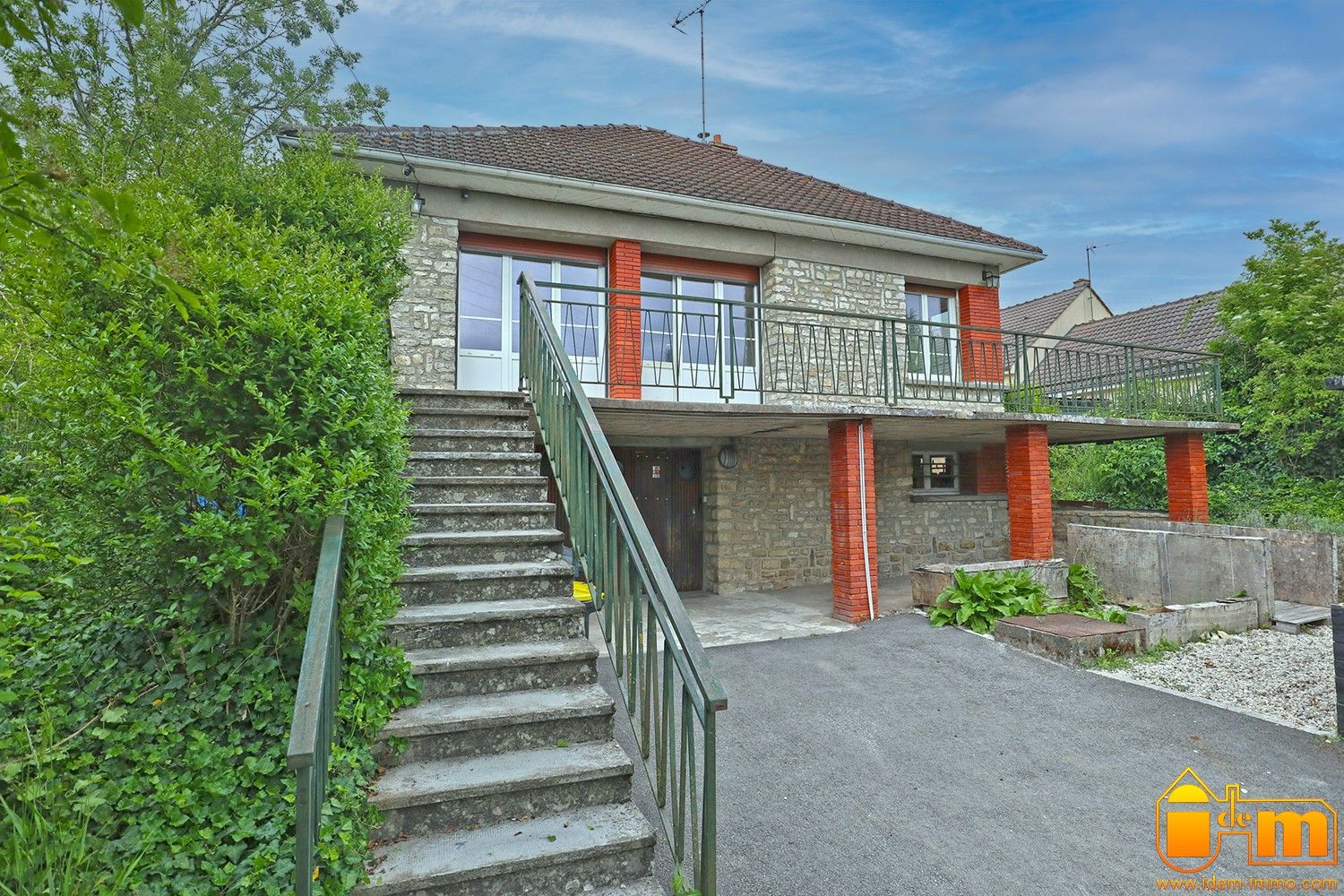 20 mn sud Étampes, proche Méréville, en plein cur d'un village de la vallée de la Juine avec commerces et écoles (maternelles et primaires), sur 790 m² de terrain clos grillagé, un pavillon en pierres d'environ 96 m² habitables édifié sur sous-sol total dans les années 1960 :
