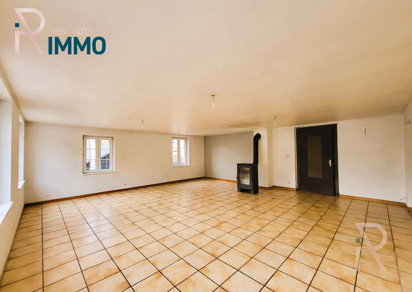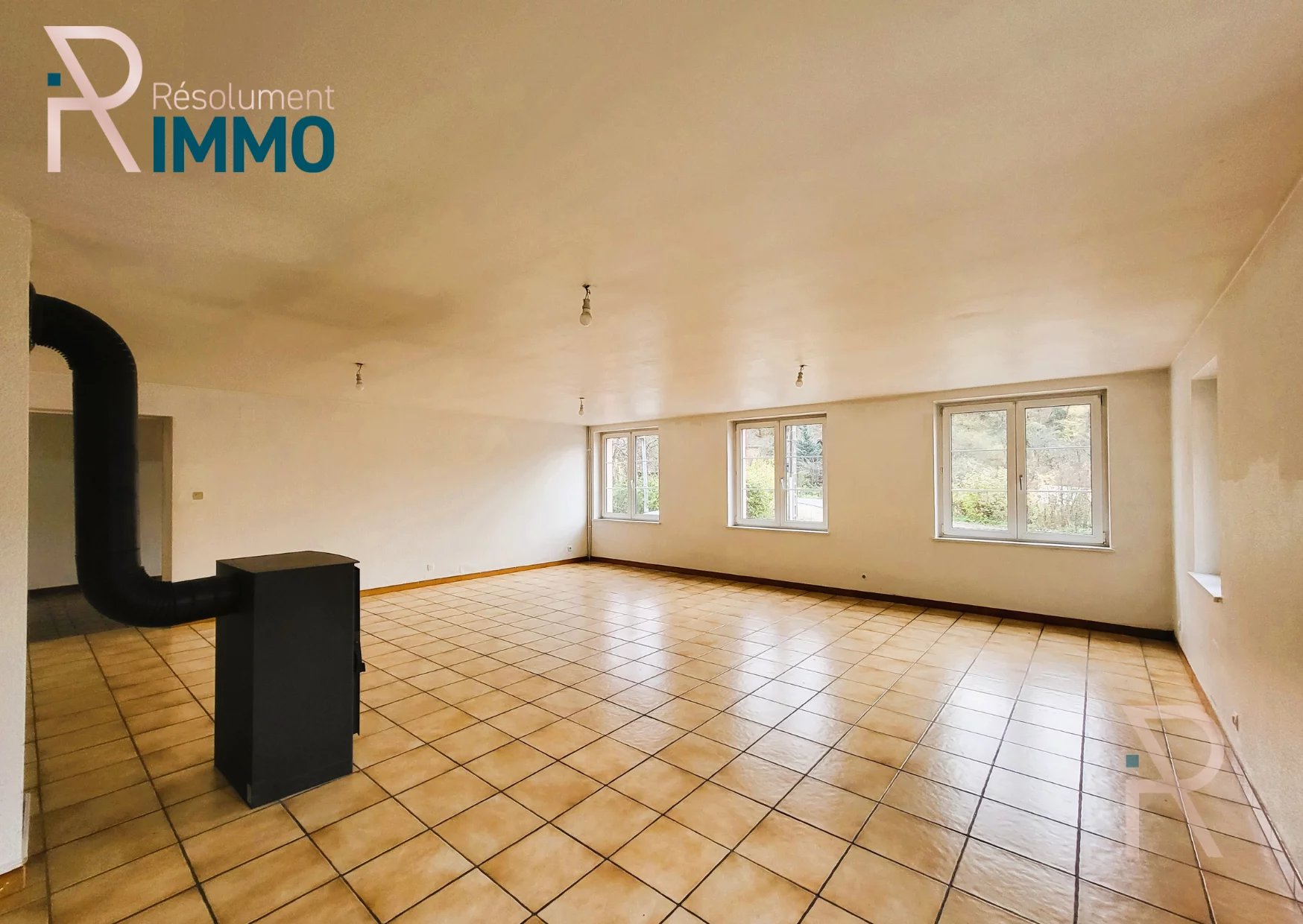 Au rez de chaussée vous trouvez un premier espace de 141m² composé d'une entrée, un couloir, une belle pièce de vie avec son poêle à bois, 4 pièces, une cuisine avec espace dinatoire, un WC séparé et une salle de bain.