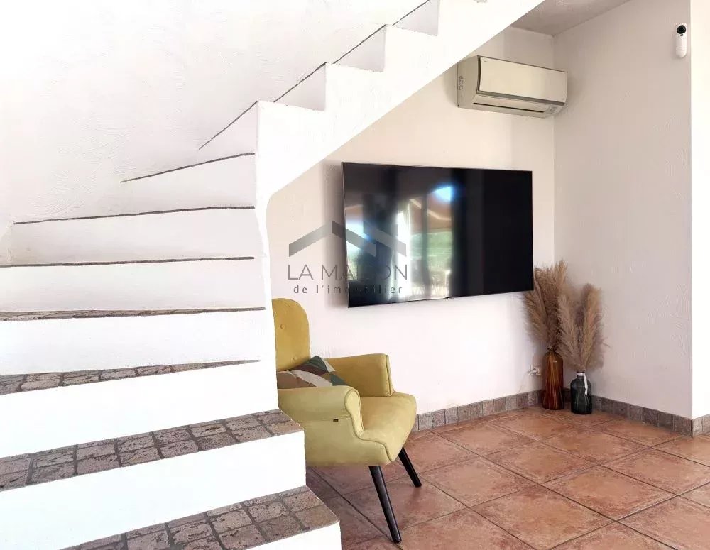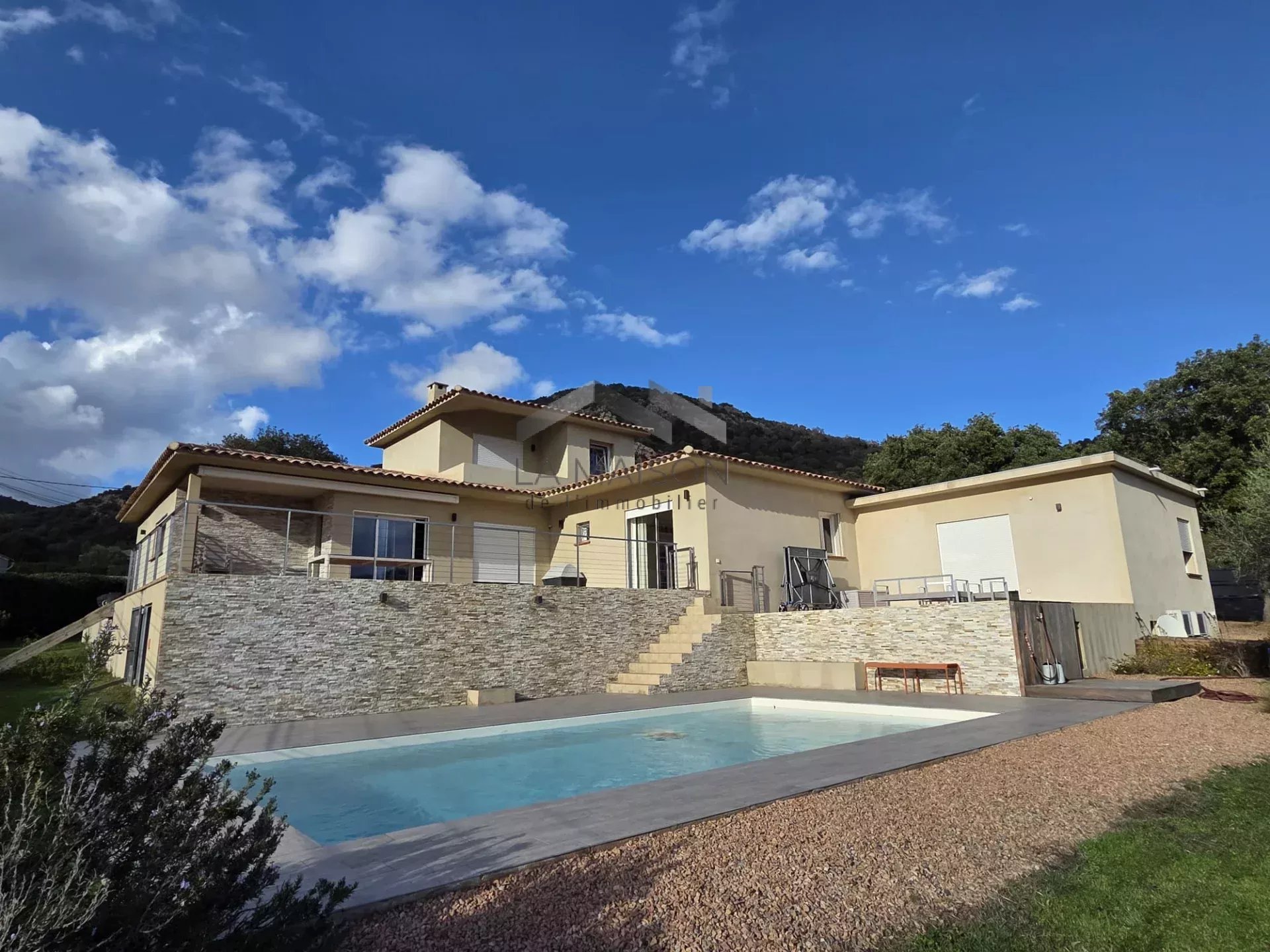 Idéalement située à Sainte-Lucie-de-Porto-Vecchio, sur la commune de Zonza, à seulement quelques minutes des plages prisées de Pinarello et Fautea, cette superbe villa de 158 m² offre un cadre de vie privilégié entre mer et maquis, avec une vue dégagée sur la colline de la Testa et la mer. Dès l’entrée, vous serez séduits par un vaste espace de vie baigné de lumière, sublimé par de grandes baies vitrées ouvrant directement sur la terrasse. La cuisine ouverte, moderne et fonctionnelle, s’intègre parfaitement à cet espace convivial, idéal pour recevoir. Le rez-de-chaussée propose une distribution optimale avec trois chambres, plusieurs salles d’eau offrant confort et intimité, ainsi qu’un cellier pratique avec WC. À l’étage, un espace polyvalent pouvant accueillir un bureau ou un coin détente, ainsi qu’une chambre avec balcon privatif et vue mer, véritable havre de paix. À l’extérieur, la propriété dévoile de très belles prestations : deux terrasses, une piscine, un jardin entièrement clôturé, ainsi qu’un portail électrique assurant sécurité et tranquillité. Plusieurs places de stationnement complètent ce bien. La villa est entièrement climatisée et dispose d’un conduit existant pour l’installation d’une cheminée ou d’un poêle, permettant d’envisager un confort en toute saison. Raccordée au tout-à-l’égout, elle répond aux exigences actuelles.