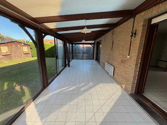 Située dans un quartier calme et résidentiel de Quesnoy-sur-Deule, la maison est construite sur une parcelle de 600 m² environ et propose une entrée cathédrale, un séjour de plus de 35m², une cuisine indépendante et une véranda de 25 m² environ. Un couloir dessert un bureau ou une chambre, une salle de douche et le garage.