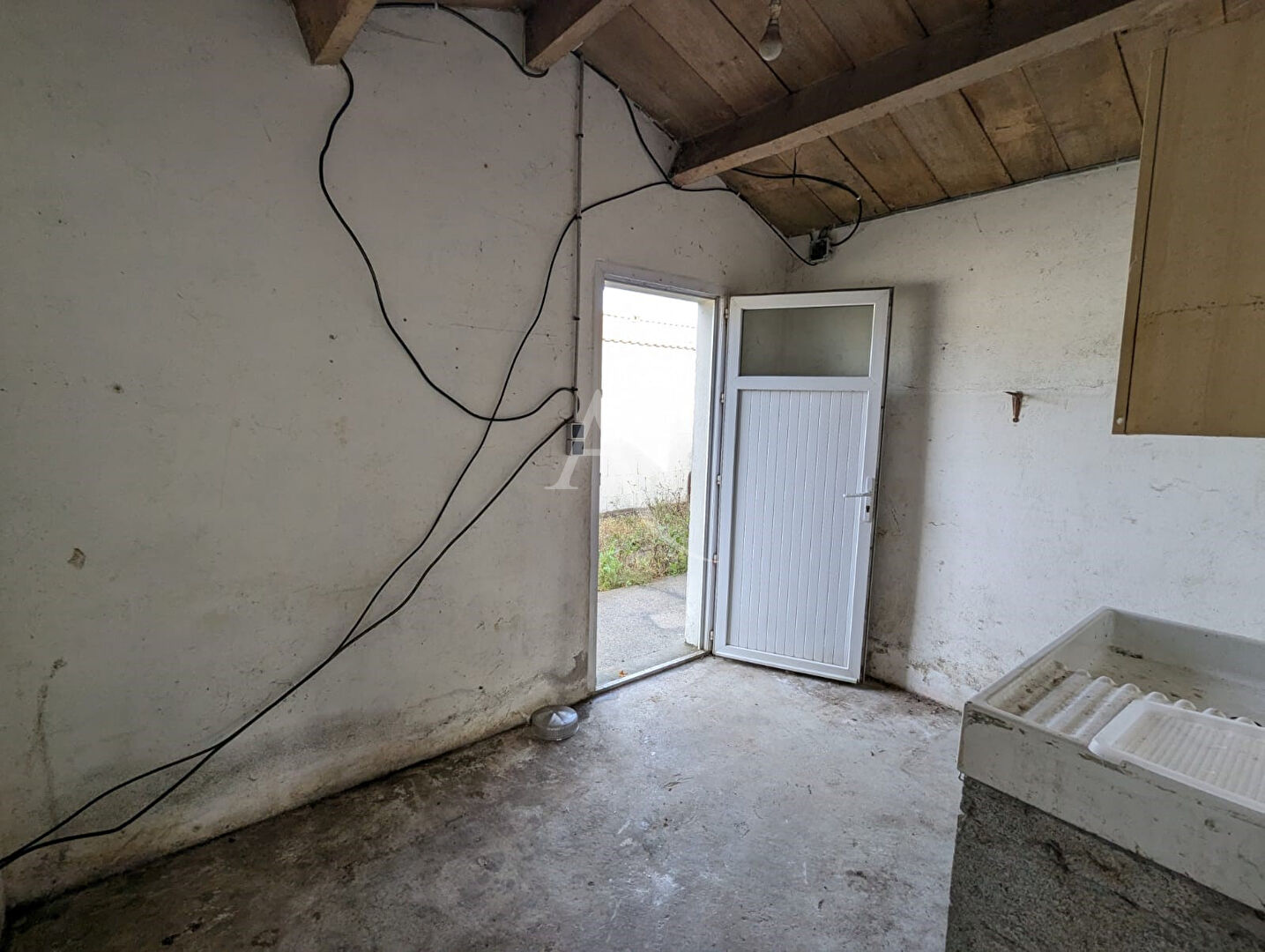 A VENDRE - EXCLUSIVITÉ - CHALLANS - A seulement 250 mètres à pied des écoles, en direction de la voie rapide vers Nantes et La Roche-sur-Yon, découvrez cette maison à rénover, idéale pour un premier achat ou un projet d'investissement. Elle se compose d'un salon-séjour, d'une cuisine de 10 m², d'un dégagement desservant deux chambres, d'une salle d'eau et d'un w.c. Vous profiterez également d'un cellier et d'un garage. Le tout sur un terrain d'environ 520 m². Un beau potentiel ! Réf : 10779. Contactez Damien BONNIER au 02-51-93-36-70 ou damien.bonnier@ladresse.com (6.88 % honoraires TTC à la charge de l'acquéreur.)