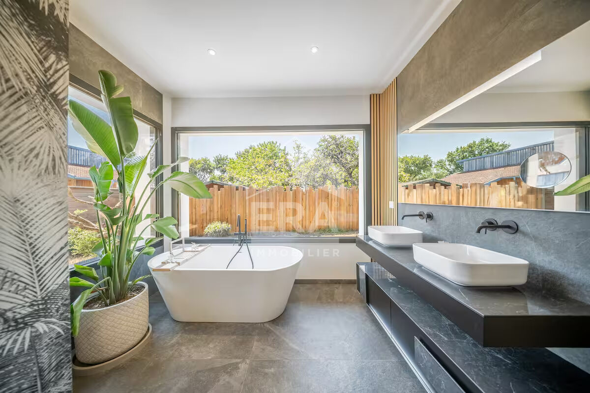 VILLA A VENDRE / A ACHETER LA TESTE 33260 Découvrez cette villa somptueuse, pensée pour une vie d'exception. Ses 3 chambres lumineuses et sa salle de bain élégante offrent un confort absolu. La suite parentale, véritable cocon privé, dispose d'un dressing sur-mesure et d'une salle d'eau raffinée. Prestations haut de gamme, matériaux nobles, finitions irréprochables : ici, rien n'a été laissé au hasard. La pièce de vie, sublimée par une hauteur sous plafond remarquable, une cuisine entièrement aménagée et des prestations somptueuses, offre un cadre de vie d'exception. Profitez d'une piscine chauffée au coeur d'un extérieur paysagé, invitant à la détente toute l'année. Un studio indépendant complète ce bien, idéal pour recevoir ou générer un revenu supplémentaire. Ce studio bénéficie d'un jacuzzi et d'une terrasse privée pour des moments de bien-être exclusifs. Un lieu unique, mêlant élégance, intimité et art de vivre... Faites vite, contactez votre agence ERA Immobilier cabanes tchanquées au 05.47.74.34.00 (4.00 % honoraires TTC à la charge de l'acquéreur.)