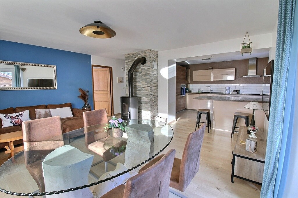 A vendre ? Très bel appartement T4 de 93 m² à Bons-en-Chablais Calme, lumineux, rénové, avec grand garage et balcons Situé dans une petite copropriété de seulement 3 appartements, ce très beau T4 de 93 m² saura vous séduire par ses volumes généreux, sa luminosité et son environnement calme et paisible à deux pas du centre de Bons-en-Chablais. Entièrement rénové avec goût, il ne vous restera plus qu'à poser vos valises ! L'appartement se compose d'une grande pièce de vie chaleureuse, avec cuisine équipée ouverte et poêle à bois pour un confort optimal. Deux balcons complètent l'espace, dont l'un avec barbecue intégré pour profiter pleinement des beaux jours. Côté nuit, vous trouverez trois belles chambres, une salle de bains moderne et un toilette indépendant. Atouts supplémentaires : -Grand garage de 30 m² avec porte électrique et espace de stockage au fond -Deux places de stationnement privatives -Exposition idéale, offrant une belle luminosité tout au long de la journée -Situation privilégiée : à seulement 5 minutes à pied du centre et des commerces, et 12 minutes à pied de la gare, reliant Genève en toute facilité -Très faibles charges de copropriété Un bien rare sur le secteur, alliant calme, confort et praticité. Contactez-nous rapidement pour une visite ! EXCLUSIVITE