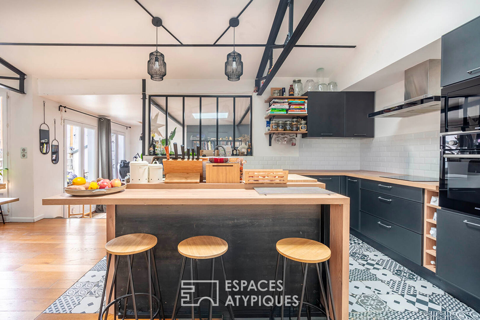 C'est à proximité des commerces de centre ville et de la gare RER E de Villiers sur Marne Le Plessis Trévise, que se situe ce loft de 80m2 avec balcon. Réhabilitation réussie pour cette ancienne manufacture. Depuis 2013, il s'agit d'une copropriété accueillant 9 lots d'habitations où chaque intérieur a été conçu et pensé librement. Chaque lot est donc unique. C'est précisément ce qu'offre cet intérieur : originalité et caractère. Combinées à la structure métallique d'origine, verrière et briques inscrivent ce bien dans une ambiance résolument « loft industriel » très appréciée et recherchée. L'entrée surélevée ouvre sur la pièce de vie de 55m2. Lumineuse et spacieuse, elle profite d'une hauteur sous plafond de 3m30 à son point culminant. Les volumes semblent décuplés mais restent pour autant très chaleureux grâce à un zonage efficace de l'espace. A proximité immédiate de la cuisine aménagée et équipée, l'espace salle à manger apporte fonctionnalité et convivialité les jours de réception. Délimité par deux marches, l'espace salon permet de profiter d'un espace plus intimiste, propice à la détente. Les 2 chambres profitent elles aussi d'une belle hauteur sous plafond singulière ainsi que d'une luminosité constante assurée par des ouvertures zénithales motorisées. Une salle d'eau avec WC, récemment rénovée complète les prestations intérieures. Côté extérieur, la largeur du balcon permet d'installer table et chaises ou transats incontournables pour profiter des rayons de soleil à venir. Ce bien est soumis au régime de la copropriété. 1 place de parking en extérieur. RER E VILLIERS SUR MARNE/LE PLESSIS TREVISE: 1,1km RER A NOISY LE GRAND MONT D'EST: 7 min en voiture Future ligne 15 VILLIERS-CHAMPIGNY-BRY: 1km Commerces : A deux pas Ref 9692 CLASSE ENERGIE: C / CLASSE CLIMAT: A Montant moyen estimé des dépenses annuelles d'énergie pour un usage standard, établi à partir des prix de l'énergie de l'année 2021: entre 980 euros et 1360 euros. Les informations sur les risques auxquels ce bien est exposé sont disponibles sur le site Géorisques : https://www.georisques.gouv.fr Vanessa Goracy 06 10 80 60 20 EI - Agent commercial RSAC: 804 610 061-Créteil Copropriété de 32 lots - dont 9 lots habitation. (Pas de procédure en cours). Charges annuelles : 1016 euros. Vanessa goracy (EI) Agent Commercial - Numéro RSAC : 804 610 061 - CRETEIL.