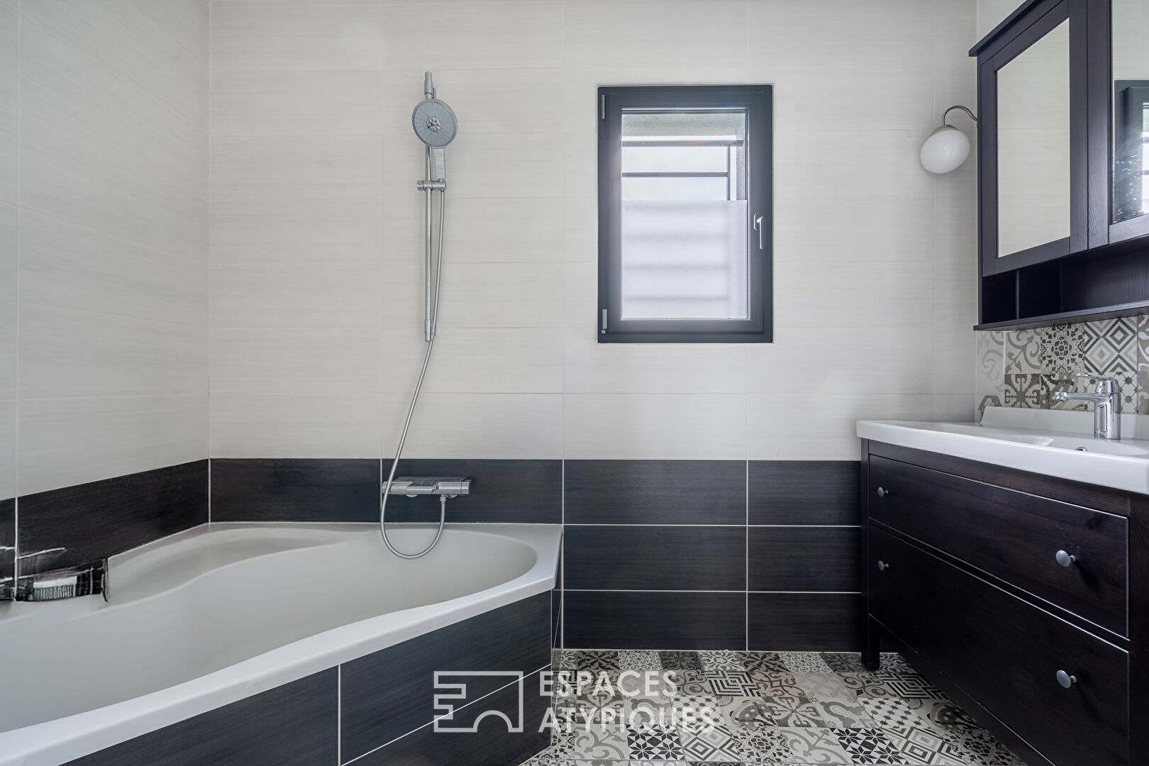 Au coeur du secteur des Richardets à Noisy-le-Grand, cette maison contemporaine de 2016, élégante et lumineuse, offre 164 m² répartis sur trois niveaux. Au rez-de-chaussée, l'entrée ouvre sur un vaste espace de vie baigné de lumière, rythmé par une verrière qui délimite avec élégance le salon et la salle à manger. La cuisine en bois massif, ouverte, moderne et fonctionnelle, s'intègre parfaitement à l'ensemble. Une buanderie attenante au garage fermé, ainsi qu'un WC indépendant, complètent ce premier niveau pensé pour le quotidien. L'étage accueille deux grandes chambres, une salle d'eau et un second WC. La suite parentale s'impose comme un véritable cocon, avec balcon privatif, dressing sur mesure et salle de bains, où chaque détail a été conçu pour le confort. Sous les combles, une vaste pièce palière laisse libre cours à l'imagination : bureau, salle de jeux ou espace détente et distribue deux chambres pleines de charme et de caractère. A l'extérieur, terrasse et jardin arboré invitent à profiter de moments de détente en toute intimité, tandis que le portail électrique garantit sécurité et quiétude. A deux pas du centre des Richardets, des commerces et des écoles, cette maison allie harmonie contemporaine, volumes généreux et esprit familial, au sein d'un environnement paisible et recherché. RER E : Gare des Yvris à 14 minutes à pied CLASSE ÉNERGÉTIQUE C / CLASSE CLIMAT C. Montant moyen estimé des dépenses annuelles d'énergie pour un usage standard, établi à partir des prix de l'énergie des années 2021, 2022, 2023 : entre 1 320 euros et 1 850 euros. Les informations sur les risques auxquels ce bien est exposé sont disponibles sur le site Géorisques : https://www.georisques.gouv.fr Contact : Lola - 06 75 06 62 65 RSAC : 924 143 357 - MEAUX Lola Naigeon (EI) Agent Commercial - Numéro RSAC : 924143357 - Meaux.